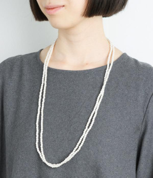 小さなプラパールがかわいらしく上品な印象を与えてくれるロングネックレスです。そのままの長さではもちろん、2重にしても使うことができるので重宝しそうです。オンでもオフでも使うことができるシンプルなデザインが魅力的。ぐるぐると何重にもして腕に巻いても◎。カジュアルな装いにプラスしてもかわいい。