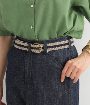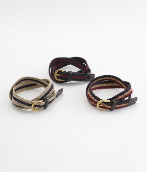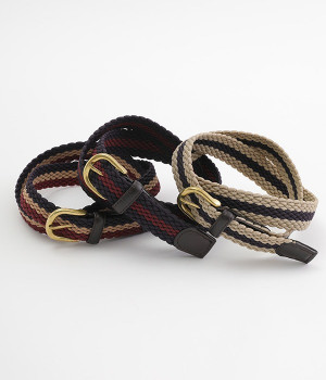 しっかりとしたゴムを編み込んだディテールが新鮮なメッシュベルトです。配色違いのラインのデザインがポイントになり、トップスインした着こなしのアクセントになるアイテムです。伸縮性があるため、年齢や世代を問わずストレスなく着用頂けます。メッシュ仕様でベルト穴がないデザインなので、お好みのポジションで自由に装着可能。