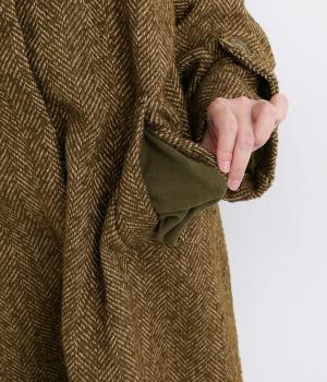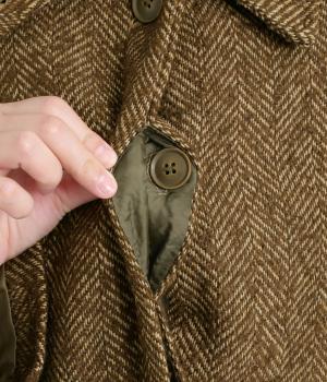 ネップのようにあたたかみと立体感があり、適度な重厚感がクラシカルな雰囲気を醸すヘリンボーンで仕立てました。すべりのいい総裏地つきで袖の通りもスムーズです。
