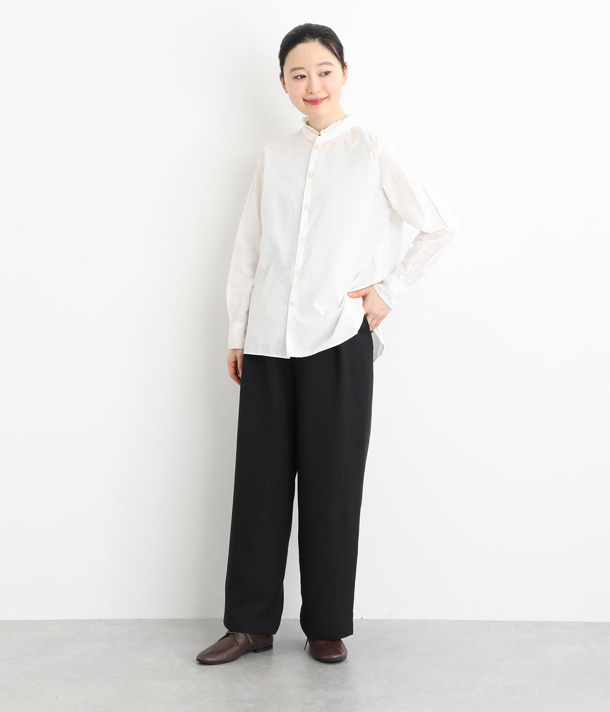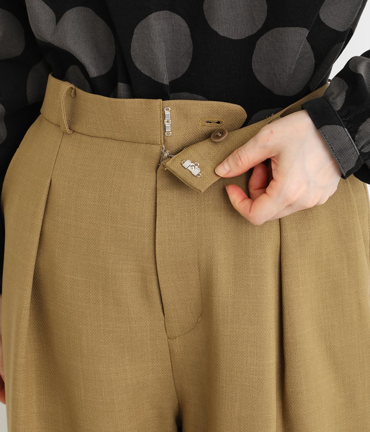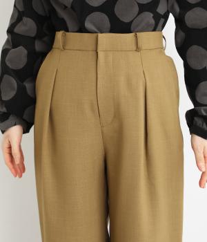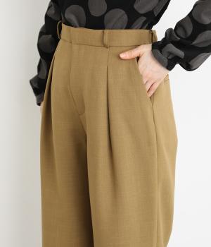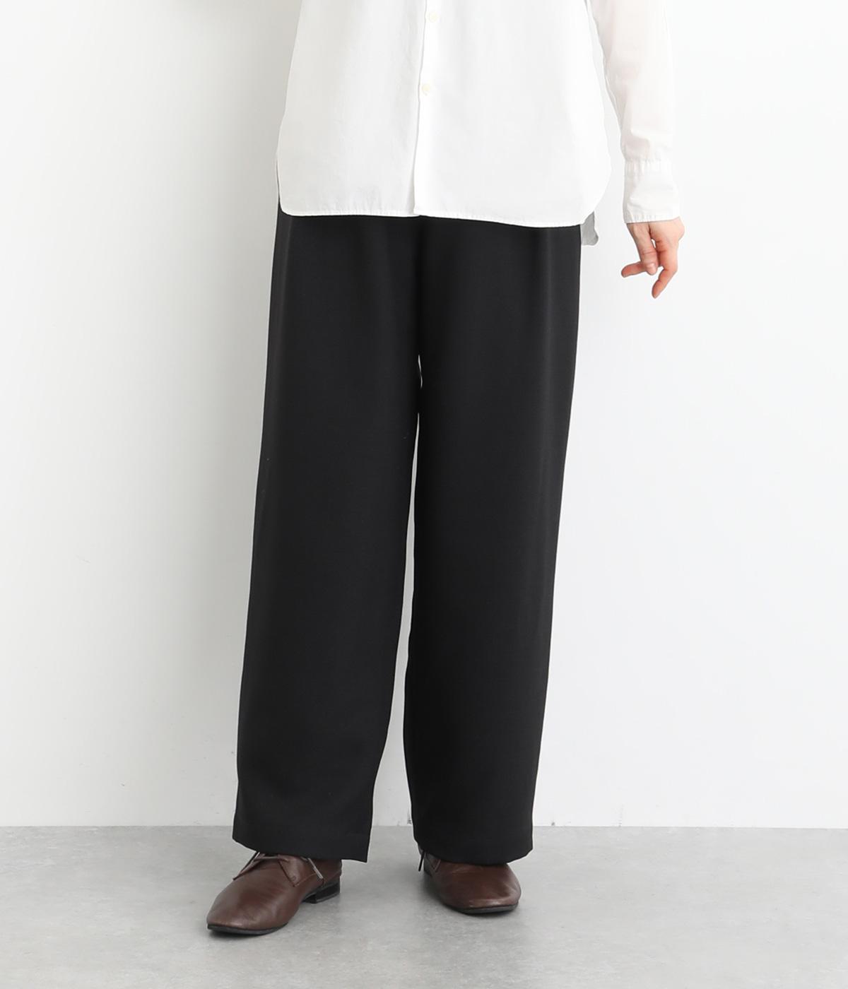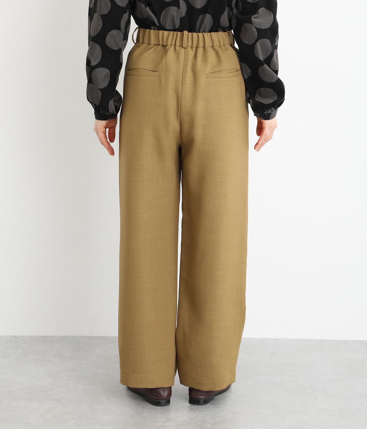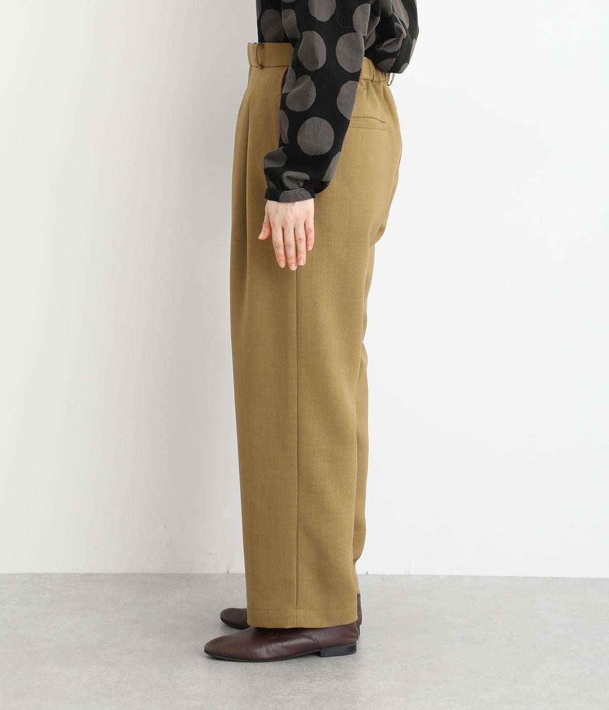 フロントに入れたタックが縦のラインを強調し、シルエットをすっきりと上品に見せてくれるパンツです。広すぎない絶妙なワイド感なので、どんなトップスともバランスよく合わせられます。ウエストは後ろゴムで、はき心地のよさもうれしいポイント。カジュアルにもきれいめにも活躍する、万能な一本です。