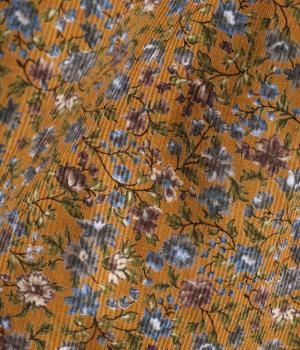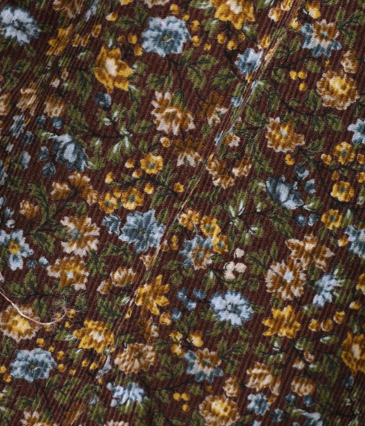 タテ方向に畝のあるコール天生地を使用しています。独特のあたたかみのある表情が特徴で、生地自体は薄手なので扱いやすく仕上がっています。薄手の裏地つきで肌あたりも考慮。