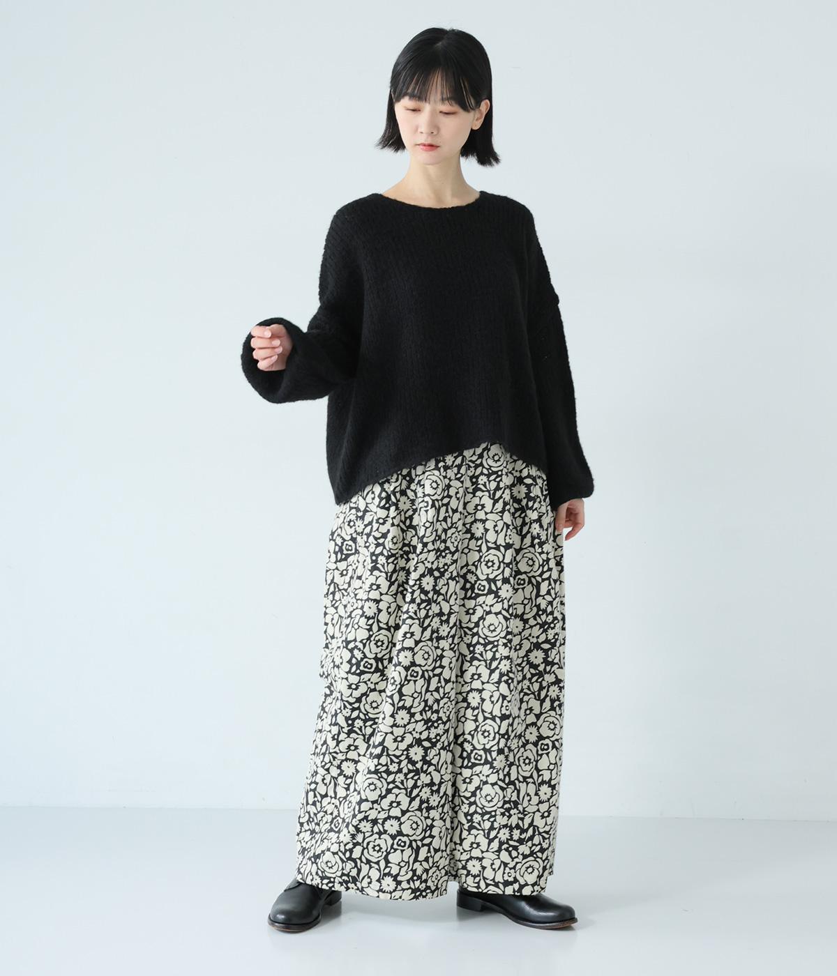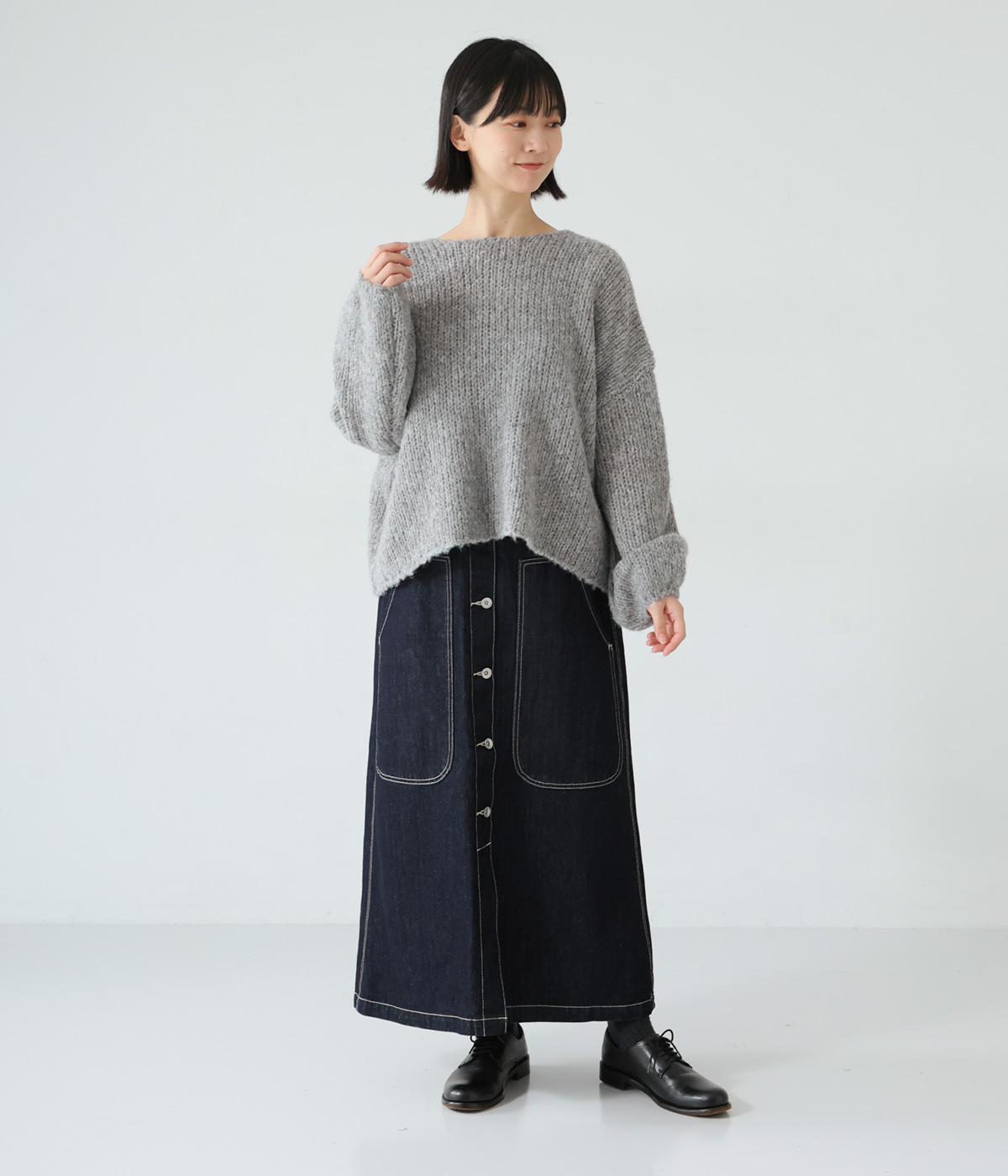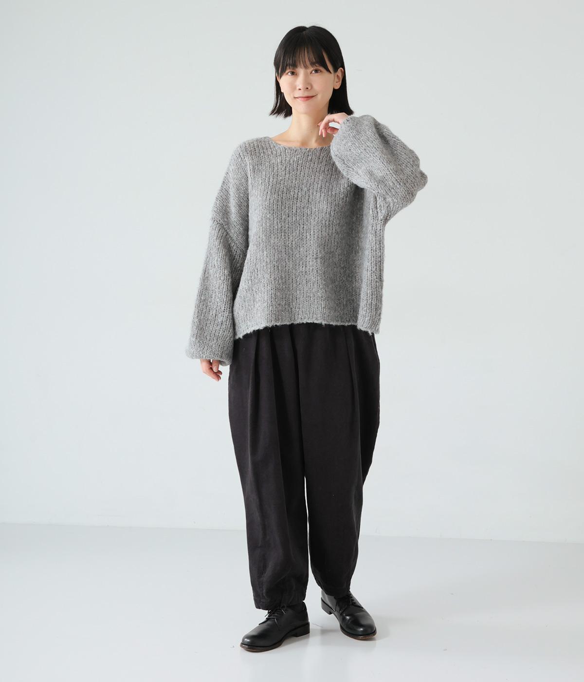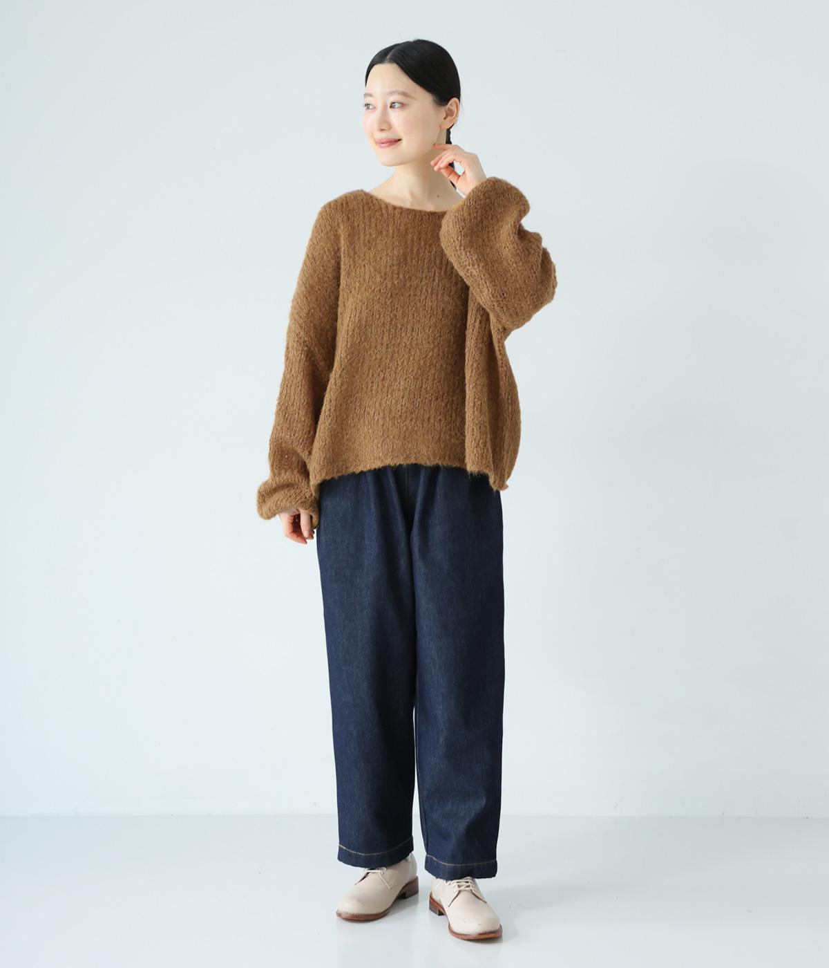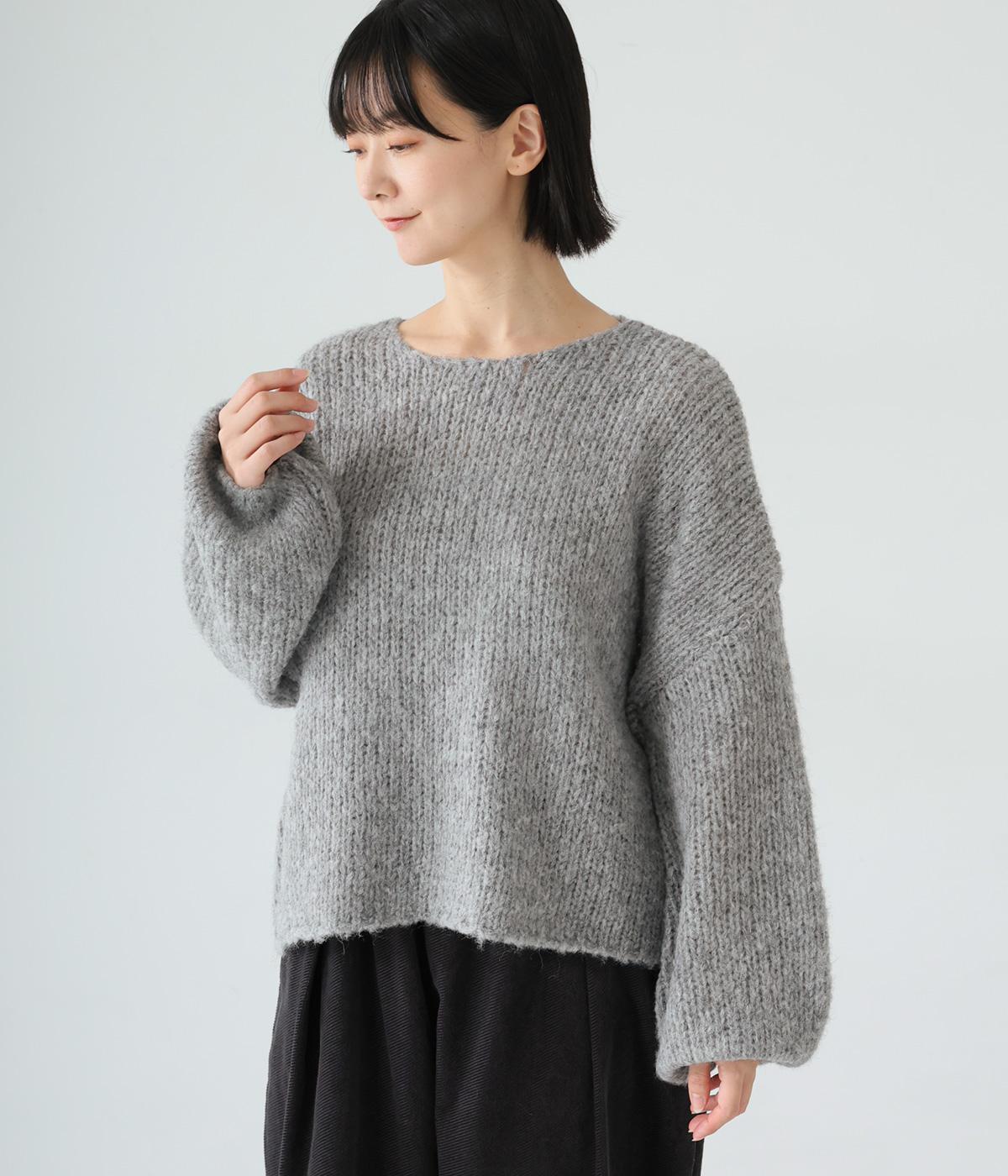 空気を含むように甘く編みたてた、とても軽くてあたたかいアルパカ混ニット。長い毛足が見た目にもやわらかな女性らしい印象を運んでくれます。