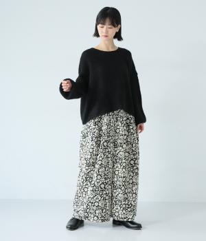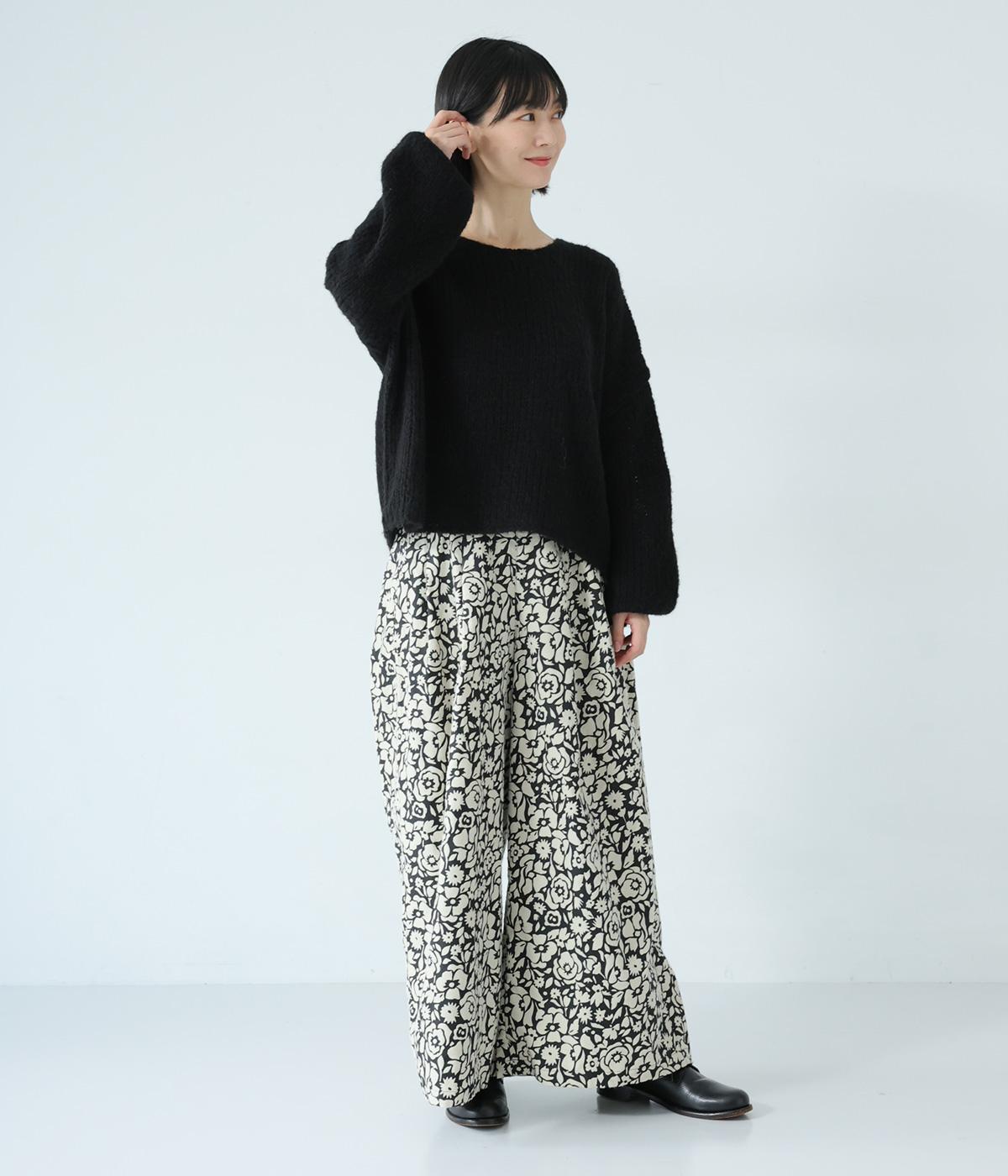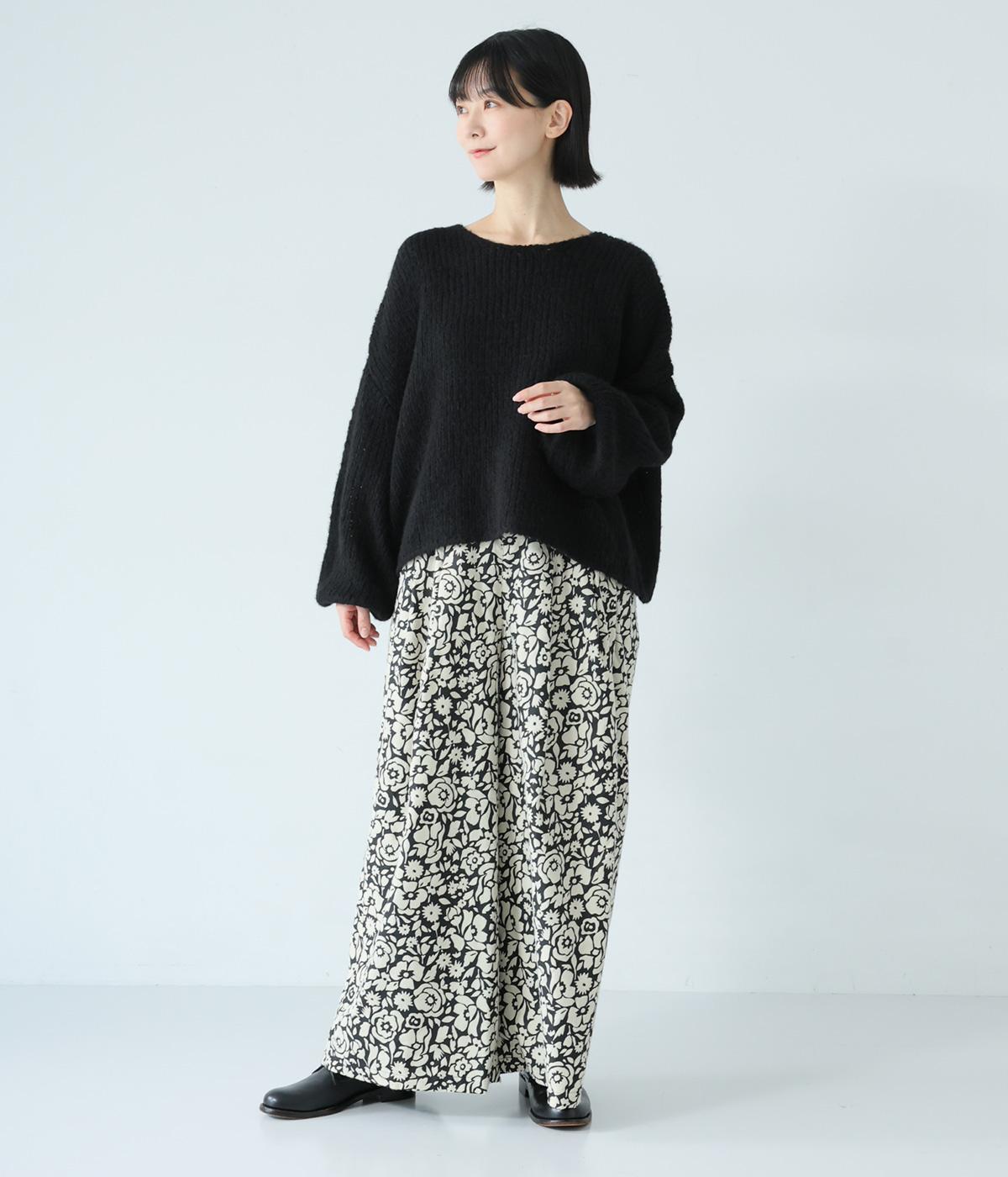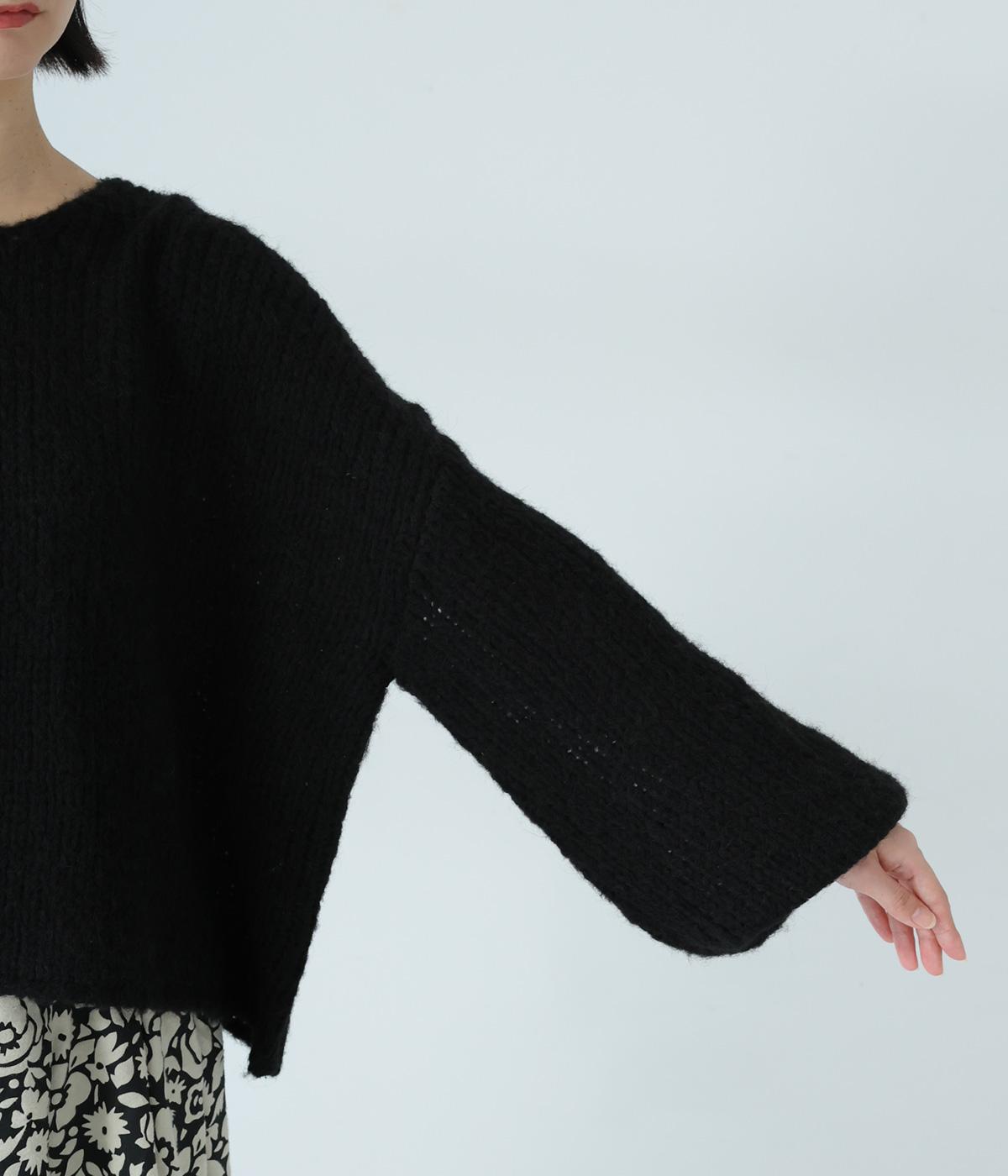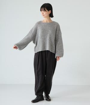 ゆとりのあるリラクシーなシルエットがこなれ感を演出するニットプルオーバーです。袖口には細いゴムを通し、たぽっとした愛らしいフォルムに。着丈は短めに設定して、さまざまなボトムスとバランスよく合わせやすくしています。