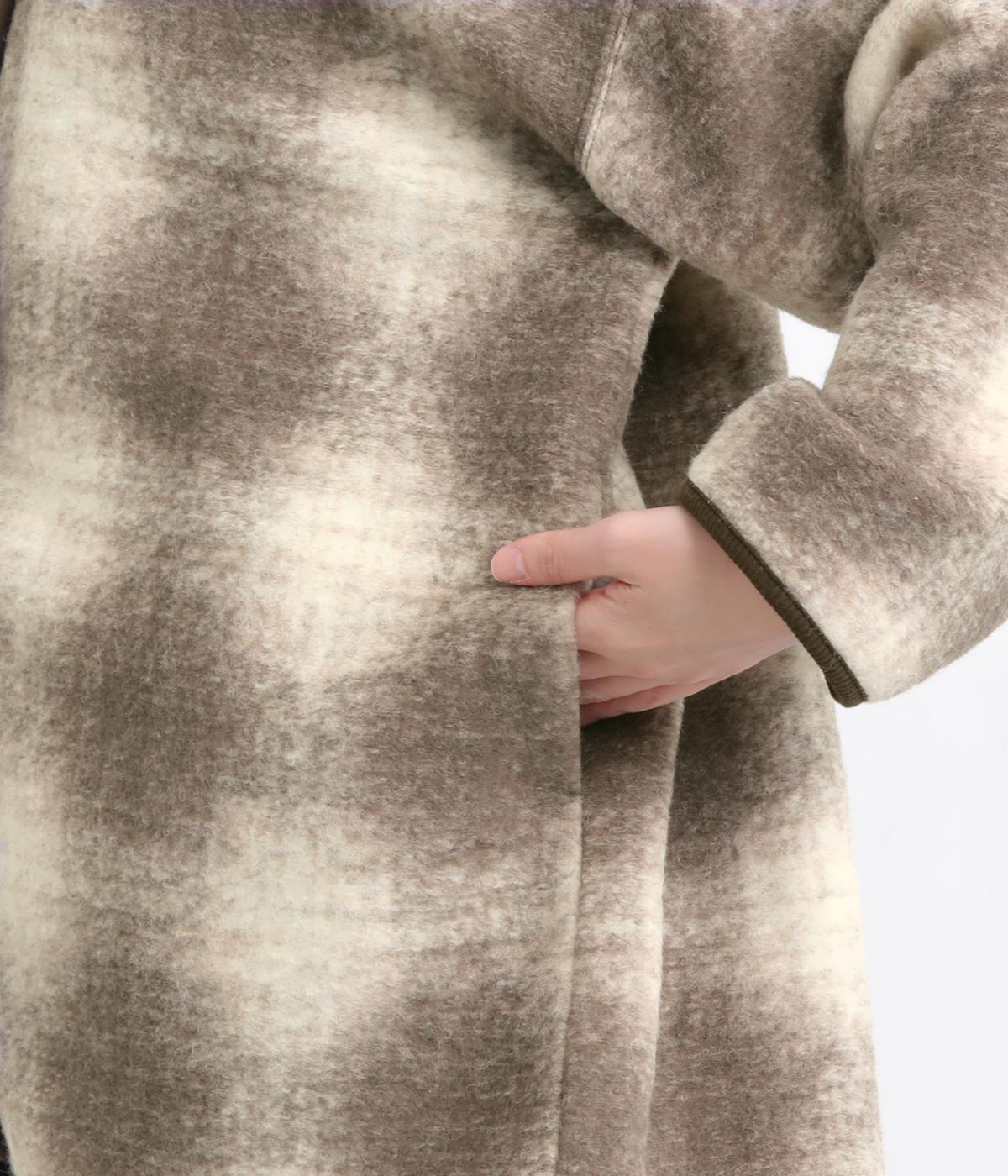 あたたかみのあるチェックの総柄をノーカラーとパイピングですっきりとまとめたカーディガン。個性を放ちつつスタイリングにすっとなじみ幅広いコーディネートを楽しめます。ゆったりシルエットでインナーを選ばないのも◎。