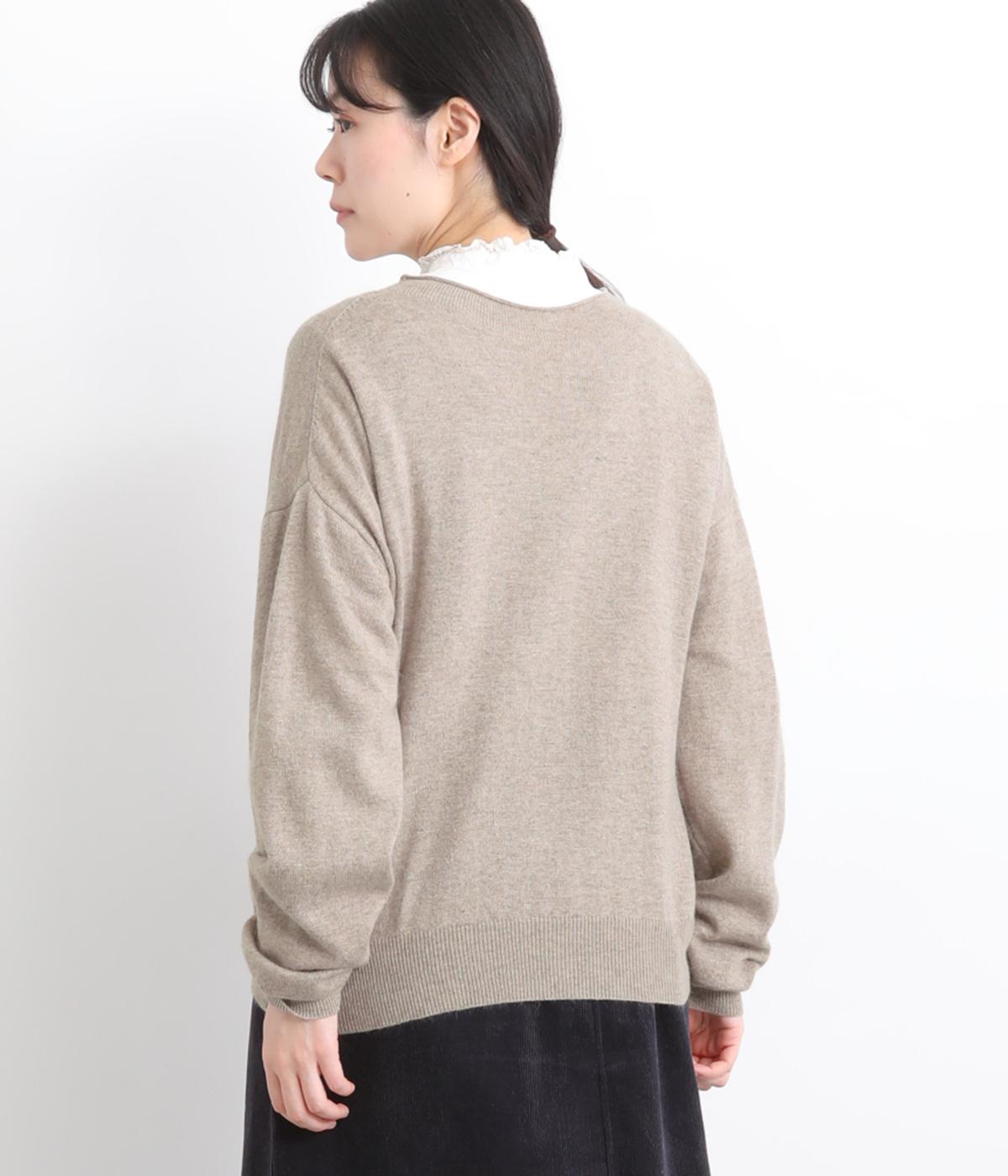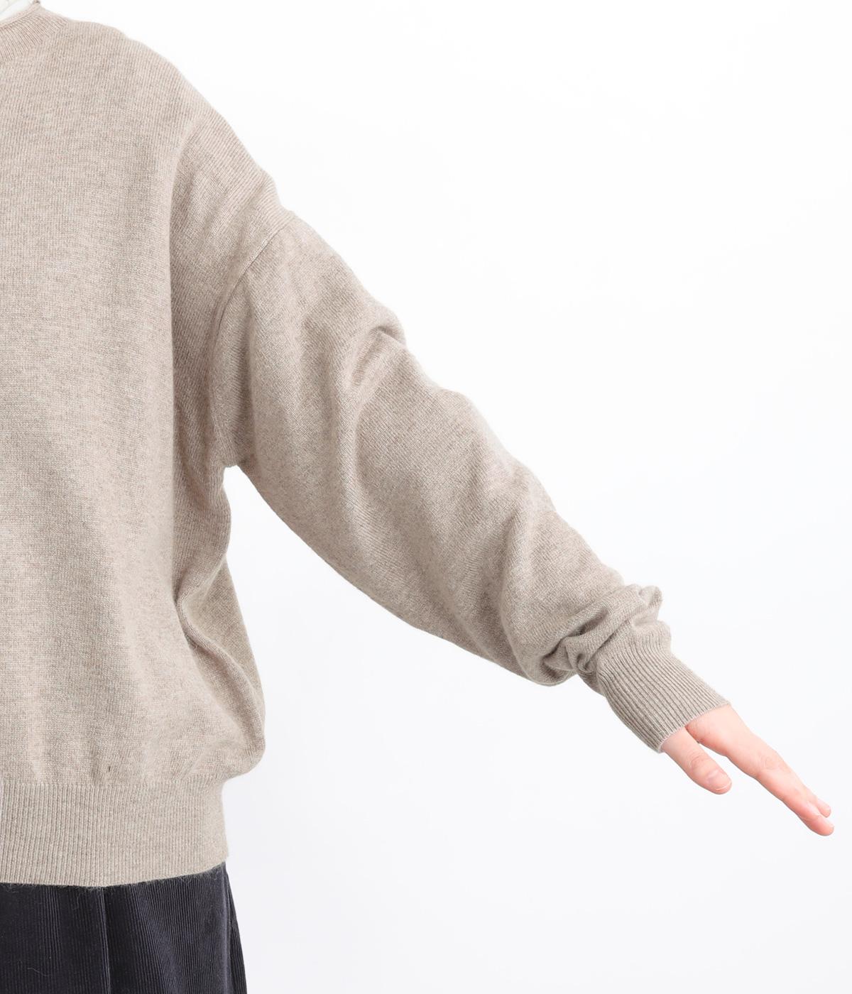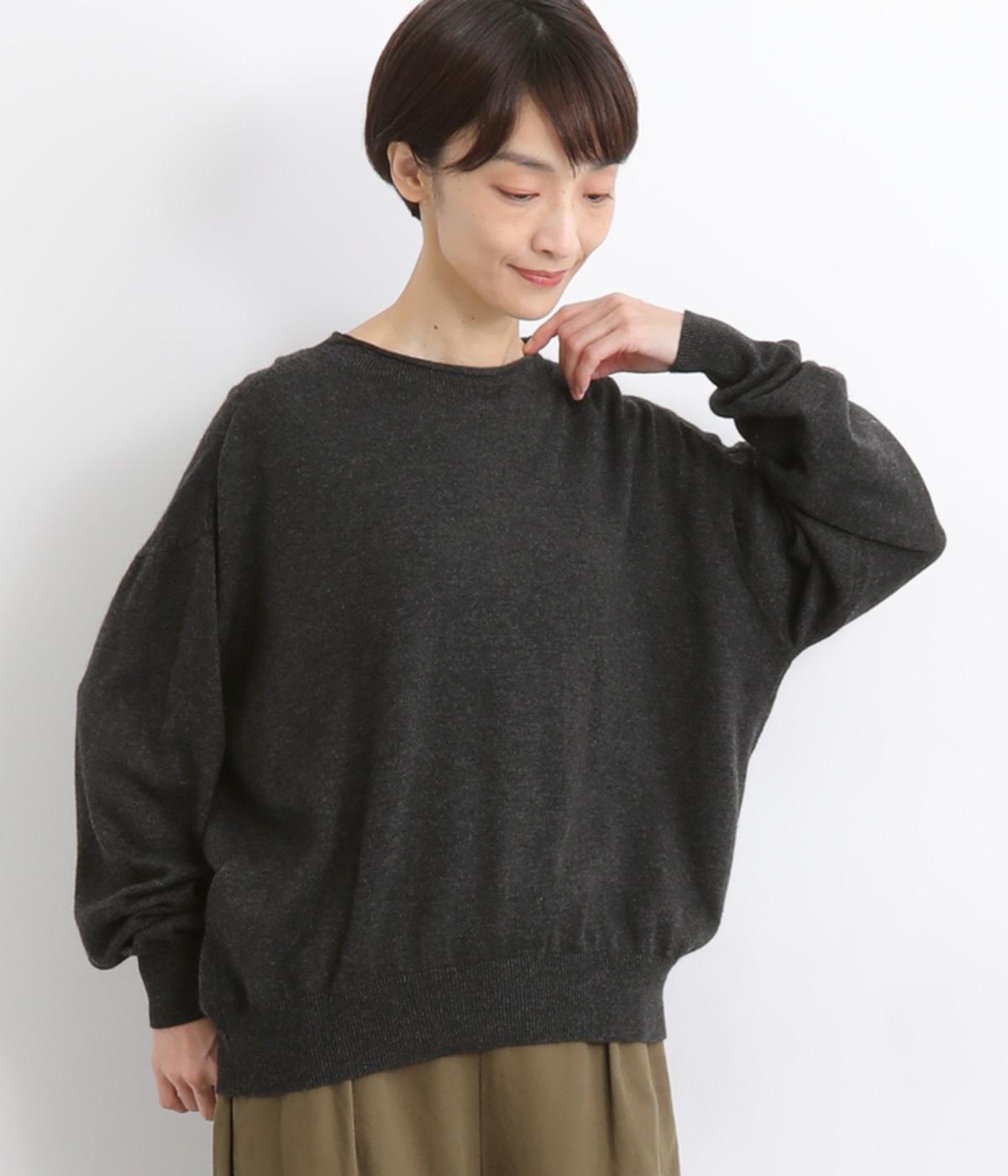 レーヨンやアンゴラ、ウールをまぜたリッチ感のあるソフトニットを使用しています。やわらかで伸びも良く、肉厚すぎないので羽織り合わせもしやすい生地感です。
