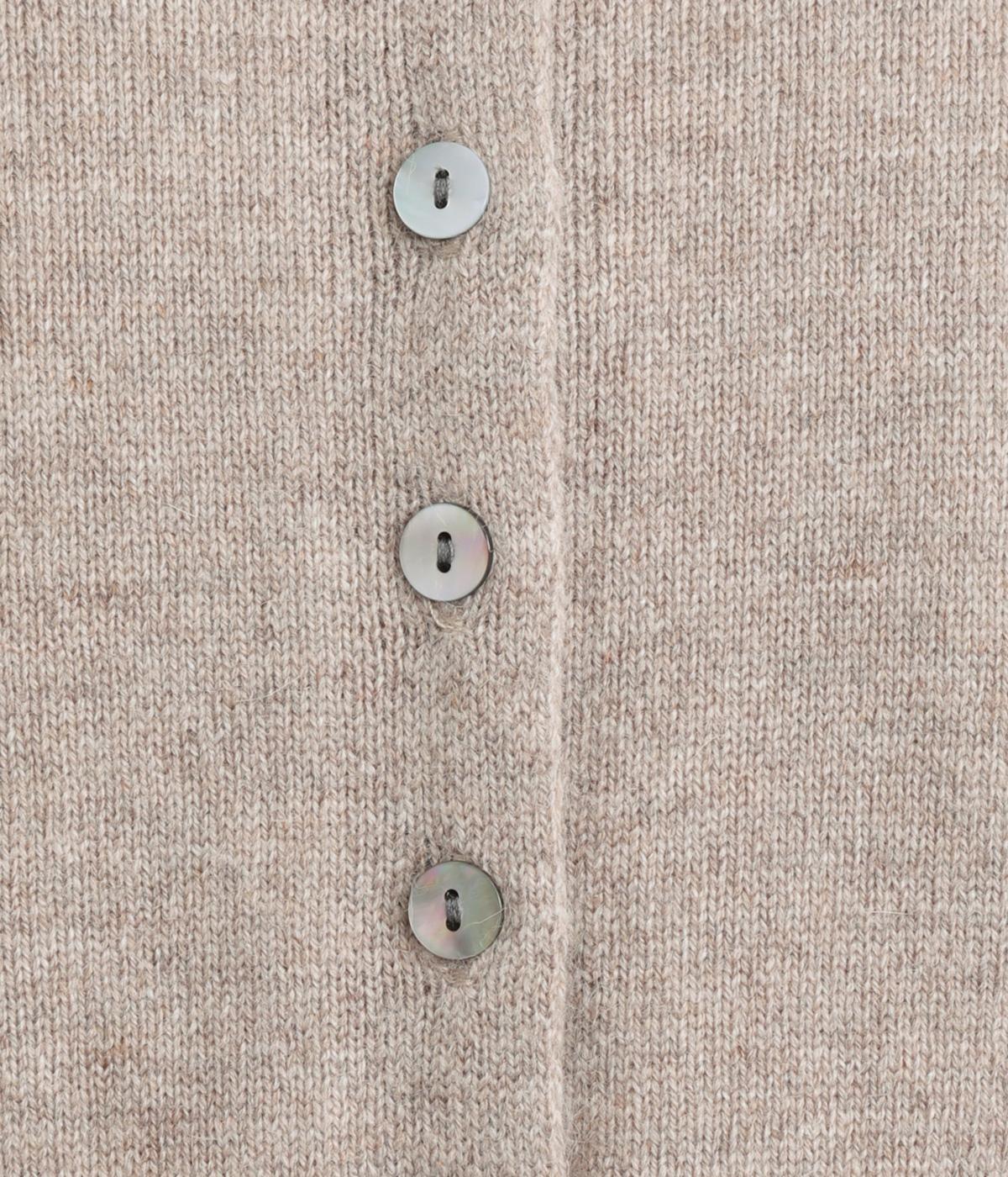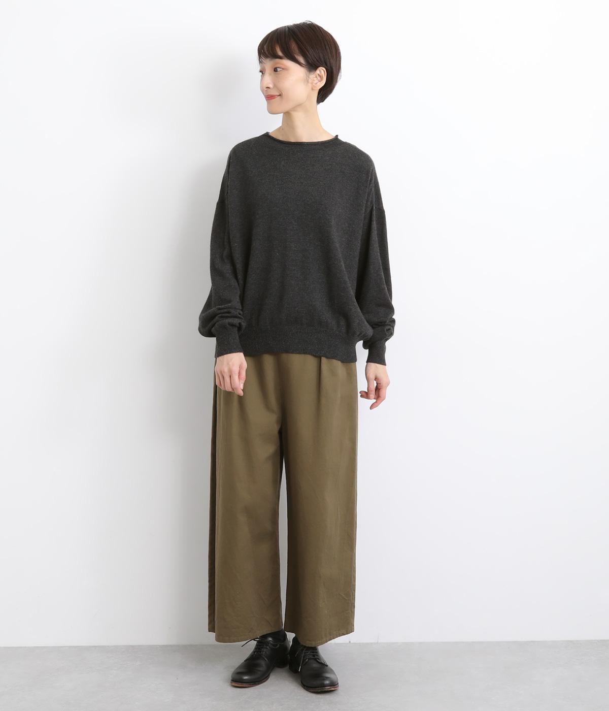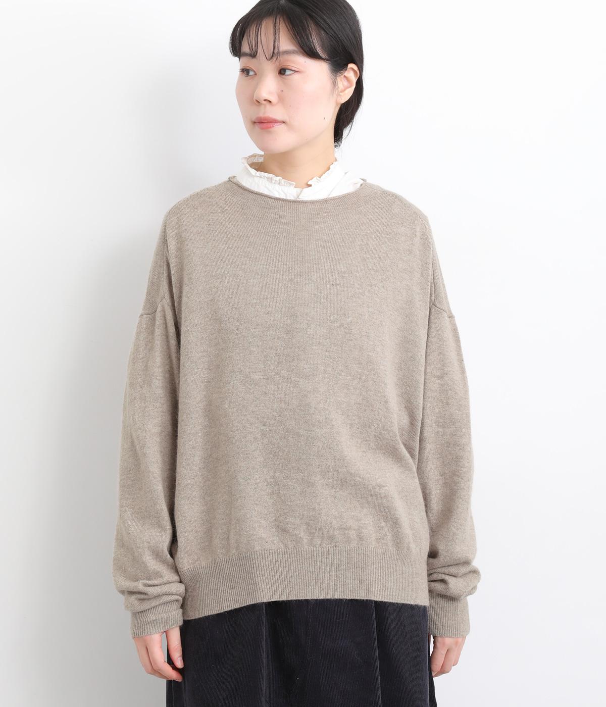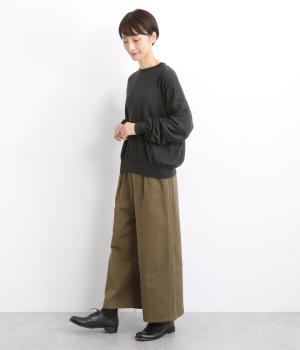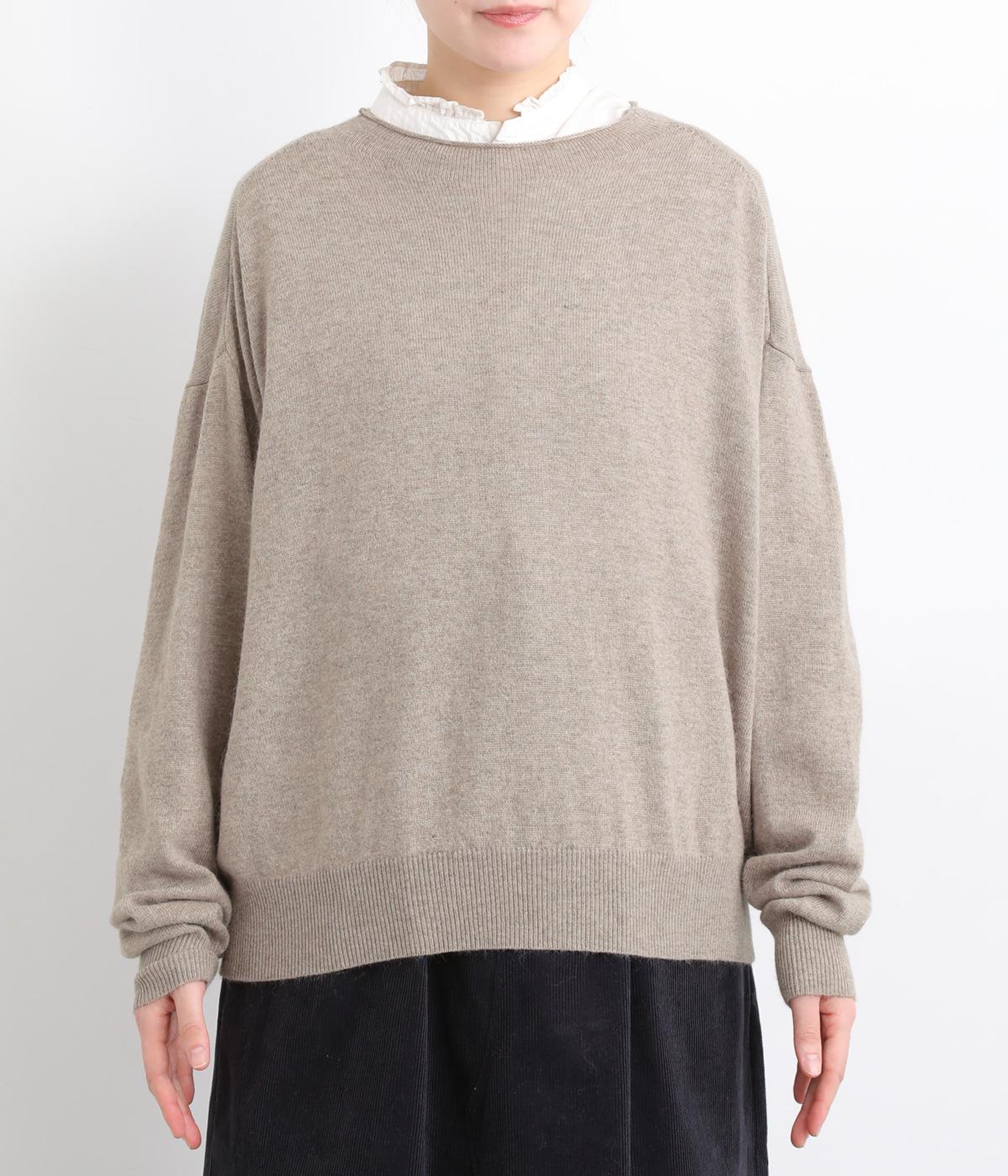 レーヨンやアンゴラ、ウールをまぜたリッチ感のあるソフトニットを使用しています。やわらかで伸びも良く、肉厚すぎないので羽織り合わせもしやすい生地感です。