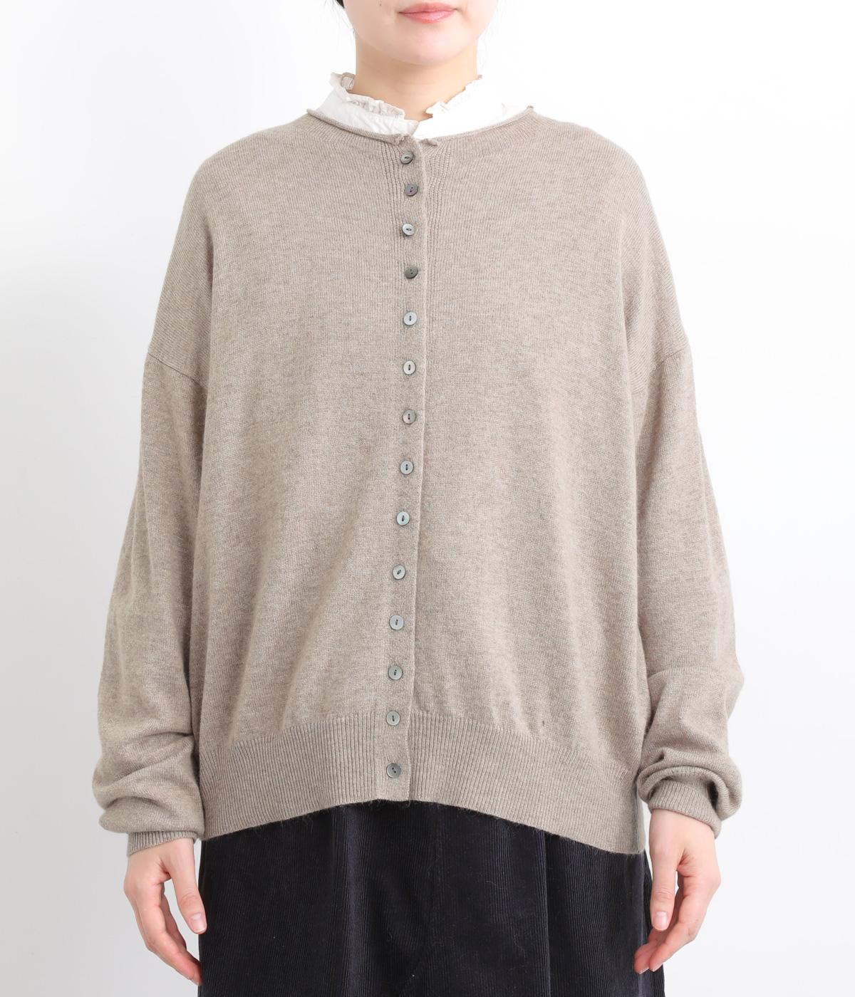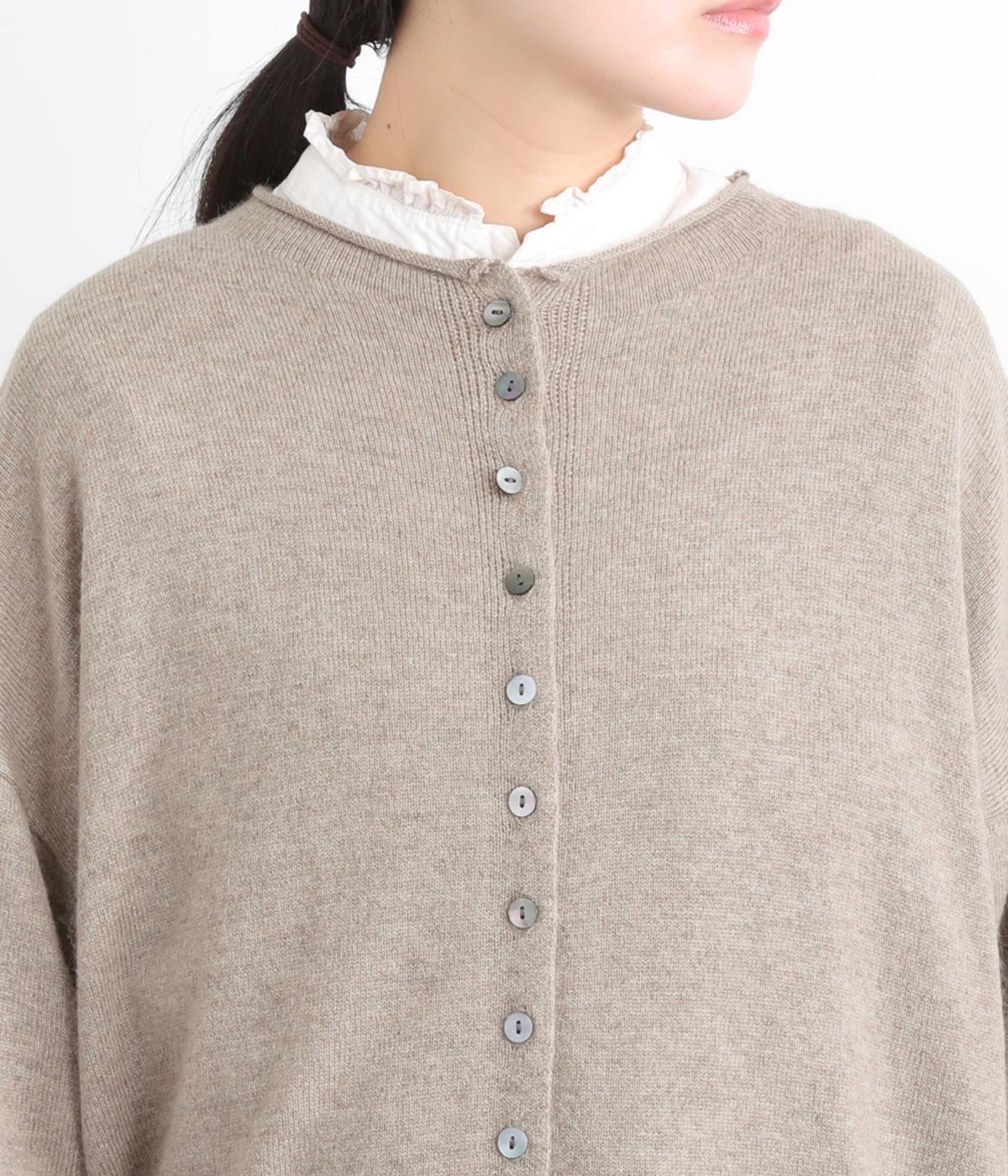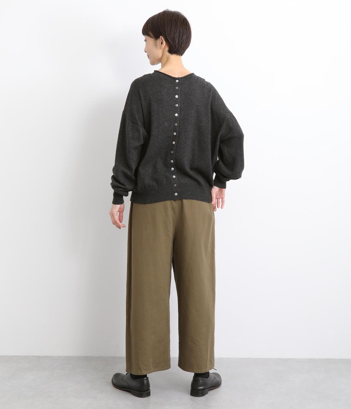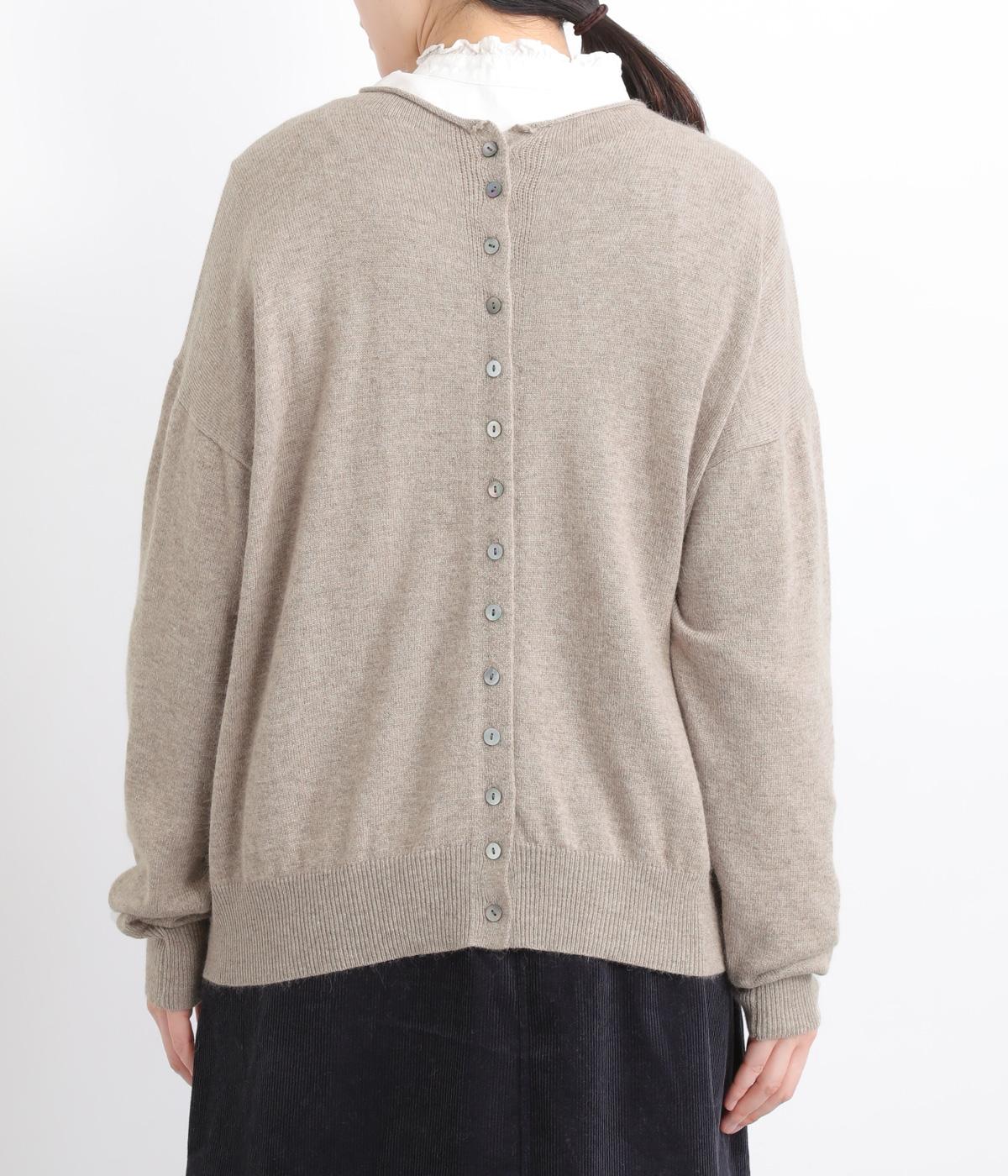 シンプルながらも多ボタンがアイキャッチになったカーディガン。後ろあきにしてプルオーバーとしてもたのしめる前後2way仕立てで、着こなしのバリエーションもひろがります。適度にゆとりのあるサイズ感でデイリー使いに最適な一枚。