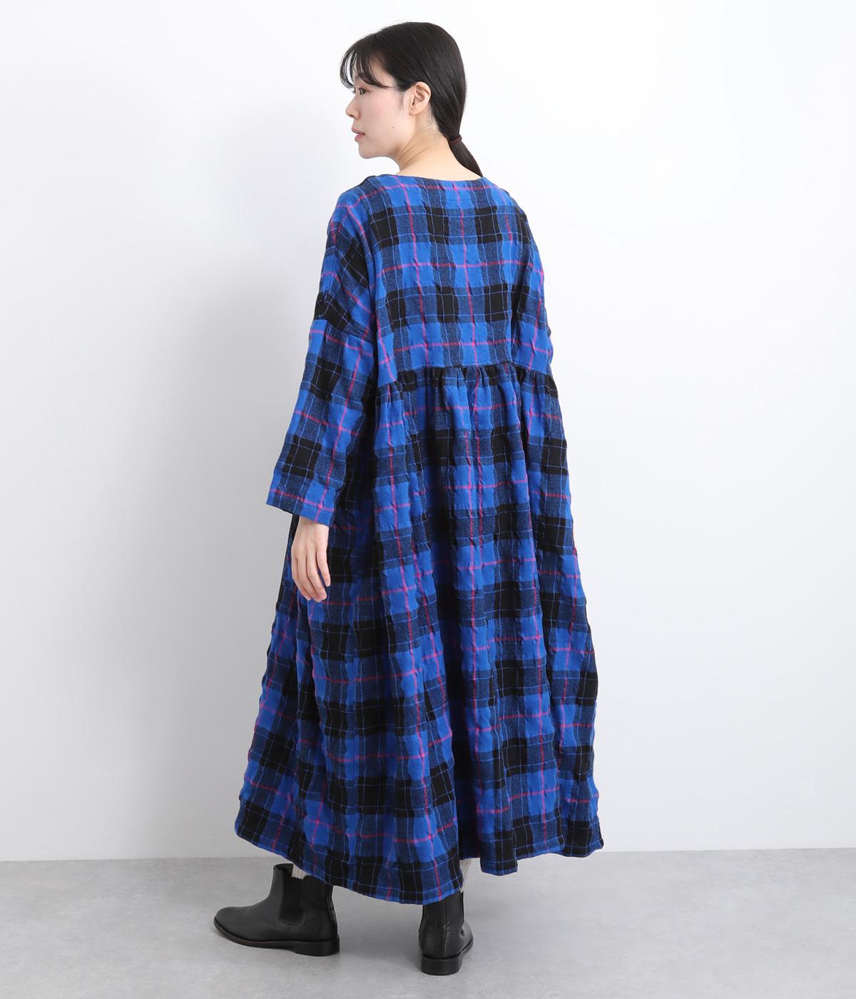 たっぷりと贅沢に生地を使用した存在感のあるドレスです。ウエスト高めで切り替えてギャザーをほどこし、ふんわりと空気を含んだようなシルエットを描きます。首元はクルーネックですっきりさせました。