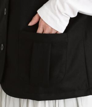 ドライな質感できちんと見えするミックス素材の生地を使用しました。品のあるハリがシルエットをきれいに保ちます。やわらかな着心地でインナーと重ねやすく仕立てました。