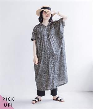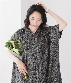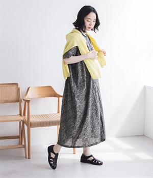 柄物が苦手な方も手に取りやすい控えめな配色が、大人の装いにすっと馴染みます。さらりと軽い肌触りで、真夏に活躍するワンピースです。