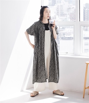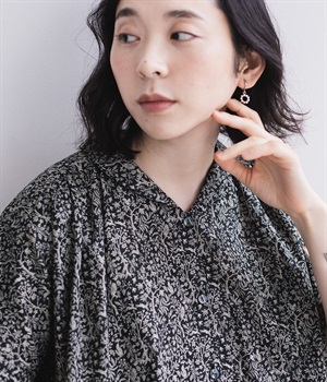 洗練された印象の<ブラック>をシンプルに一枚で着こなしました。主張しすぎないすっと馴染む柄に、レザーサンダルを合わせた上品な装い。透け感を気にせず着られるところもうれしいポイントです。