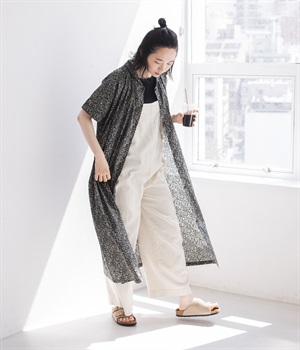 サロペットに<ブラック>を重ねた、カジュアルなレイヤードスタイル。ボタンを開けてさっと羽織れば、合わせるアイテム次第で幅広いアレンジのコーディネートが楽しめます。
