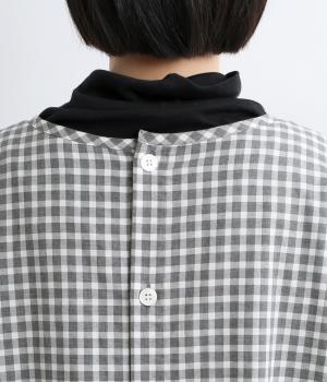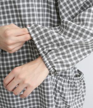 先染めでやわらかな印象のギンガムチェック柄を表現したコットン生地。さらりとした肌ざわりと、とても軽くやわらかな風合いでストレスフリーな着用感です。