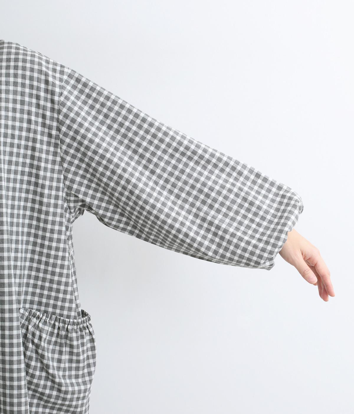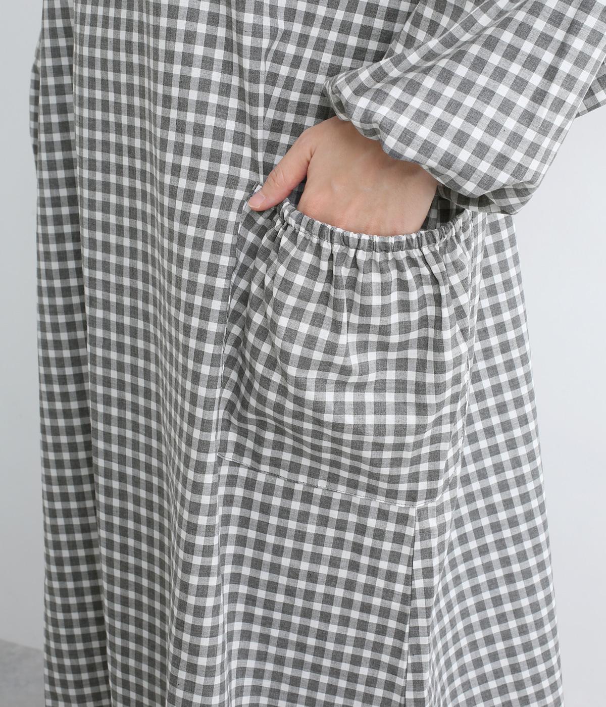 愛らしいギンガムチェック柄のスモックワンピース。全体にゆとりを持たせ、リラックスした着心地にこだわりました。少なめのボタン仕様で、後ろ姿に抜け感をプラス。ゴムギャザーで立体感をプラスしたサイドポケットは実用性も◎です。