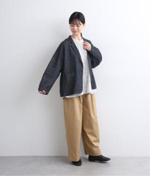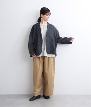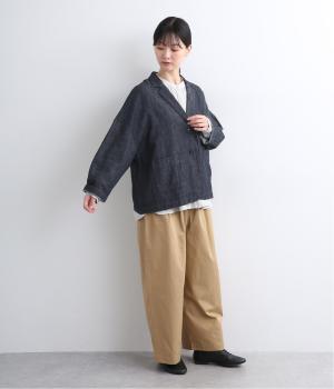 コットンとリネンを組み合わせた、ナチュラルな風合いが心地よいデニム生地を使用。着用初期からやわらかで羽織りやすく、使い勝手のいい中厚手生地でロングシーズン活躍します。