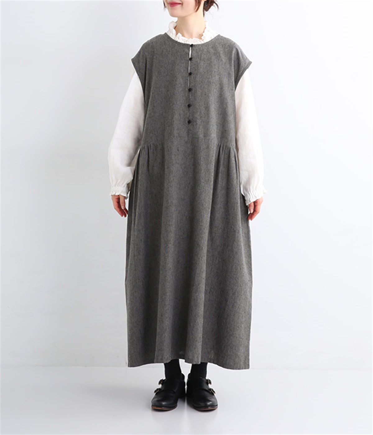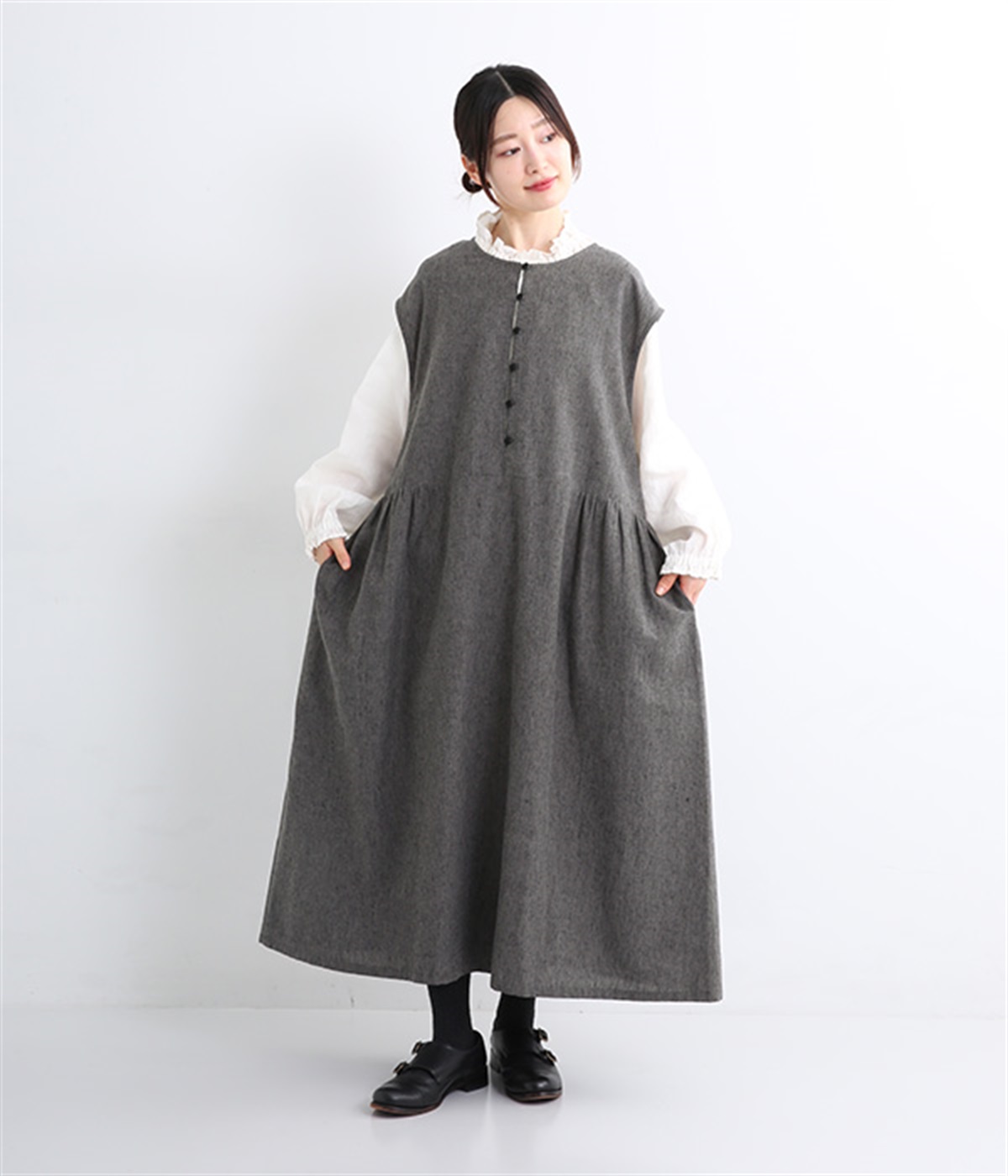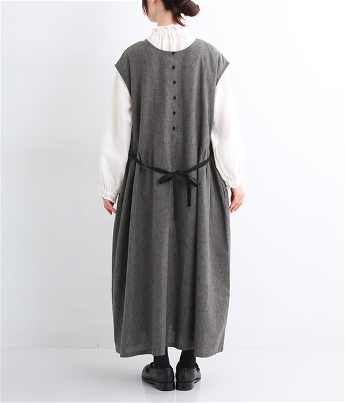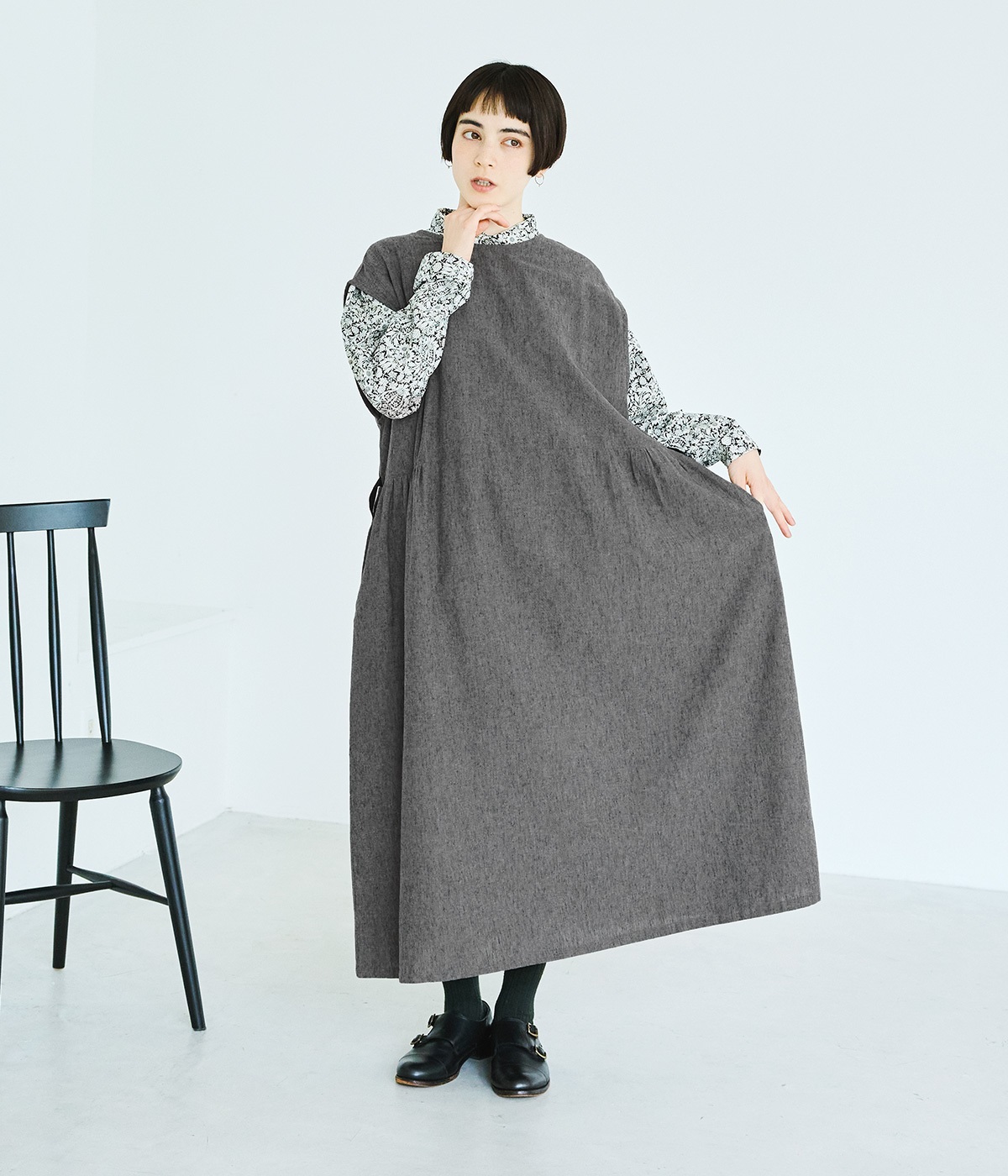 デイリーにも特別な日にも自然に馴染む、落ち着いた色合いとシンプルなデザインのジャンパースカート。その日の気分やコーディネートに合わせて、自分なりのアレンジをお楽しみください。