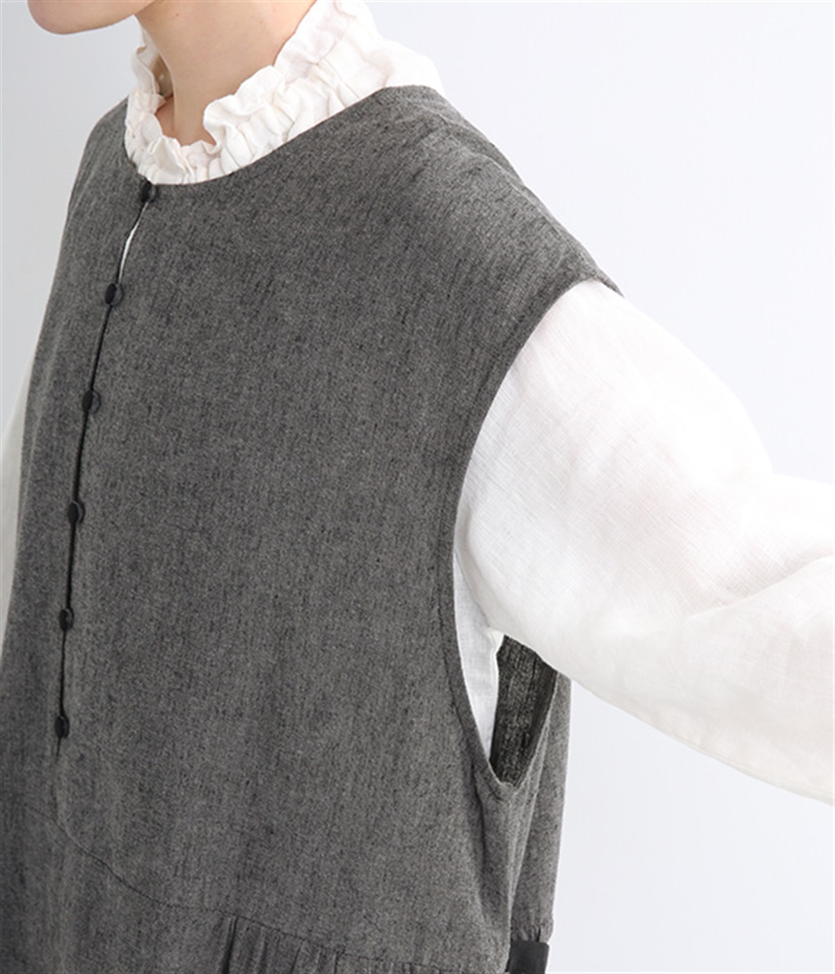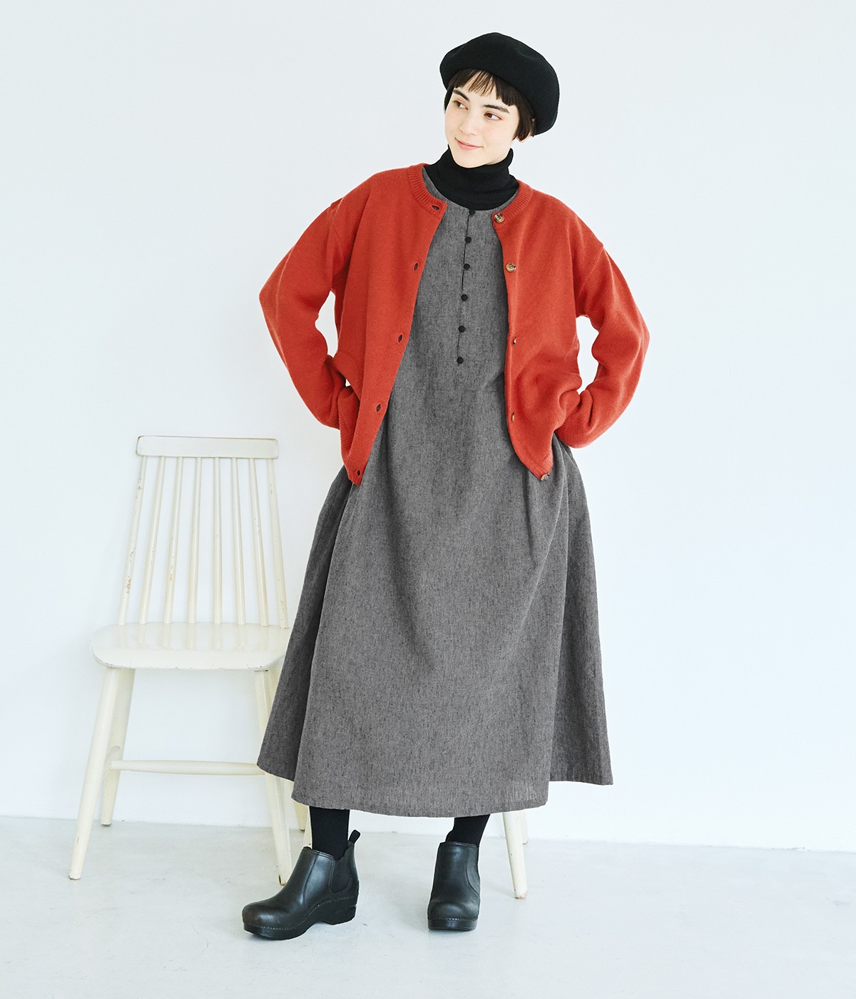 ころんと丸いクルミボタンがワンポイントに。丁寧に仕上げたディテールが、自然体の大人スタイルをさりげなく引き立てるデザインです。