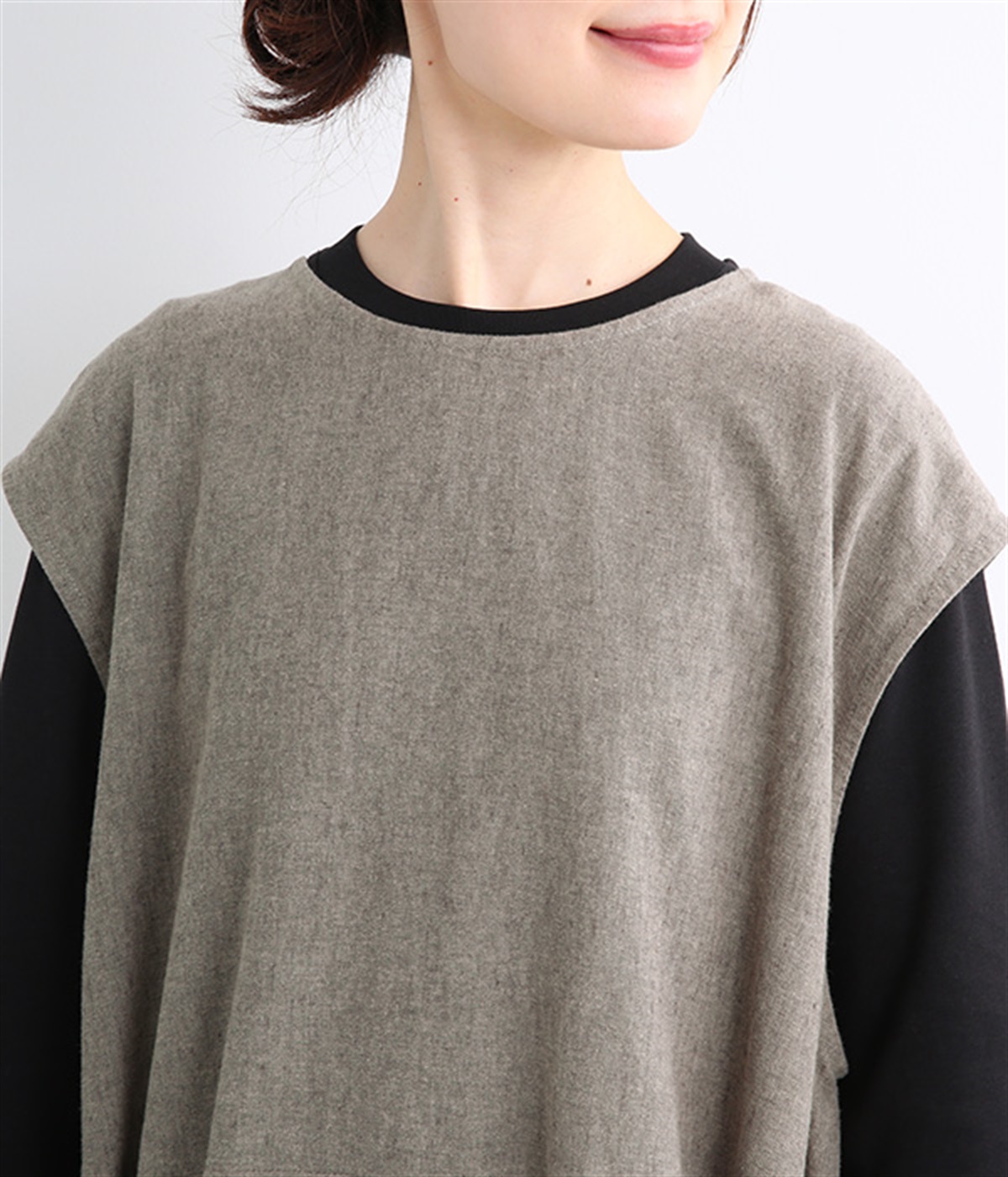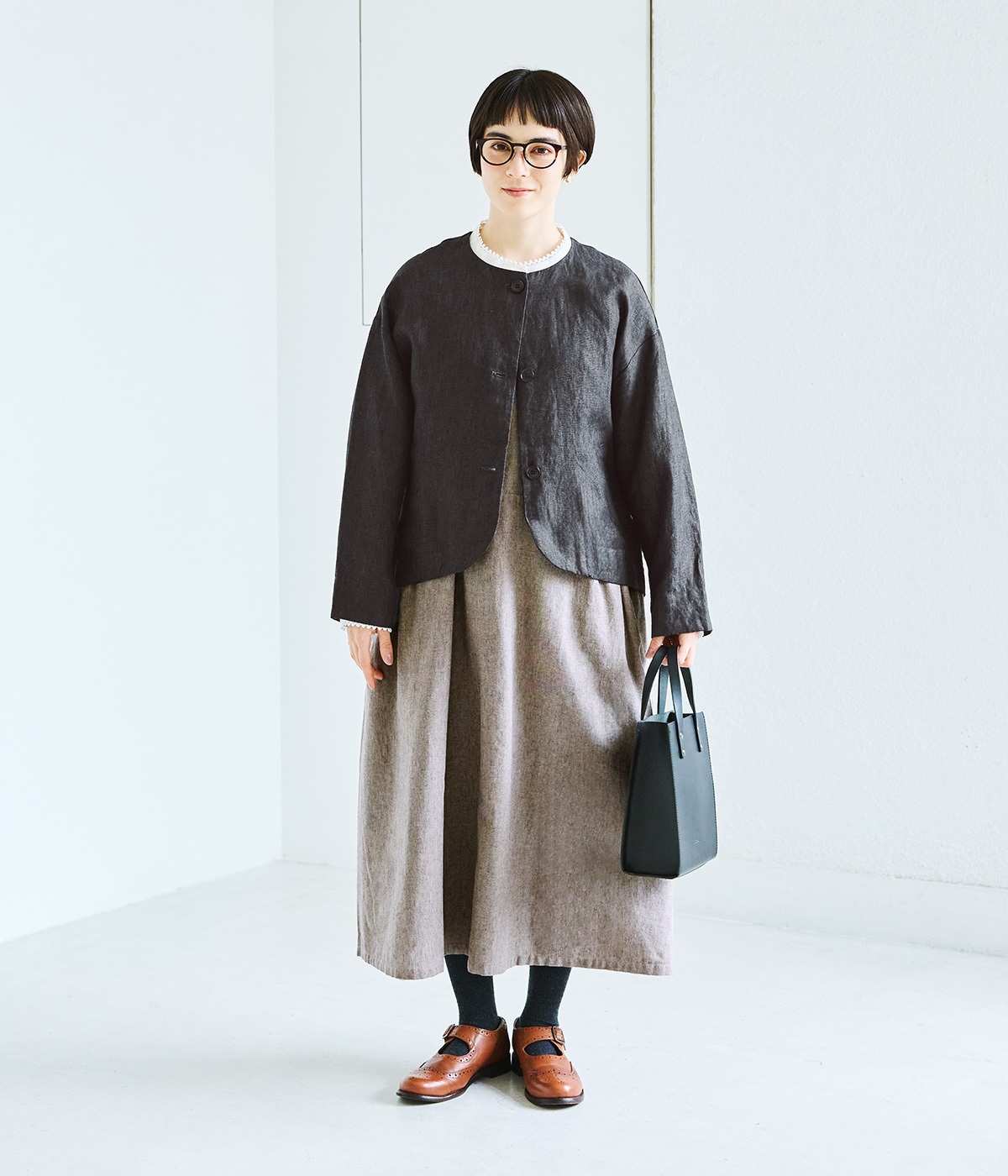 ふんわりと柔らかな、微起毛のコットンリネン仕立て。表情のある素材感が、着こなしに深みを添えてくれます。落ち着いた色味の〈ベージュ〉と〈ダークグレー〉の2色展開です。