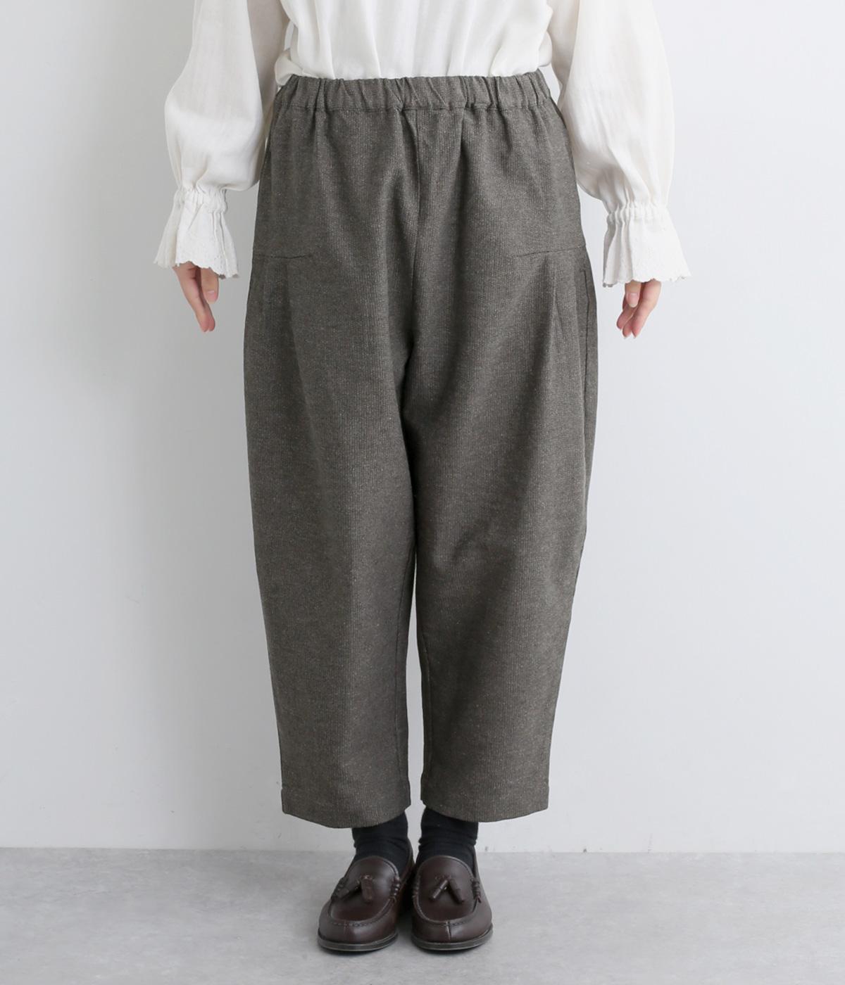 コットンとリネンがはき心地の良いパンツ。ドライタッチで適度にハリがあり、肉感をおさえた中厚手生地ではきこなしやすい仕上がりです。