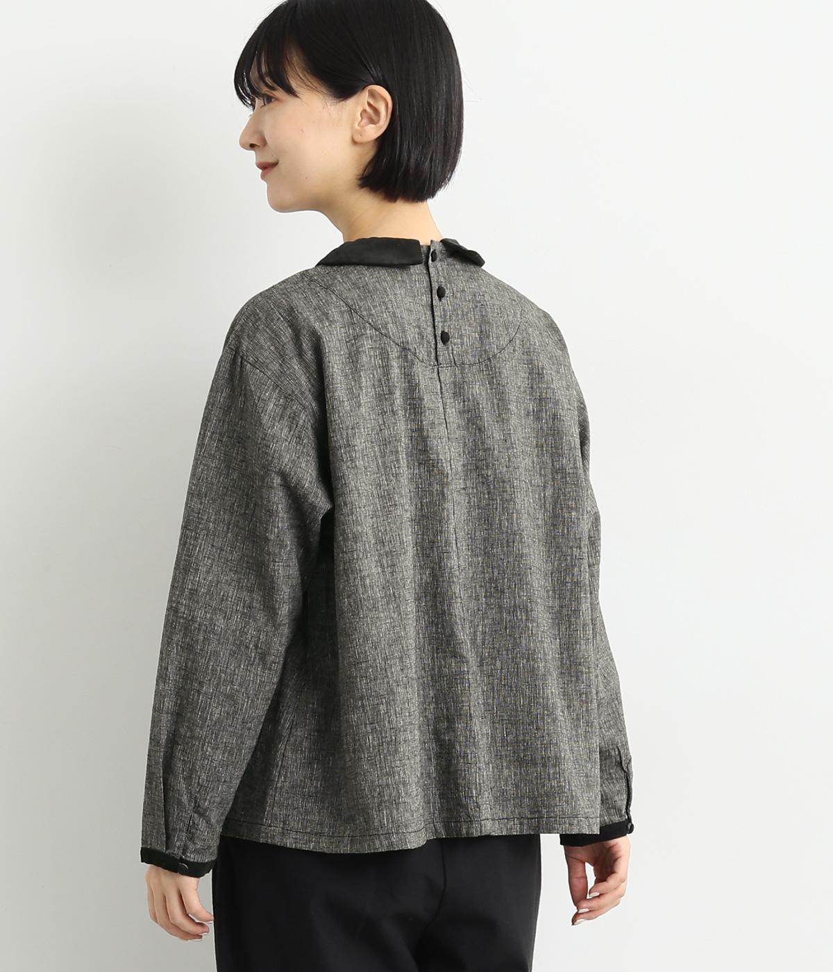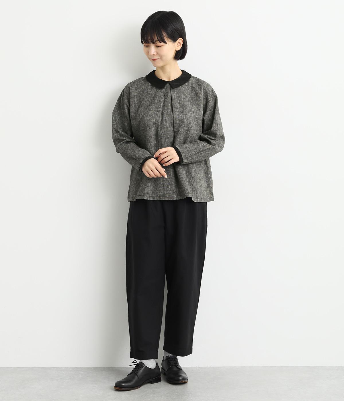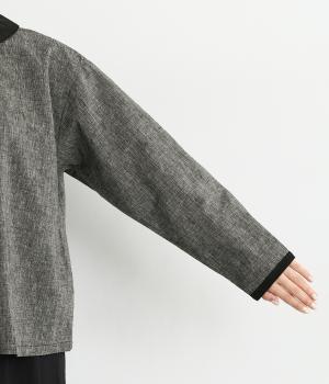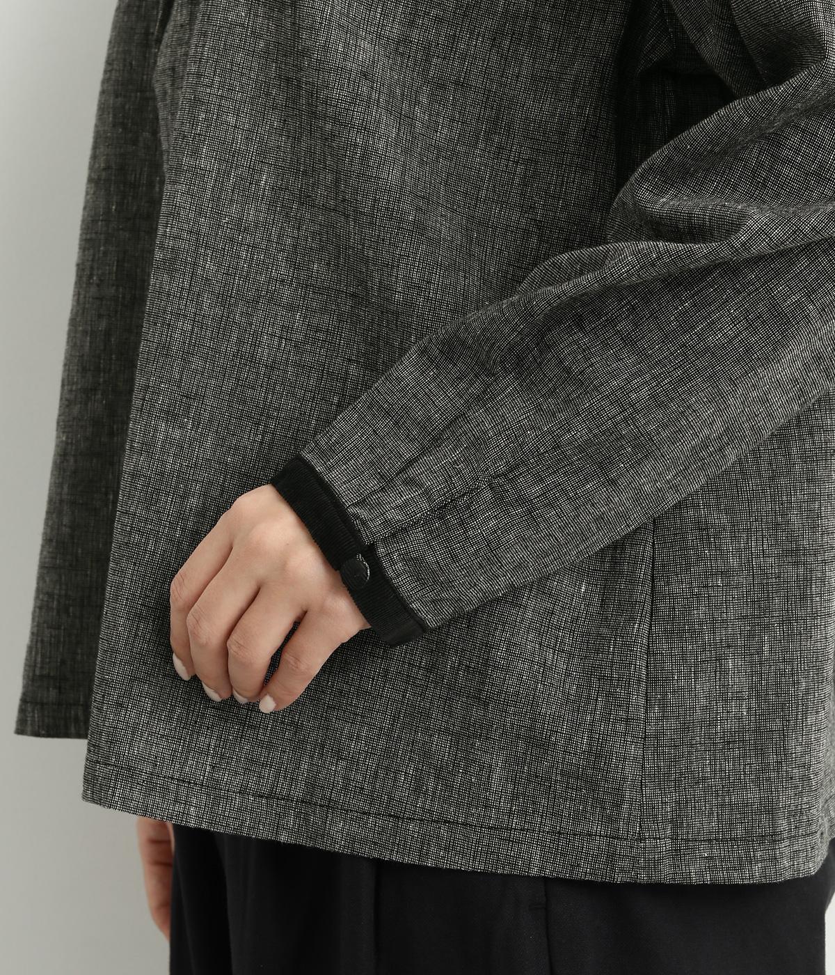 コットンとリネンを掛け合わせてナチュラルで気負いのない風合いを惹きたてました。適度にハリのあるさらっとした質感に薄めの中厚手生地で、季節の変わり目にも軽く着こなしやすい仕上がりです。