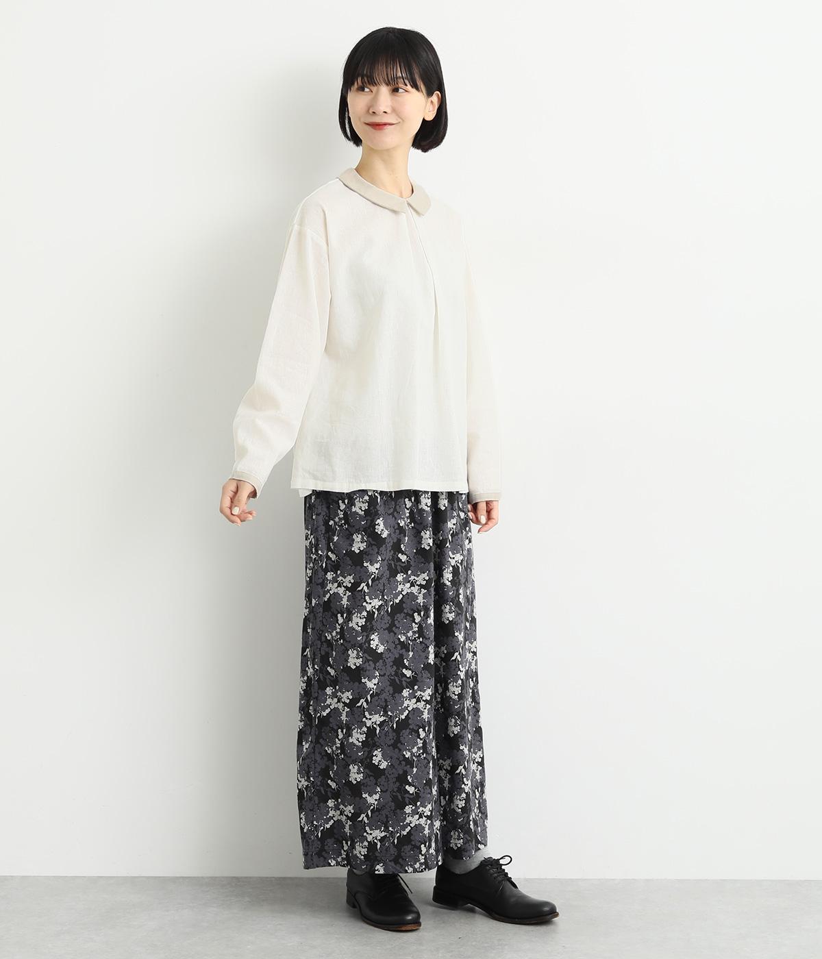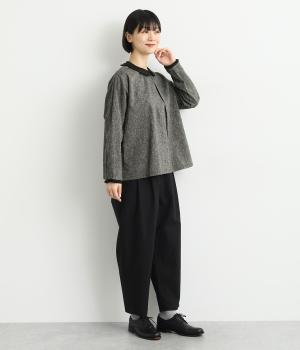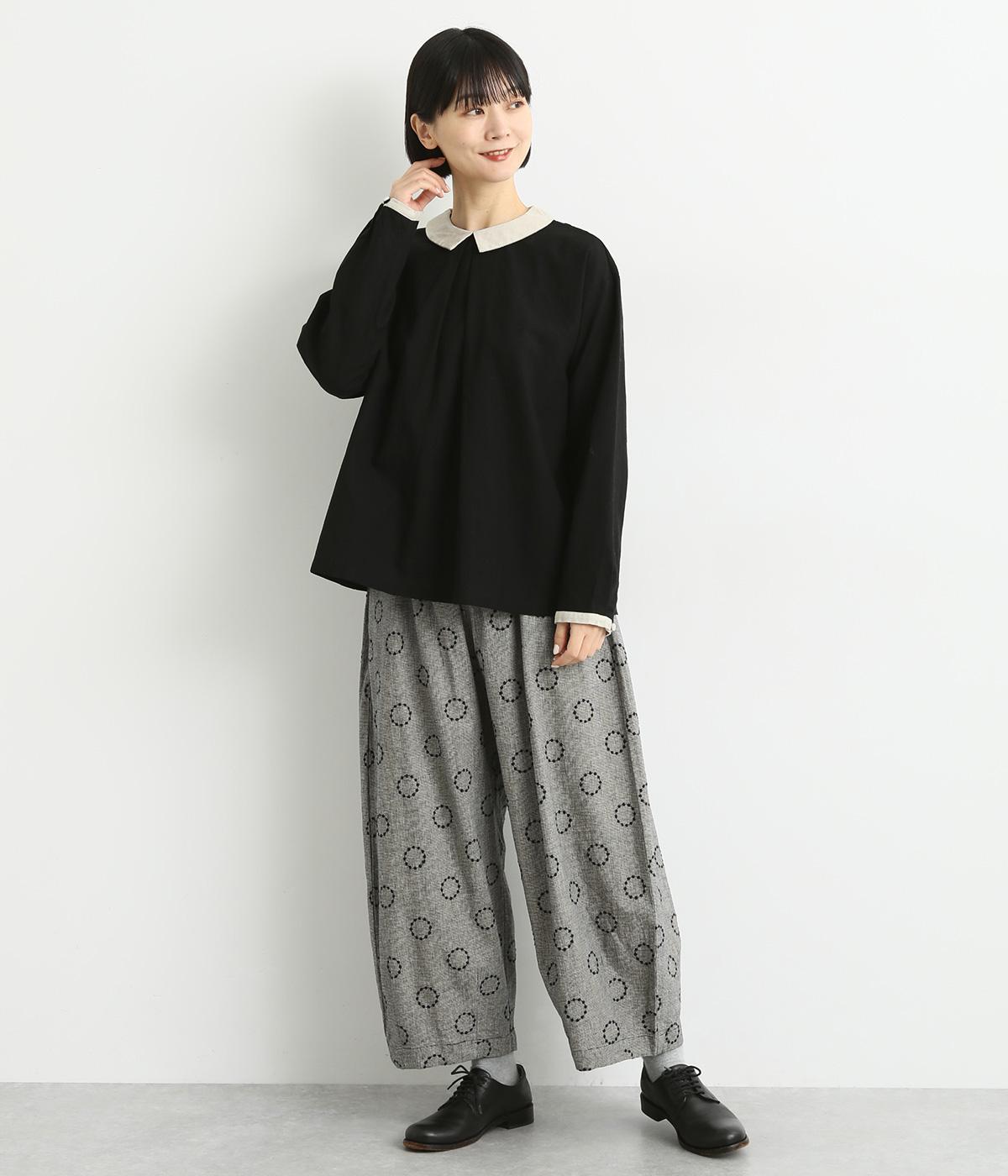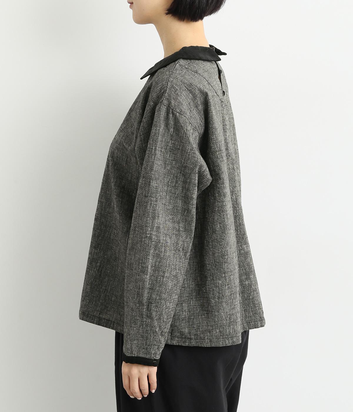 コットンとリネンを掛け合わせてナチュラルで気負いのない風合いを惹きたてました。適度にハリのあるさらっとした質感に薄めの中厚手生地で、季節の変わり目にも軽く着こなしやすい仕上がりです。