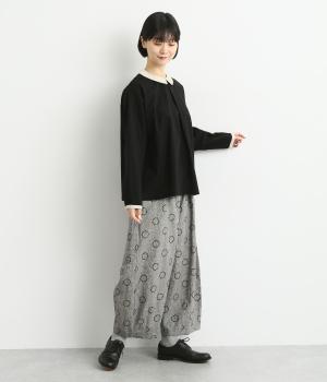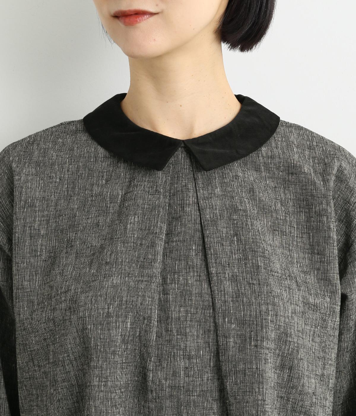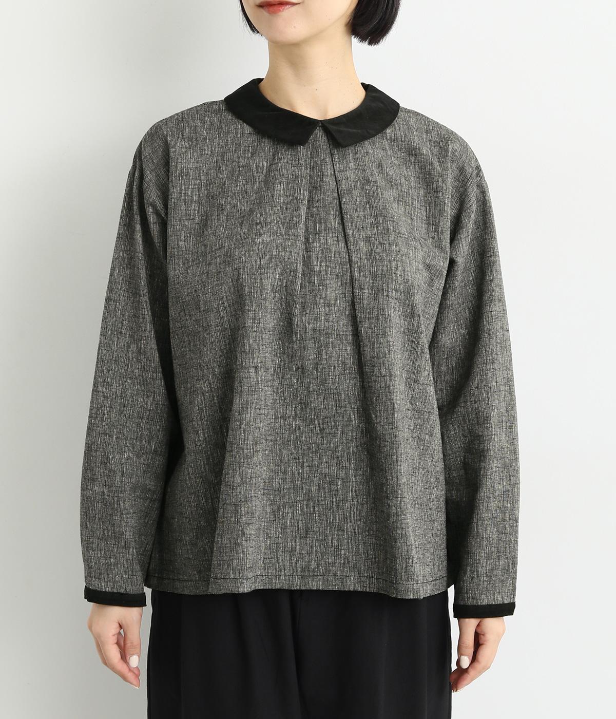 コーデュロイの配色生地をポイントに配したデザインが、クラシカルな雰囲気漂う一枚。タックを入れてゆとりを持たせたボックスシルエットで、パンツにもスカートにも合わせやすく仕上がっています。ナチュラル素材ながらもきれいめな装いにも◎。
