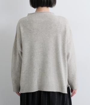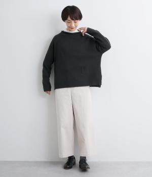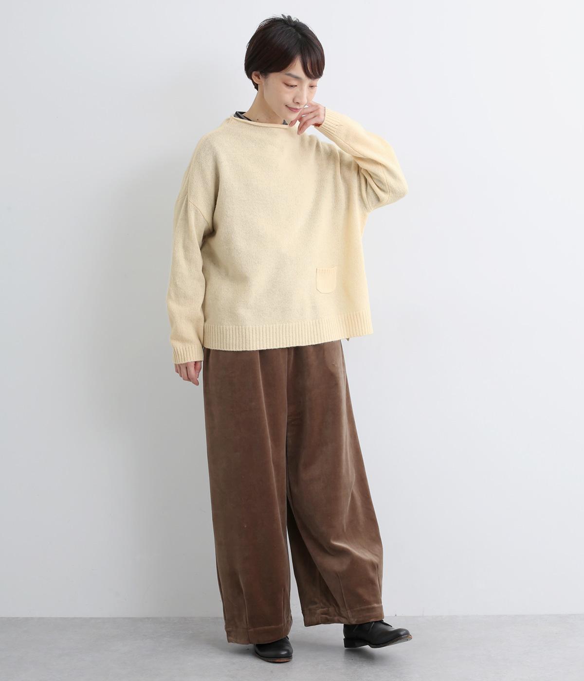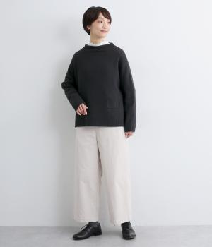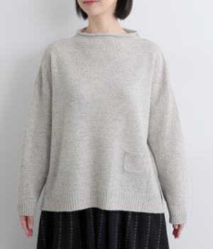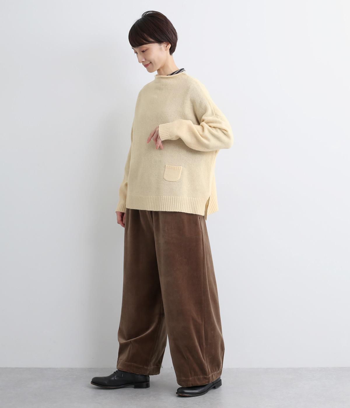 くるんと立ち上がったボトルネックやちょこんとついた裾ポケットが特徴的な一枚。シンプルで着まわしやすいけど遊び心があり、リラックスして過ごしたいデイリースタイルにぴったりです。裾スリット入りでラフなトップスアウトも◎。