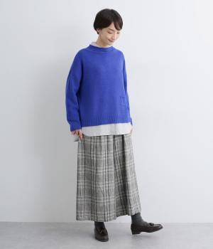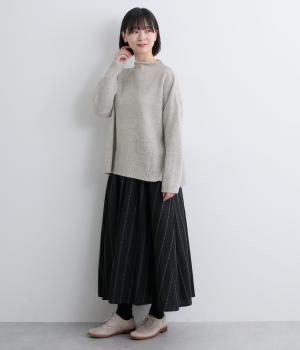 ウールで保温性を高め、ナイロンをまぜて適度に軽やかに編み上げました。肉厚すぎないのでジャケットやコートも羽織りやすく、季節の変わり目から長く着まわせます。