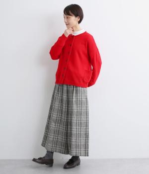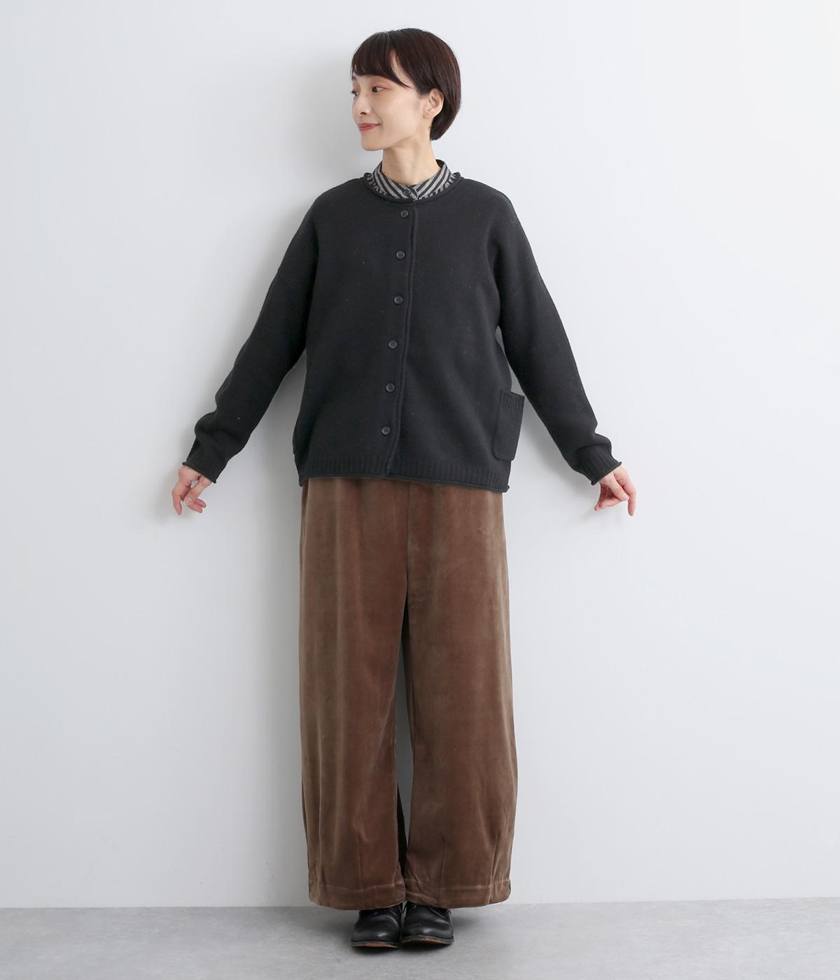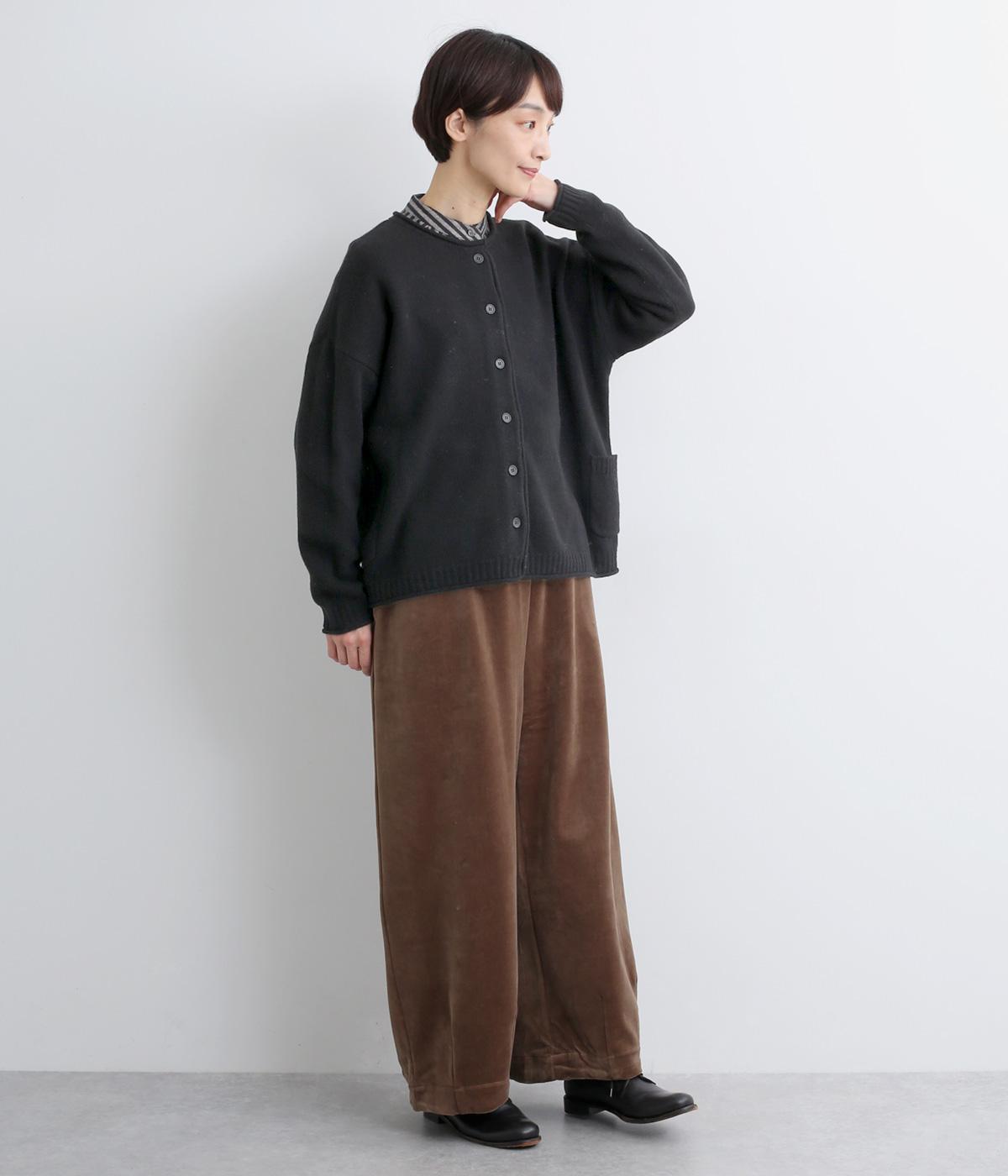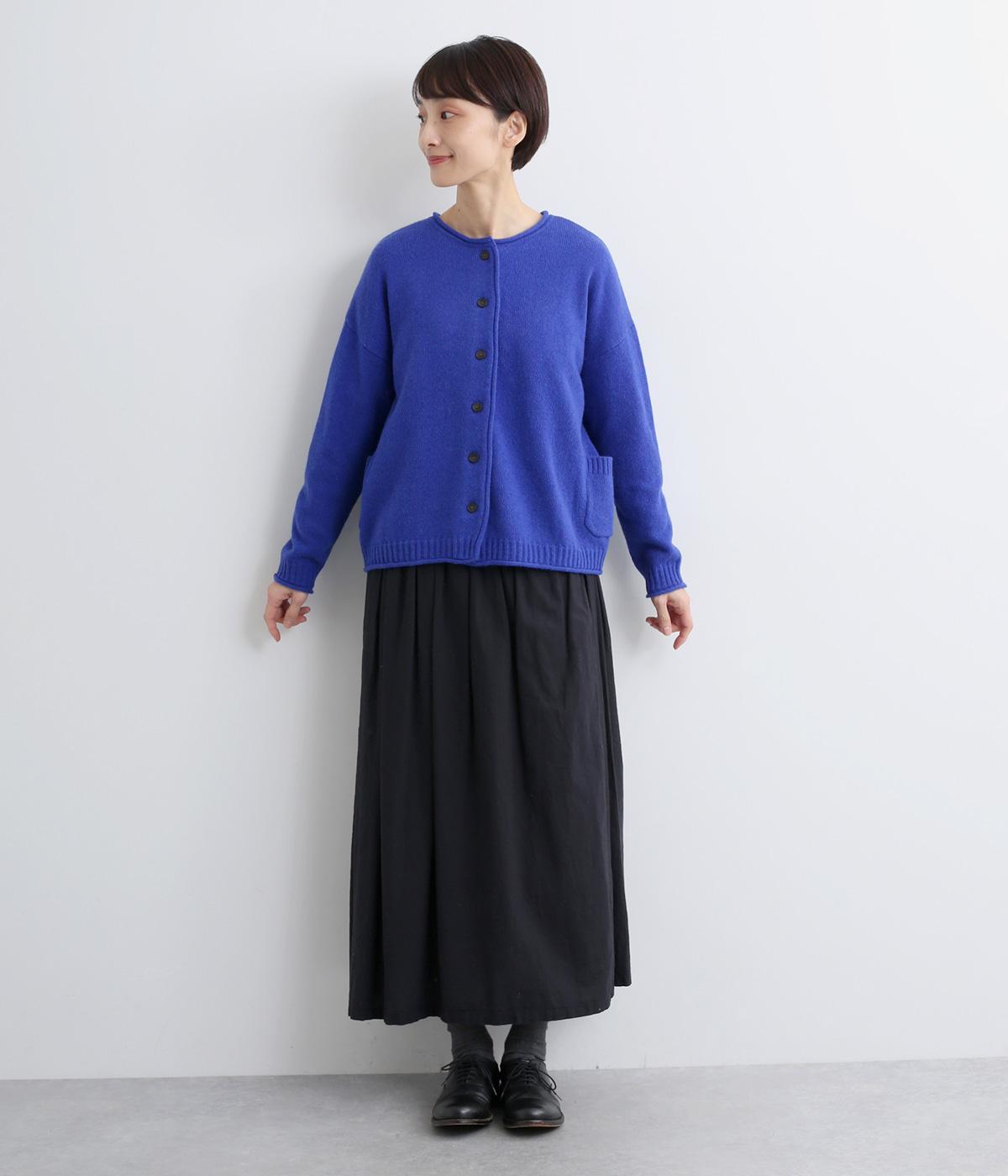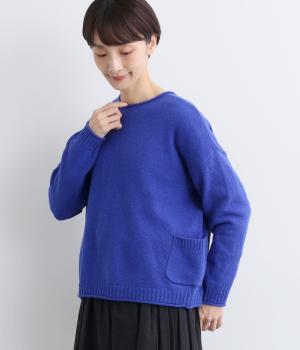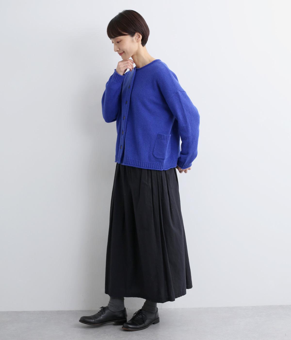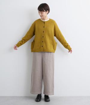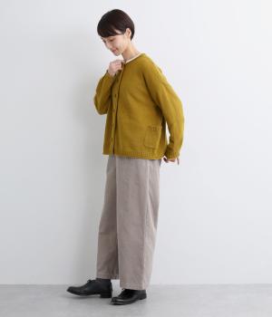 前後をまたぐようについたサイドポケットが特徴的な一枚。カーディガンにも、後ろあきのプルオーバーにもなる前後2wayで着こなしの幅が広がります。くるんと丸まったトリミングが可愛らしいニュアンスに。