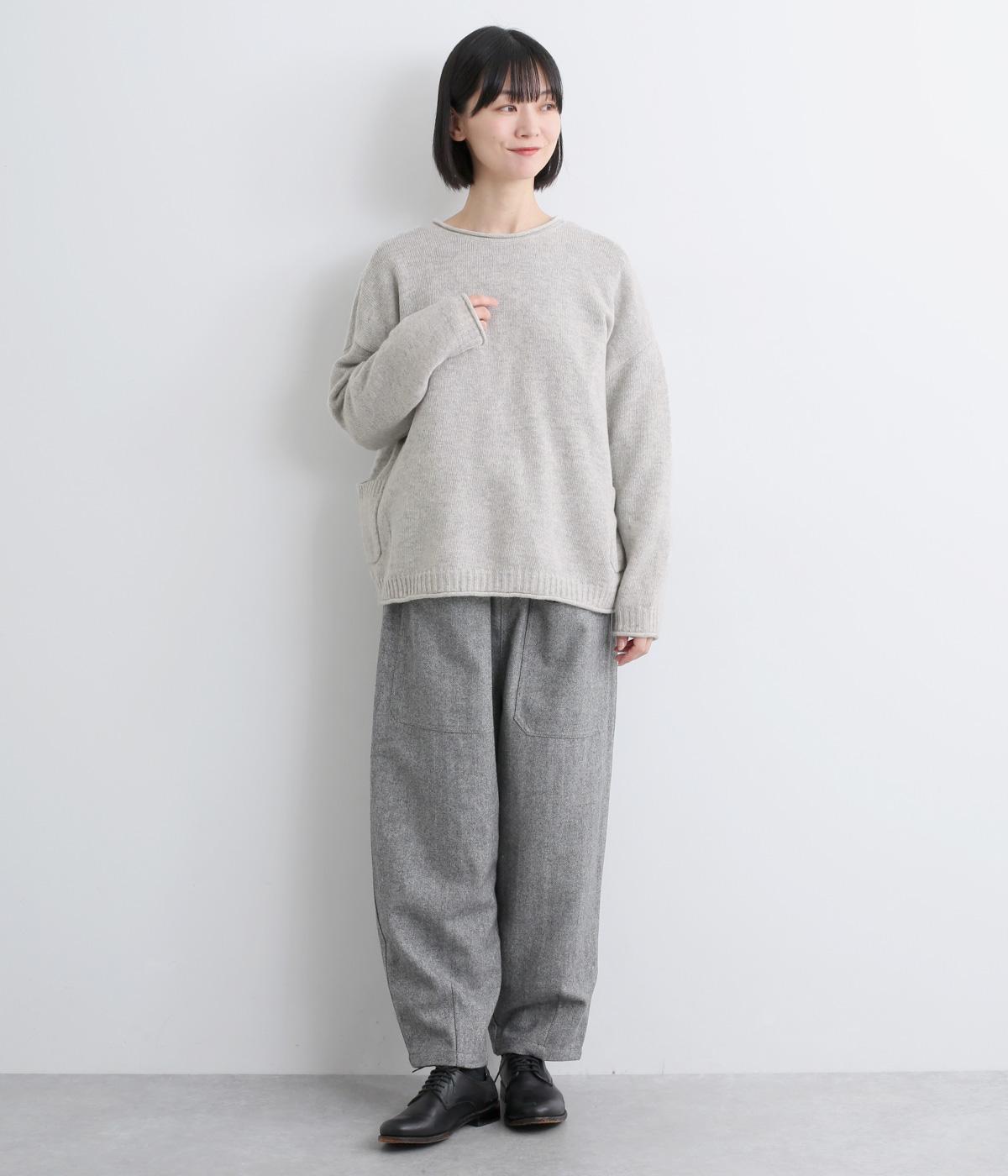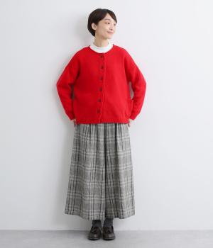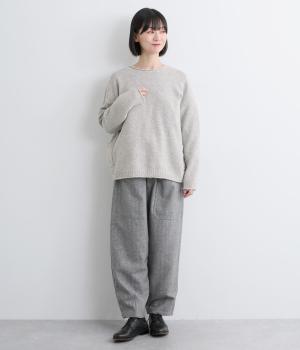 ウールで保温性を高め、ナイロンをまぜて適度に軽やかに編み上げました。肉厚すぎないのでジャケットやコートも羽織りやすく、季節の変わり目から長く着まわせます。