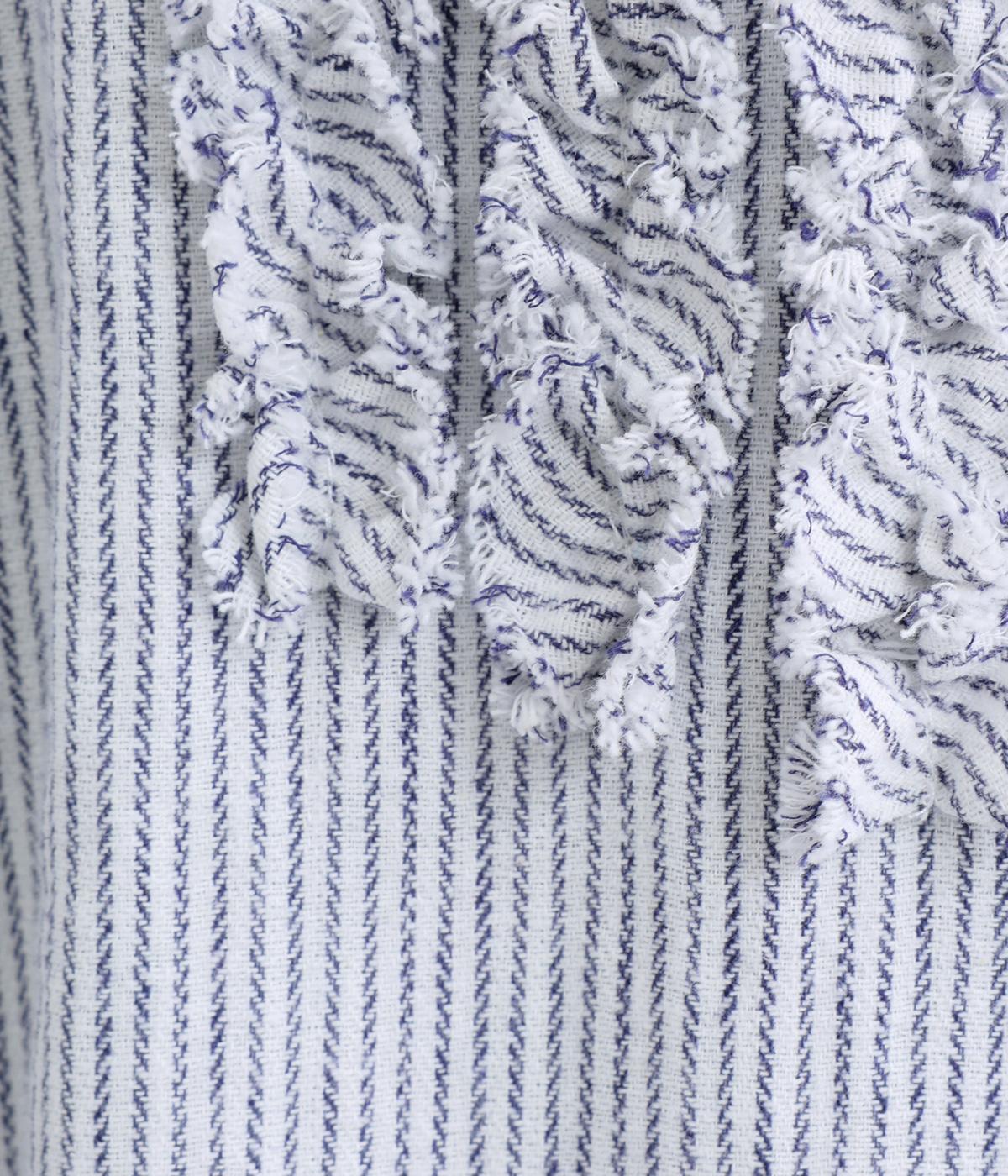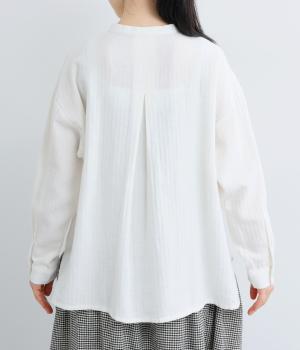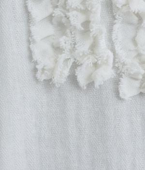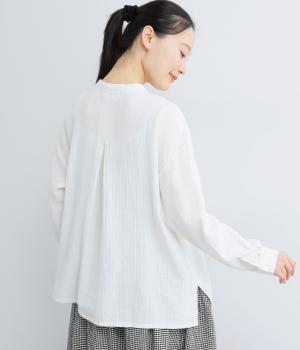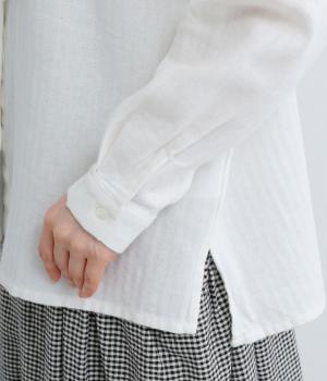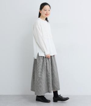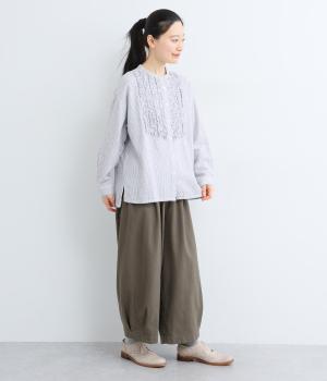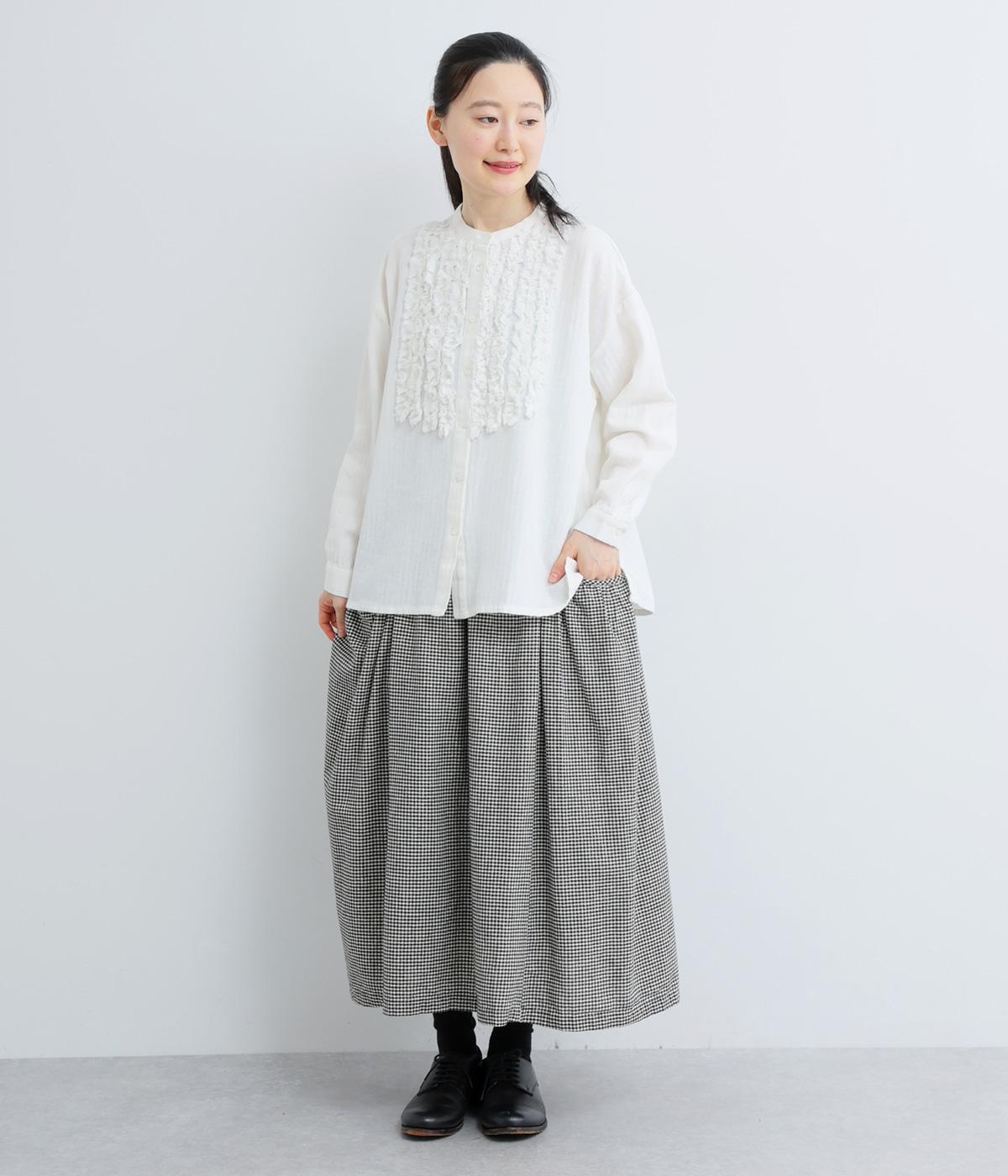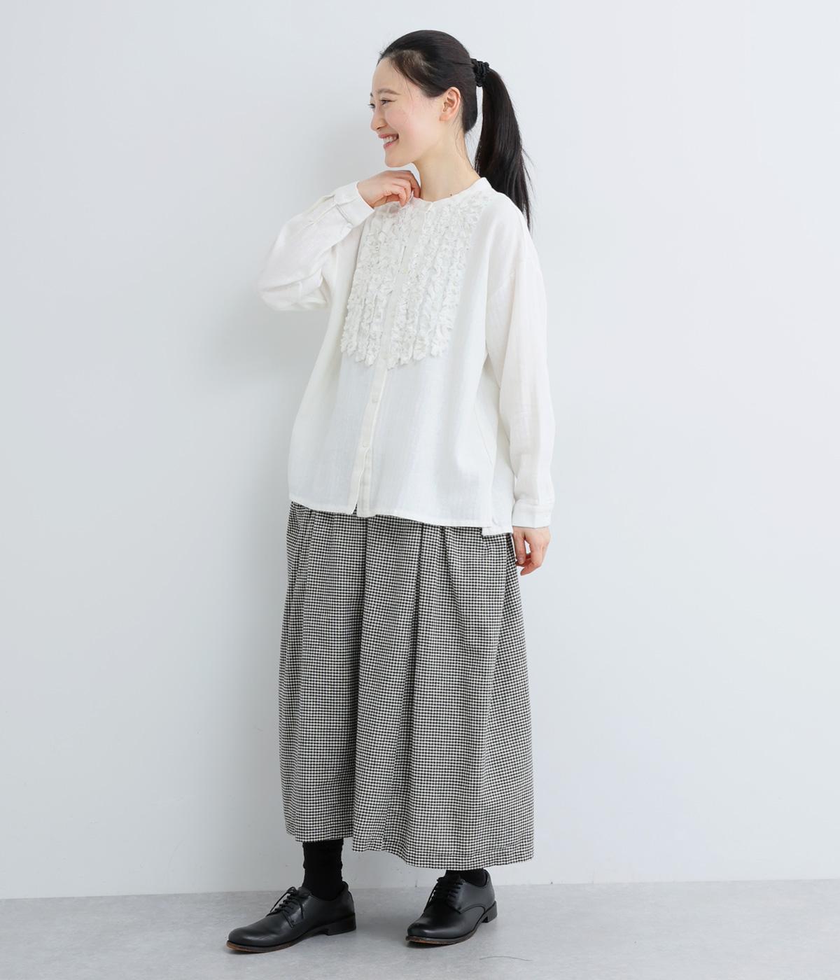 胸元にたっぷりフリルをほどこしたロマンティックなブラウス。ナチュラルな生地感や裁ち切り仕様で甘すぎないちょうどいいバランスに仕上がっています。裾まわりはすっきりさせているのでカジュアルなボトムとも好相性。