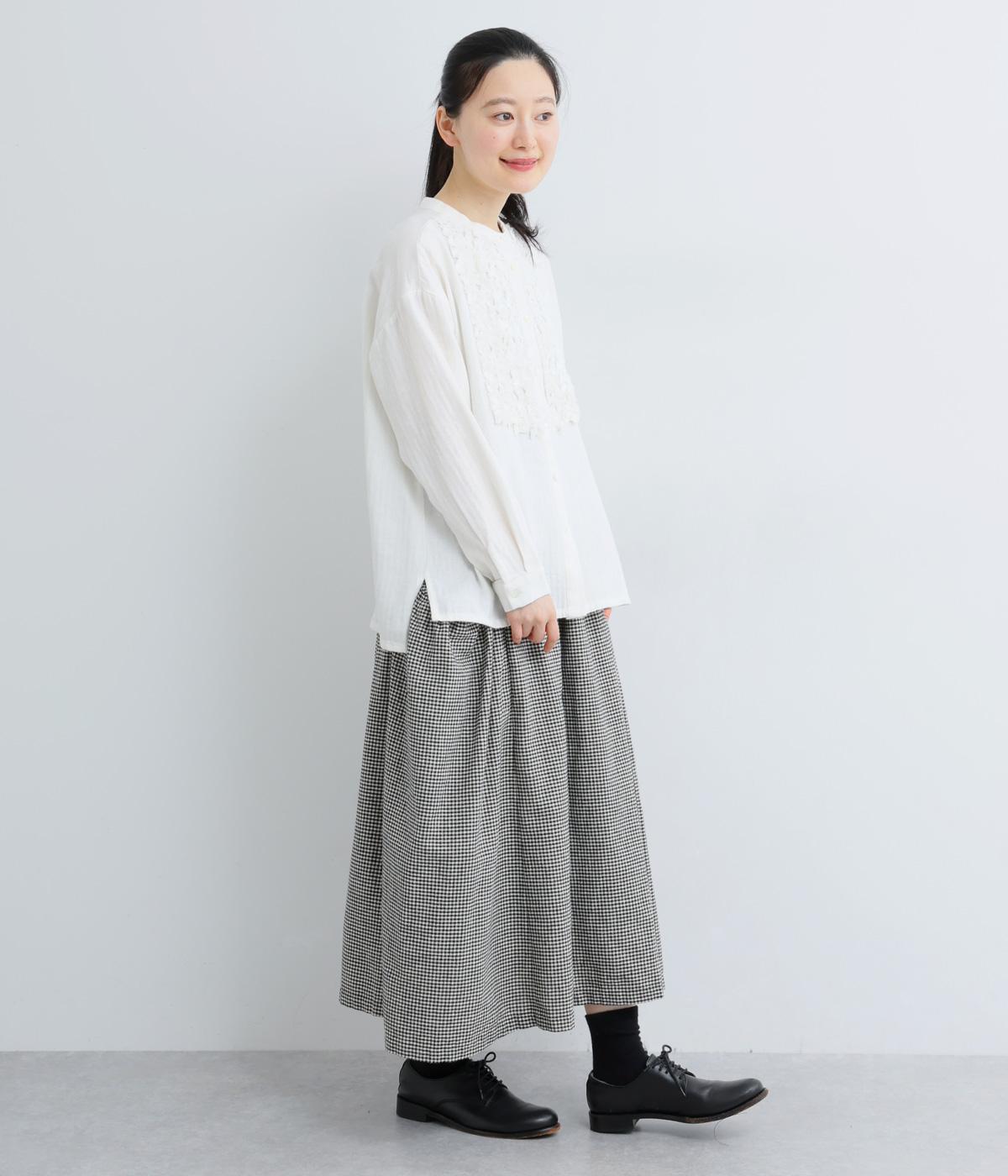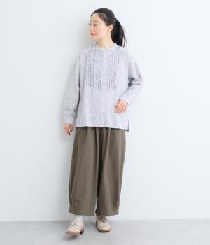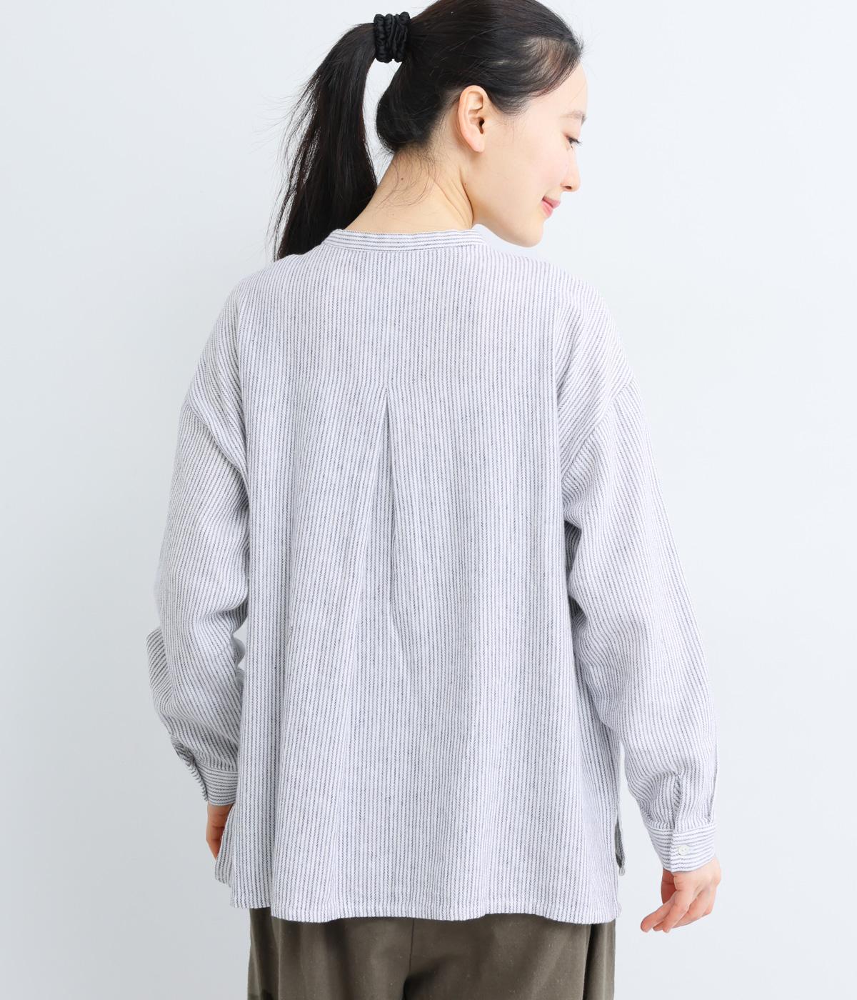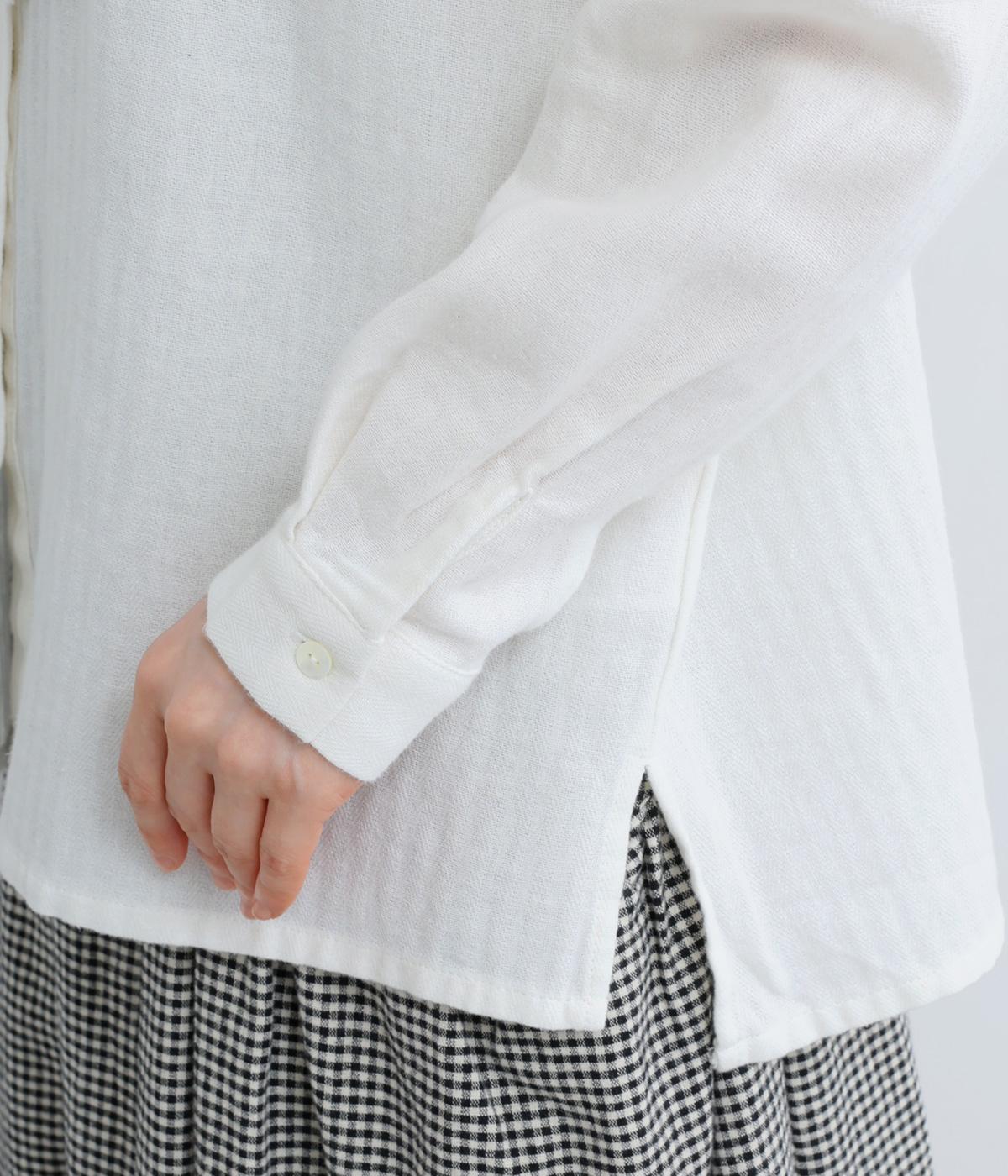 微起毛によるあたたかみのある表面感とナチュラルな風合いがデイリー使いしやすいコットンリネン生地。厚手すぎないので着こなし次第でロングシーズン活躍。