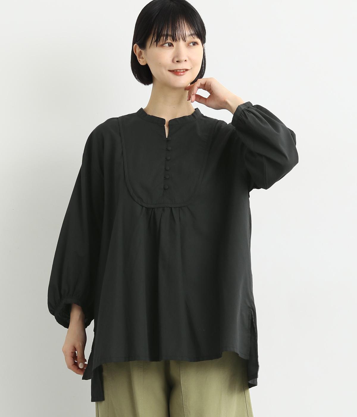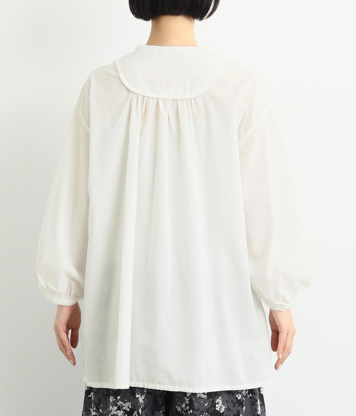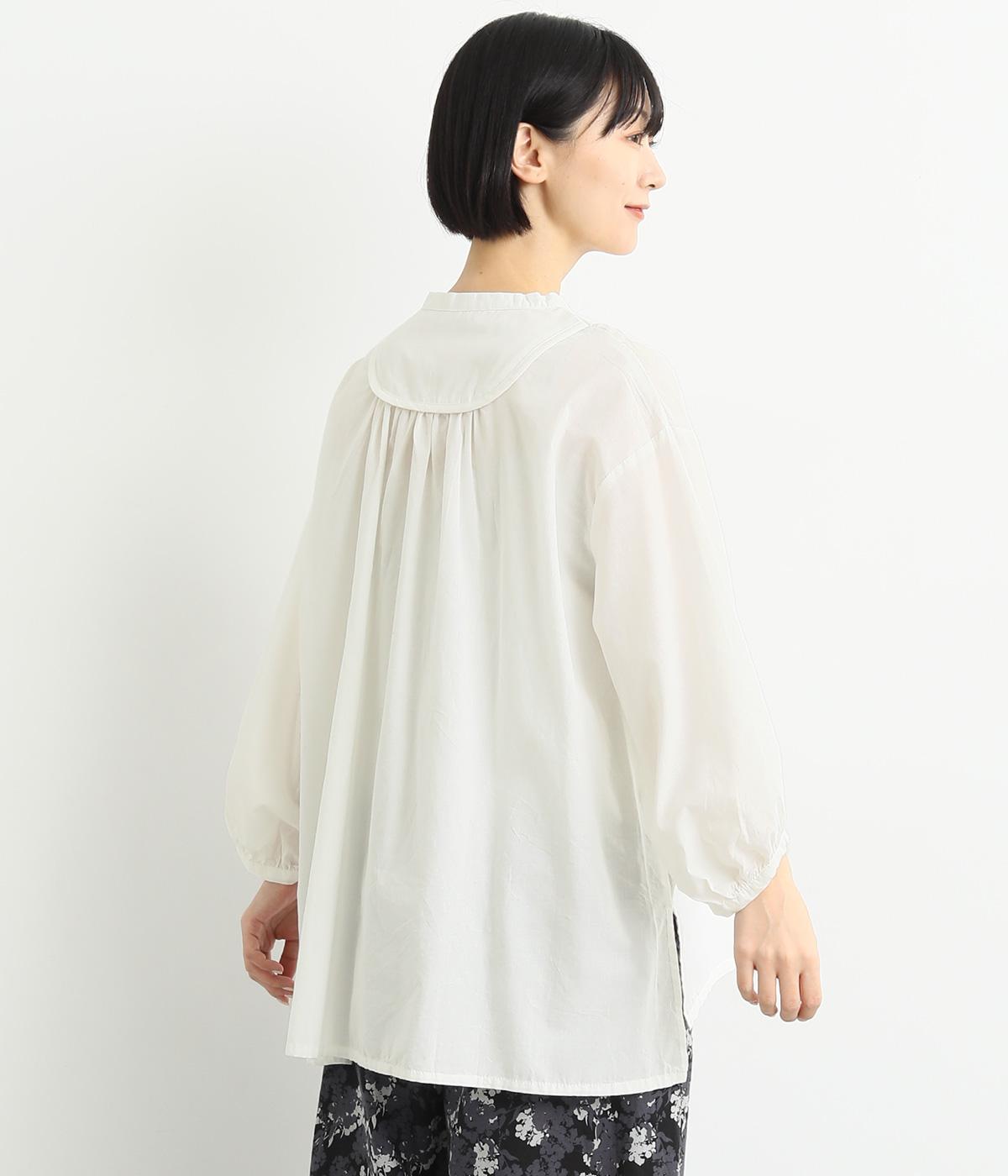 ヨークデザインがクラシカルな雰囲気漂う一枚。ふっくらとしたボリュームのある袖も世界観にマッチしています。レイヤードがたのしめるチュニック丈で、スリットを入れているのでボトム合わせもすっきりと。顔まわりの適度な抜け感も◎。