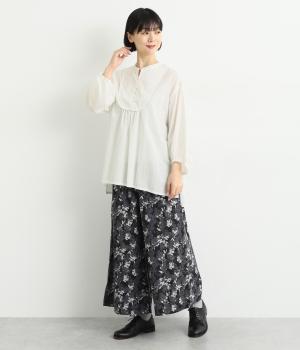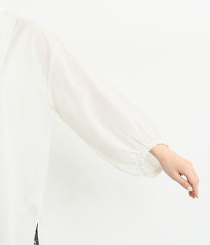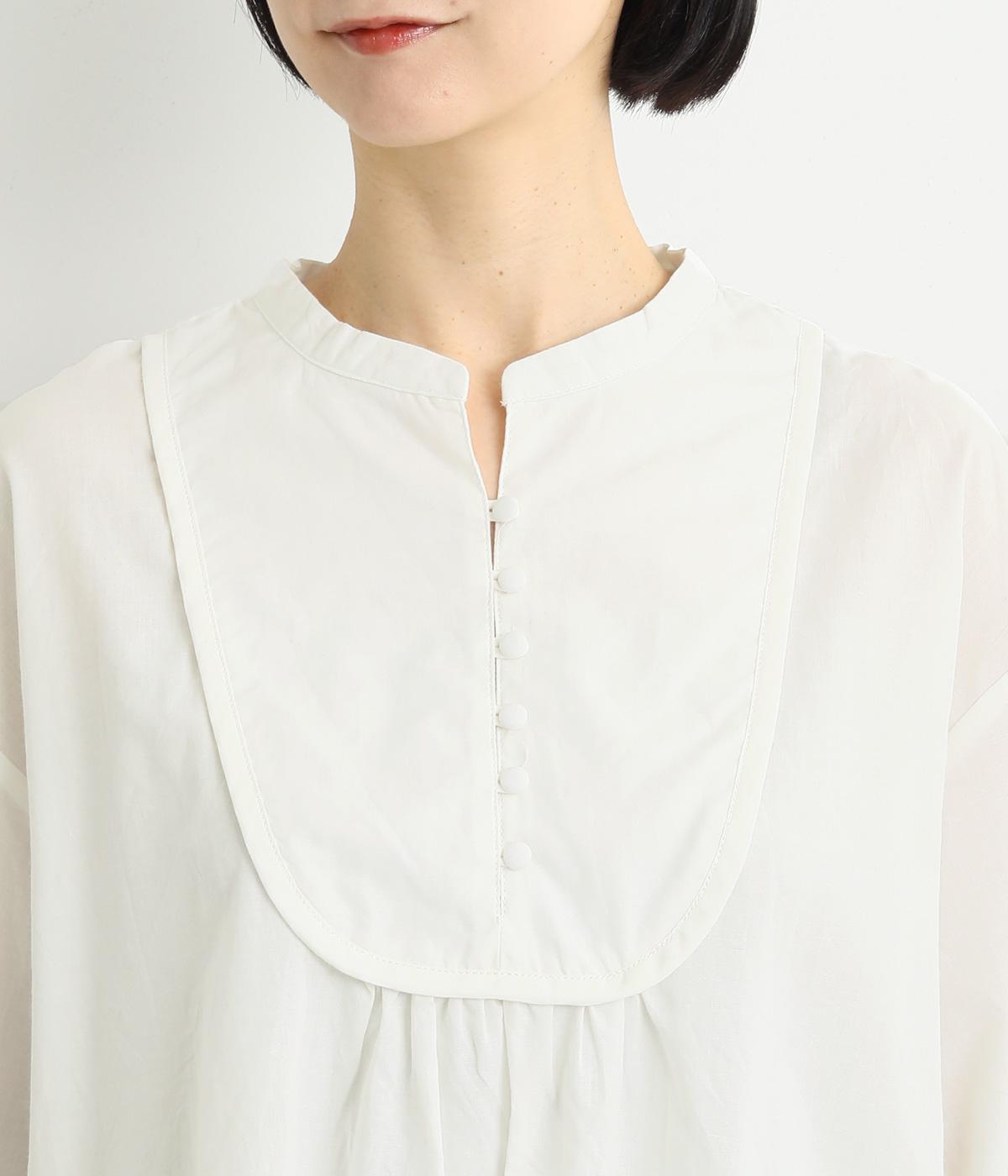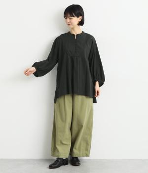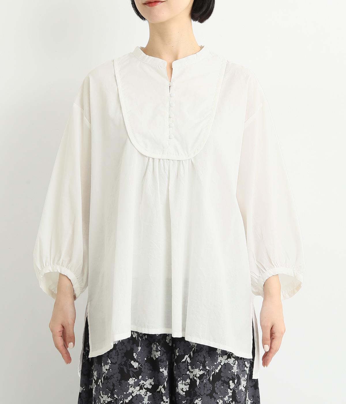 ヨークデザインがクラシカルな雰囲気漂う一枚。ふっくらとしたボリュームのある袖も世界観にマッチしています。レイヤードがたのしめるチュニック丈で、スリットを入れているのでボトム合わせもすっきりと。顔まわりの適度な抜け感も◎。