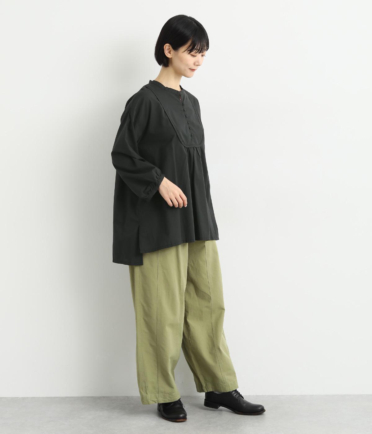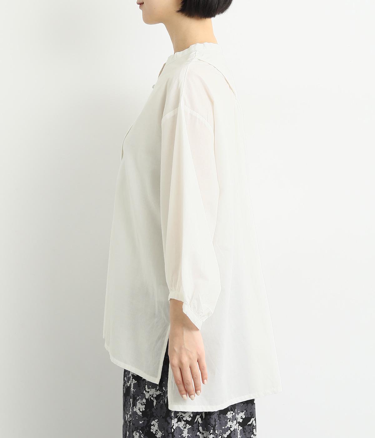繊細さのあるコットンの細番手で、さらっと軽やかに仕立てました。薄めの中厚手生地でロングシーズン着まわしやすく、適度なふくらみで着心地も快適です。