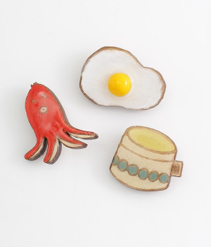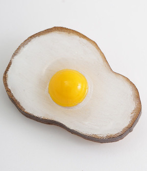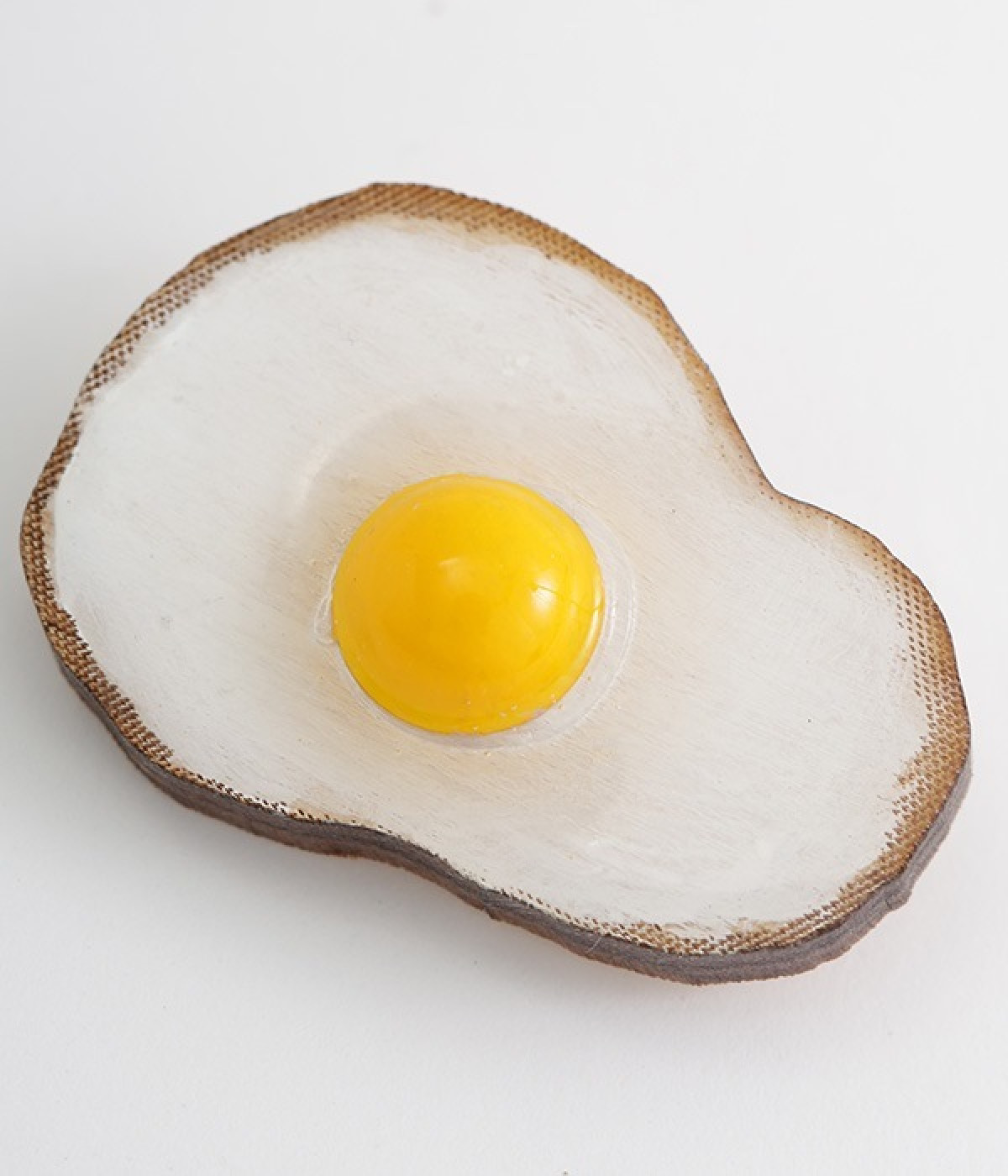 美味しい朝ごはんをモチーフにしたブローチです。メープルの木をレーザーで焦がして、やわらかい色味をつけて、つるつるの樹脂でぷっくりとコーティング。ころんとかわいらしいデザインが、コーディネートに遊び心を添えてくれます。服に帽子に布バッグに、オールマイティに活躍しそう。いつもの毎日、いつもの朝が特別な日になるような、ちょっぴり個性的で楽しいブローチです。