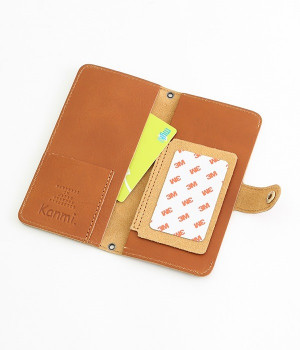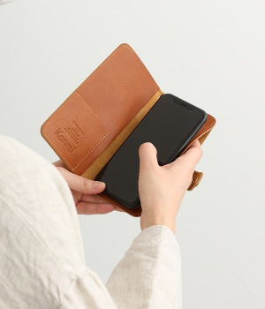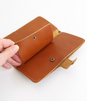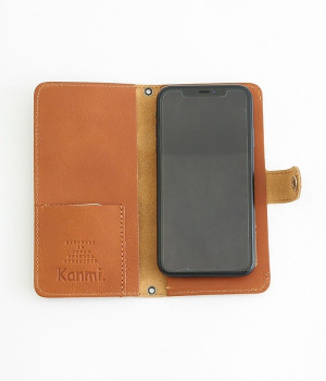 持ちやすく、撮りやすく、スマホスタンドにもなる牛革のハンディスマホケースLサイズです。手帳の部分をパタンと折り畳むことでサッと構えて、瞬時に写真を撮ることができるケースに仕立てました。いつもはスナップボタンでスマホ取り付け部分と手帳がくっついているから、必要なときだけ。免許証やICカードなど常に持っていたいものが入れられたり、ちょっとしたカードや駐車券がしまっておけるスペースがあるのも嬉しいポイントです。