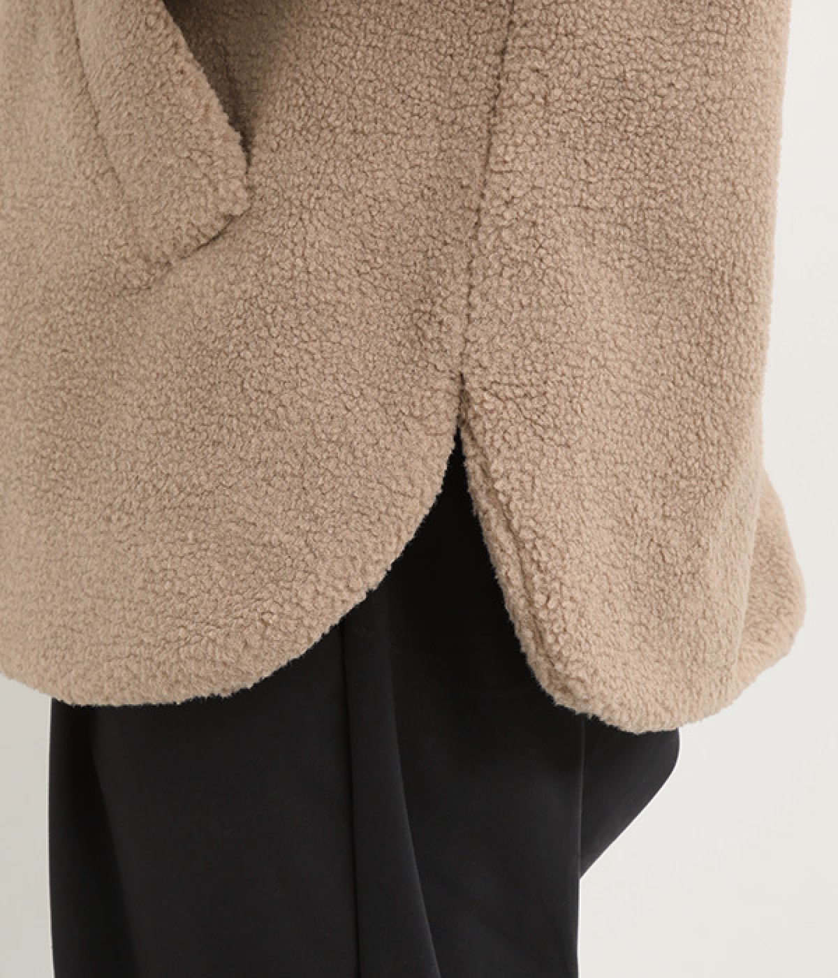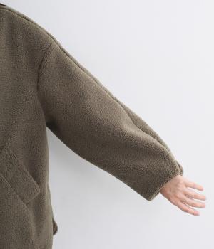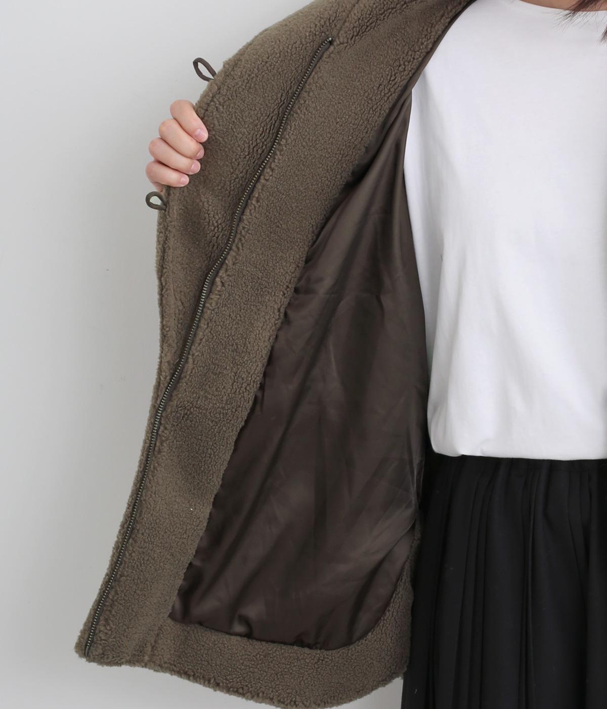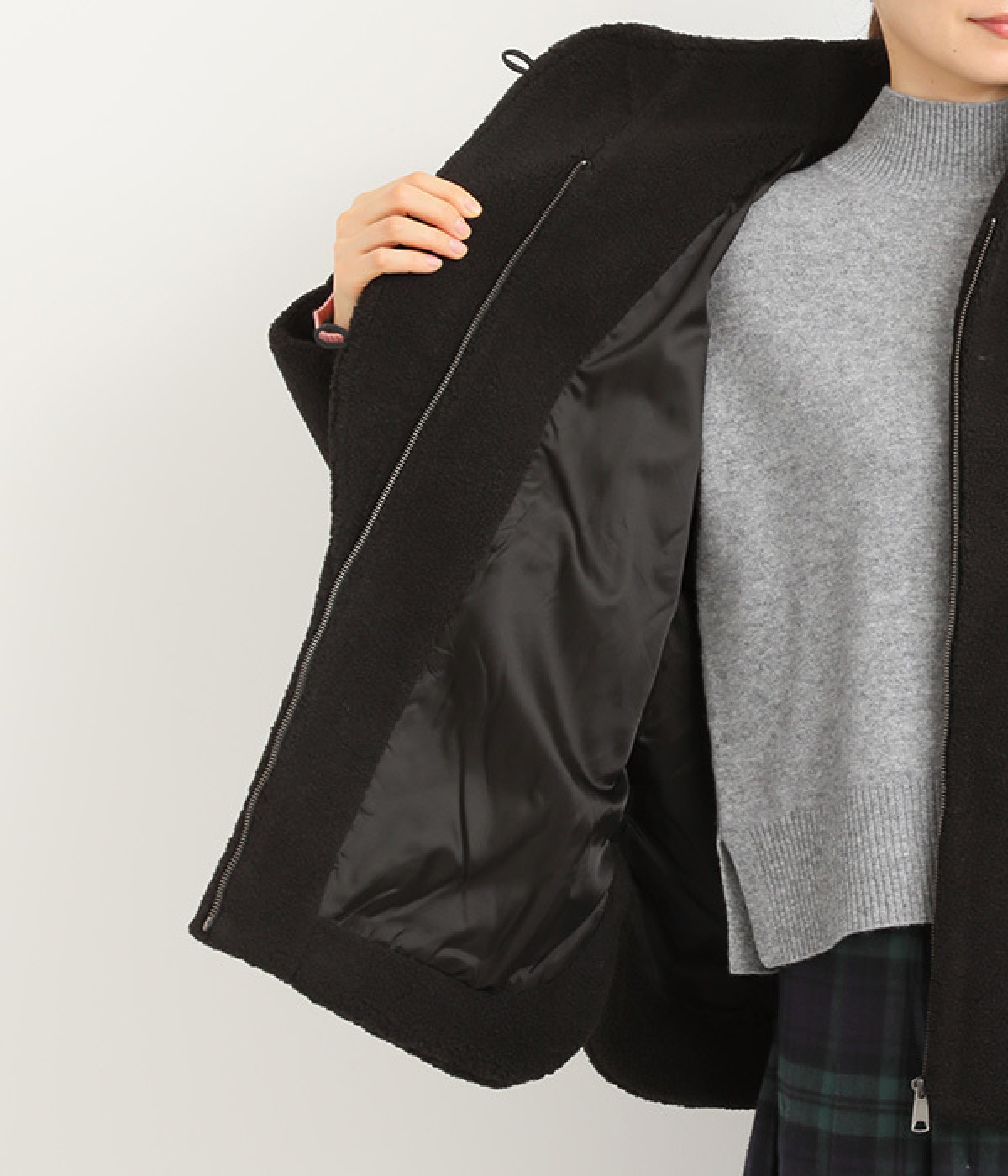 やわらかく肉厚なボアは保温性も抜群。ボリュームがあるのに比較的軽く、羽織りやすいです。フロントはフックタイプのボタンとファスナーの2重仕様になっています。
