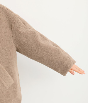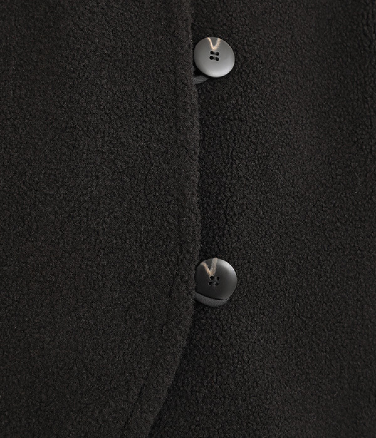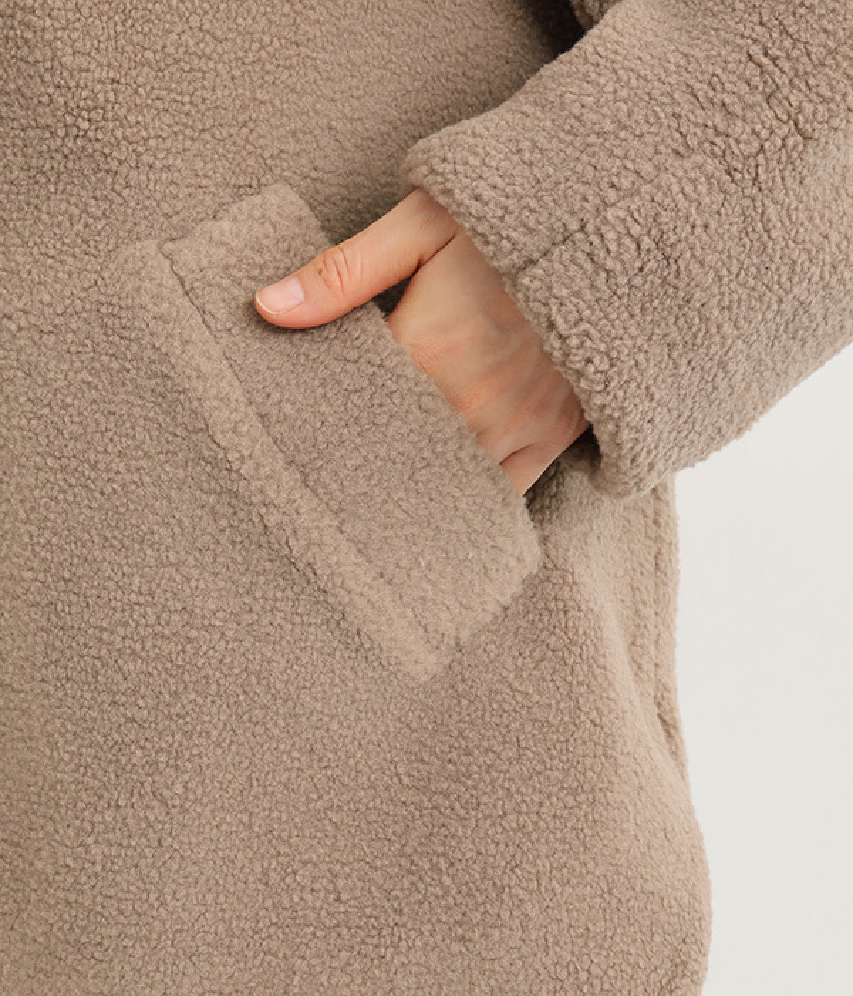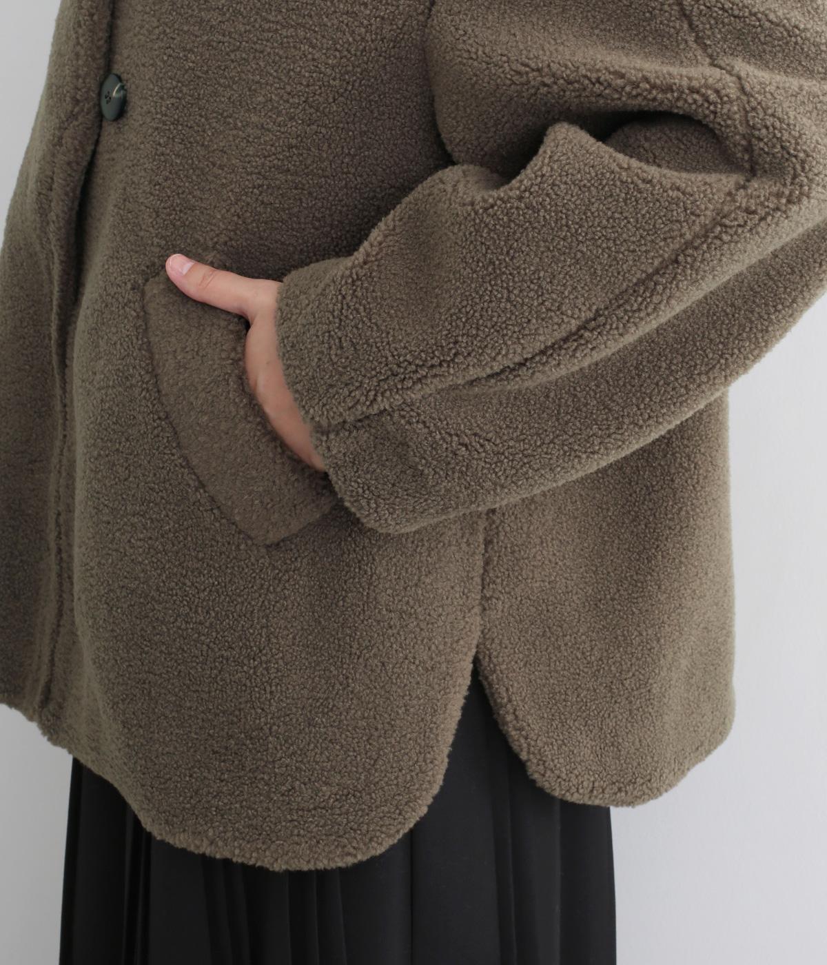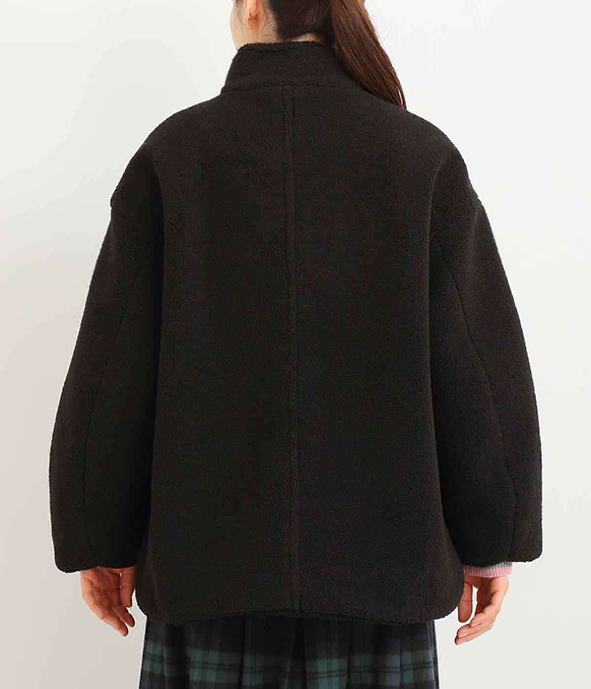 やわらかく肉厚なボアは保温性も抜群。ボリュームがあるのに比較的軽く、羽織りやすいです。フロントはフックタイプのボタンとファスナーの2重仕様になっています。