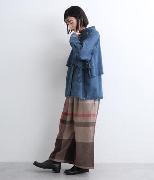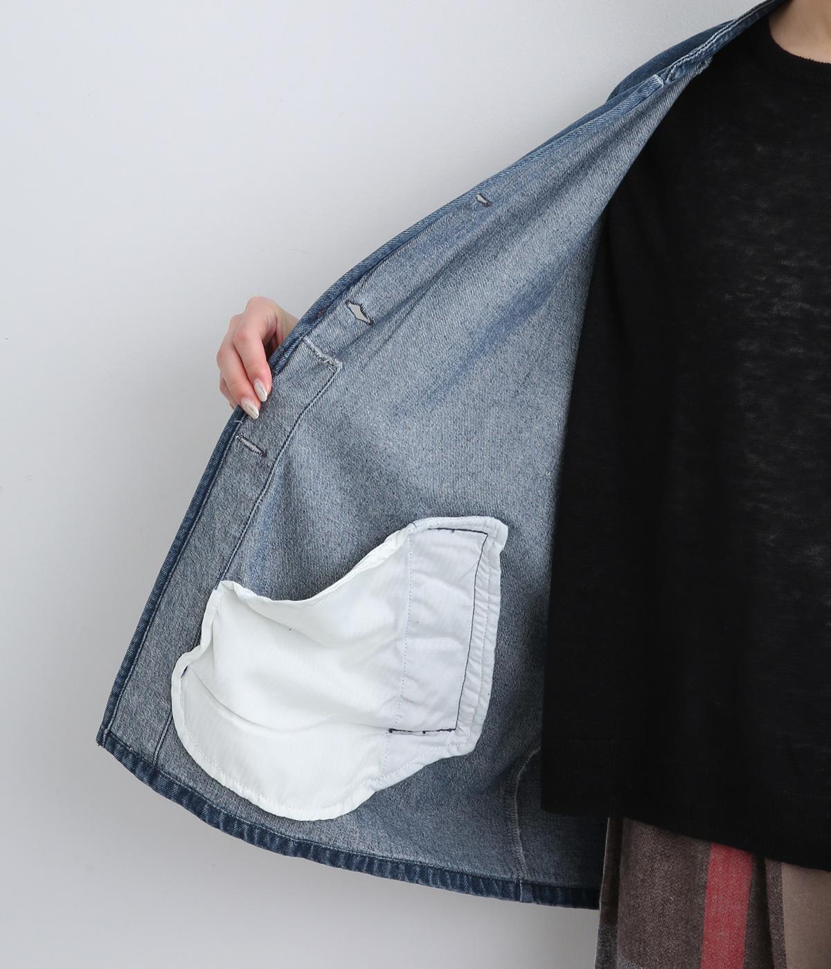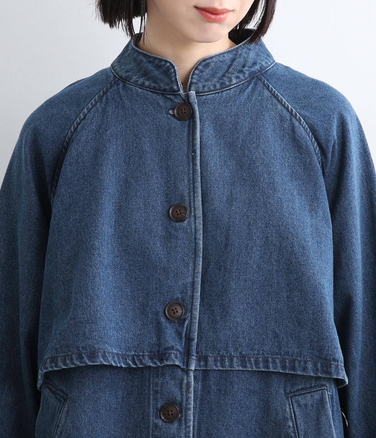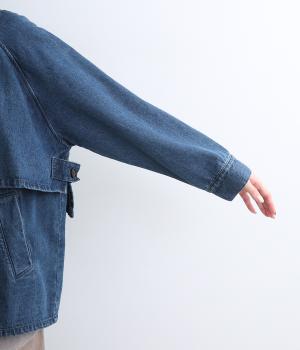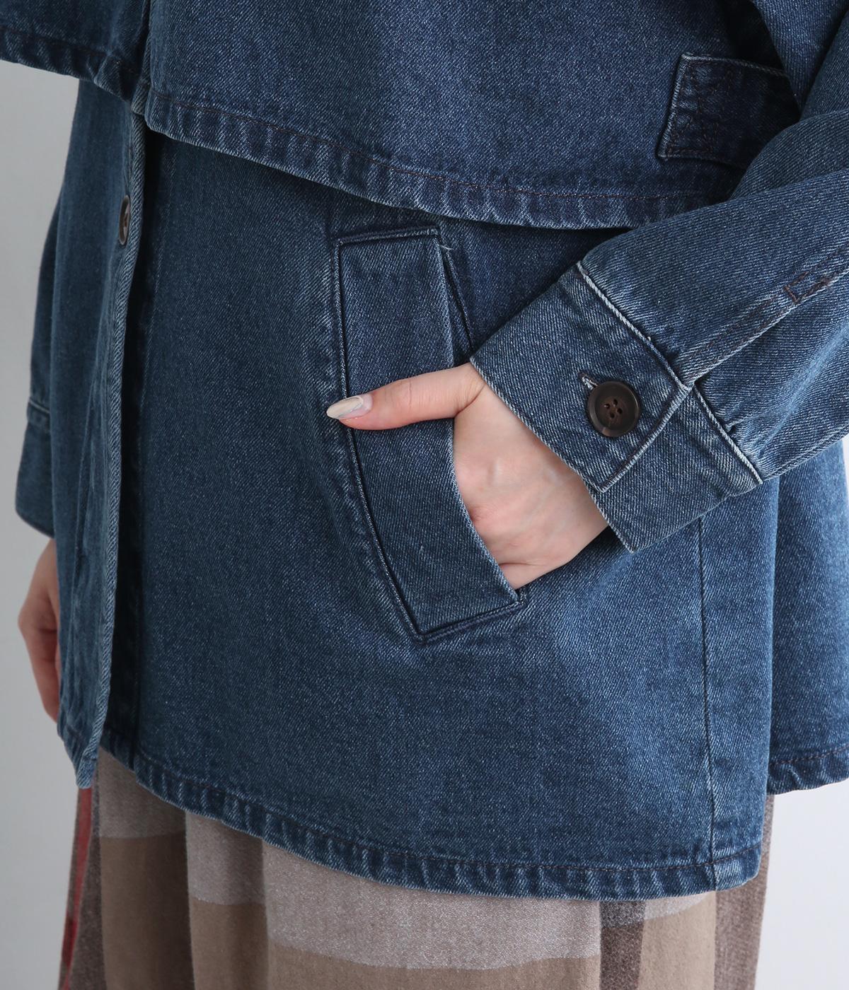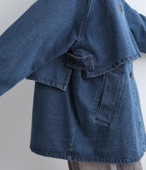 やわらかな肌ざわりとナチュラルな雰囲気が映えるコットンのデニム地を使用しました。中肉厚の生地で季節の変わり目にも最適です。
