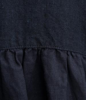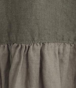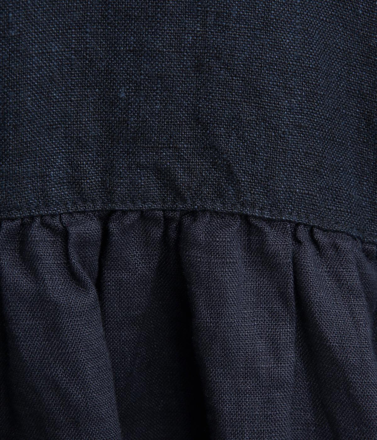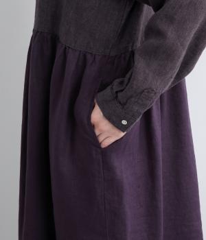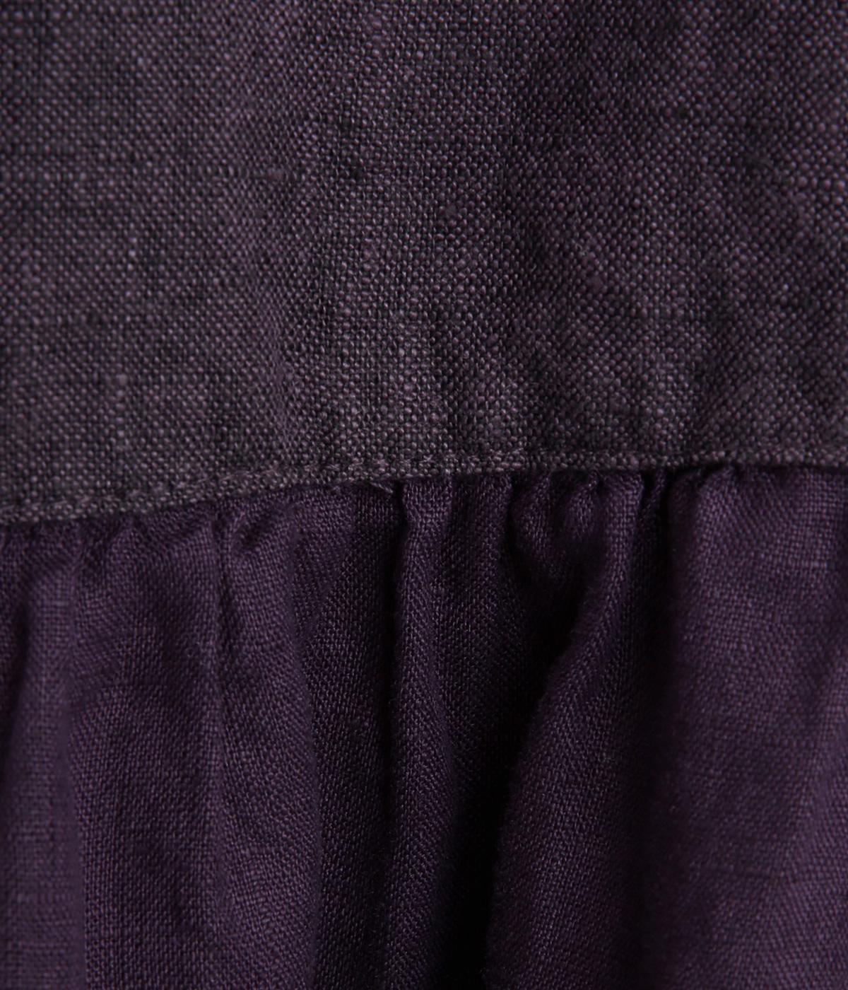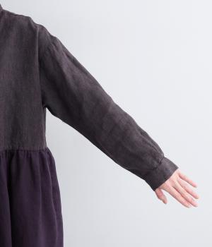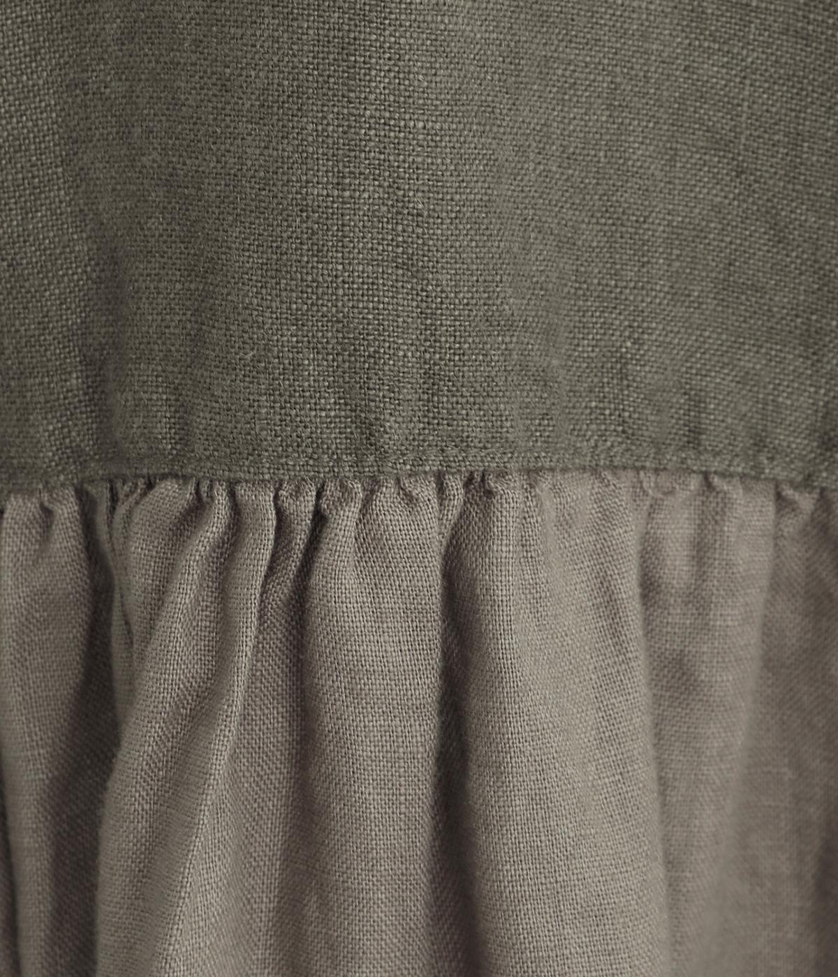 トップス部分にはやや厚手でしっかりとした9番手リネンを、スカート部分はシャリ感のある軽やかな薄手の14番手リネンで切り替えました。