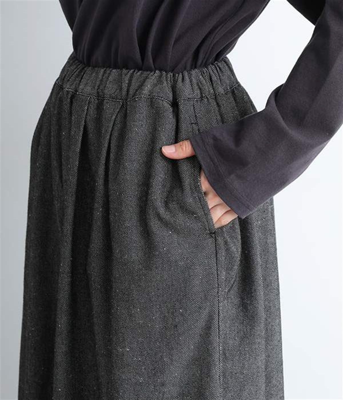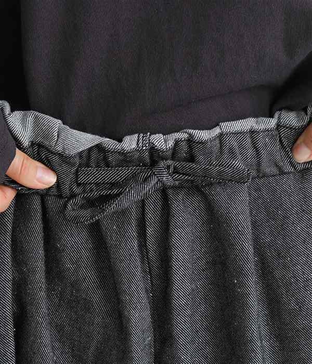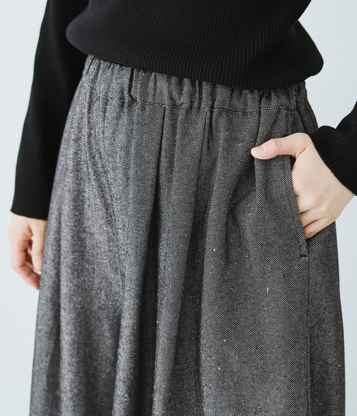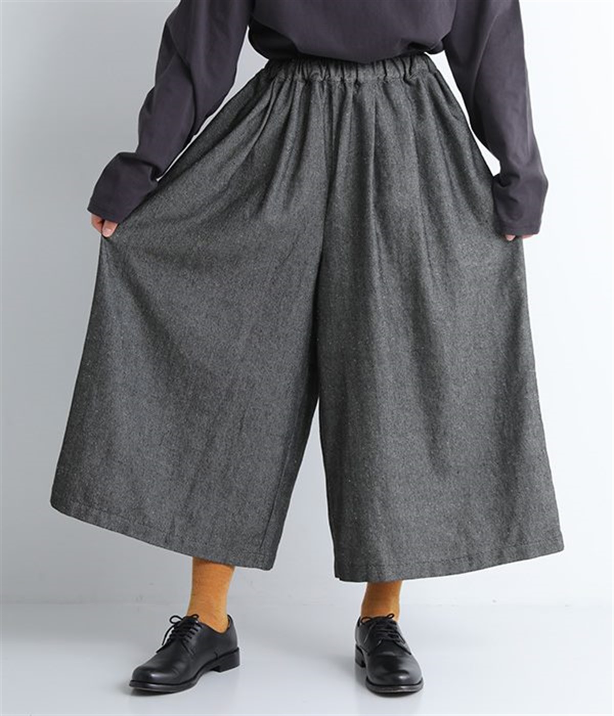 別注|コットンリネンデニムワイドパンツ(ブラック-F)