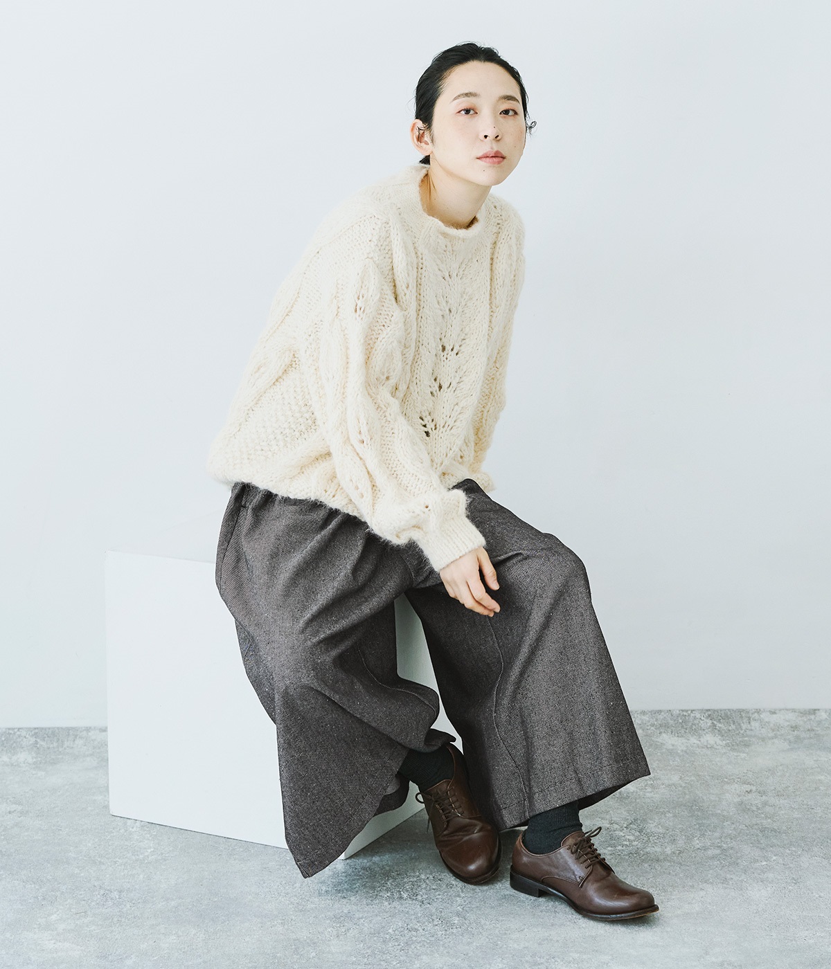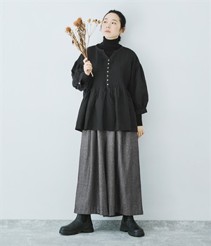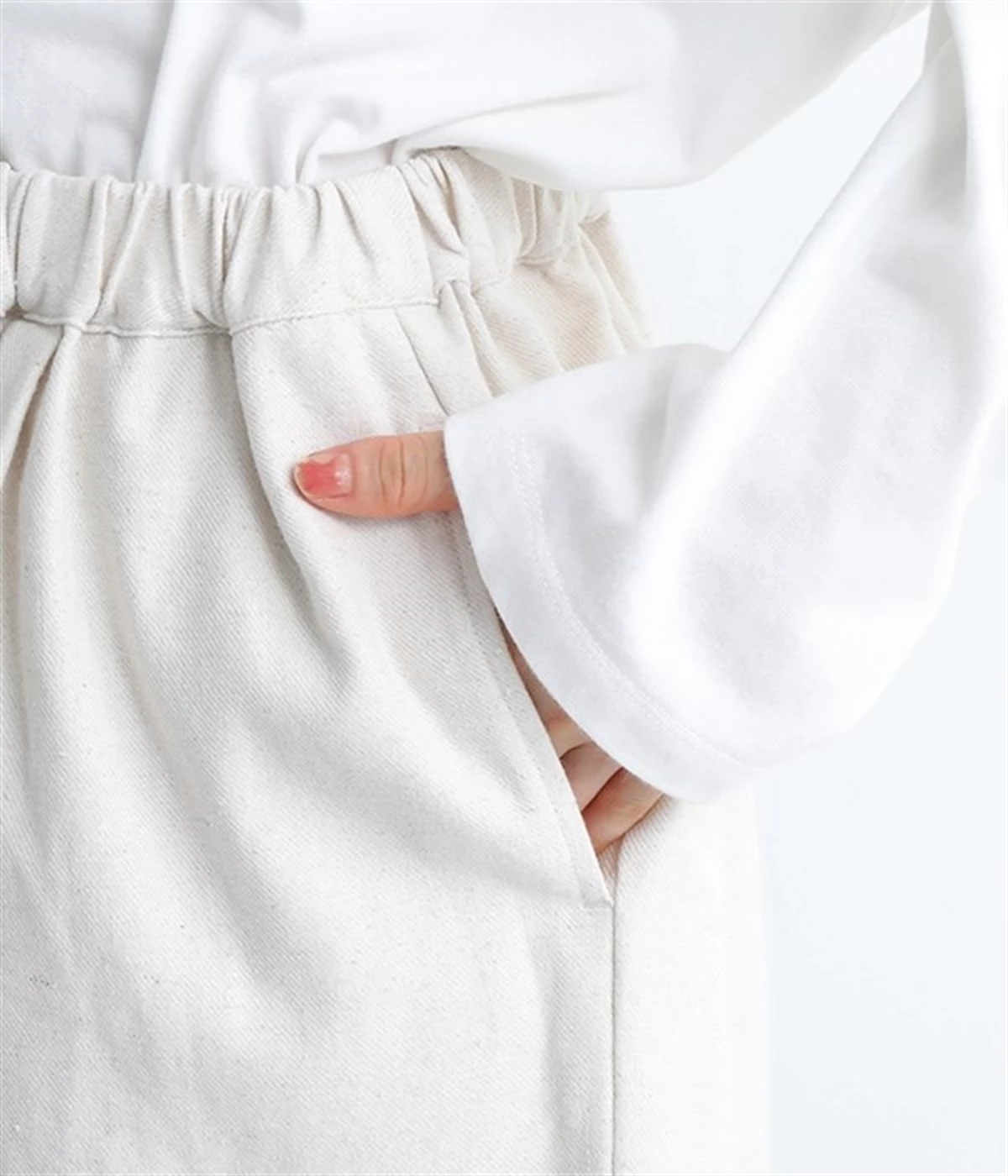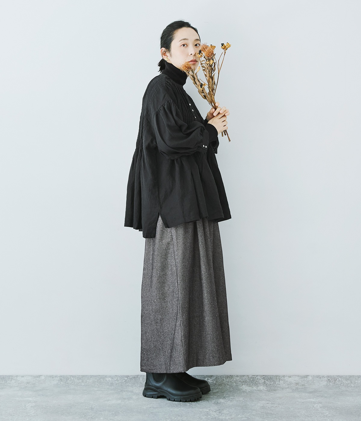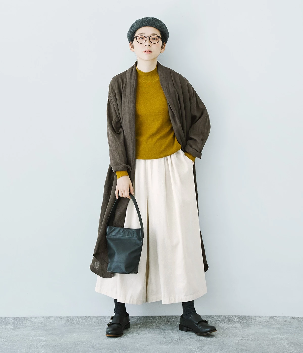 別注|コットンリネンデニムワイドパンツ(ブラック-F)