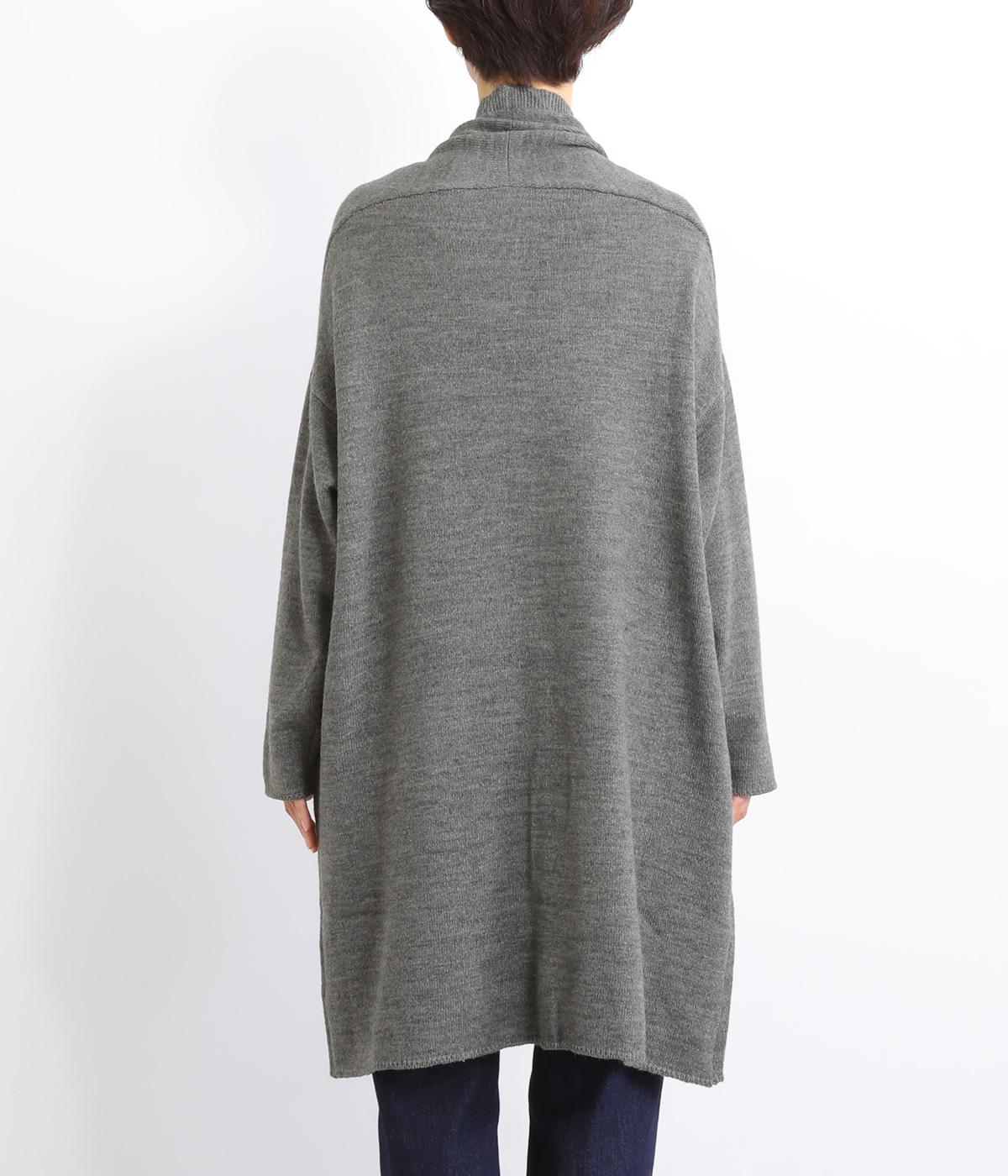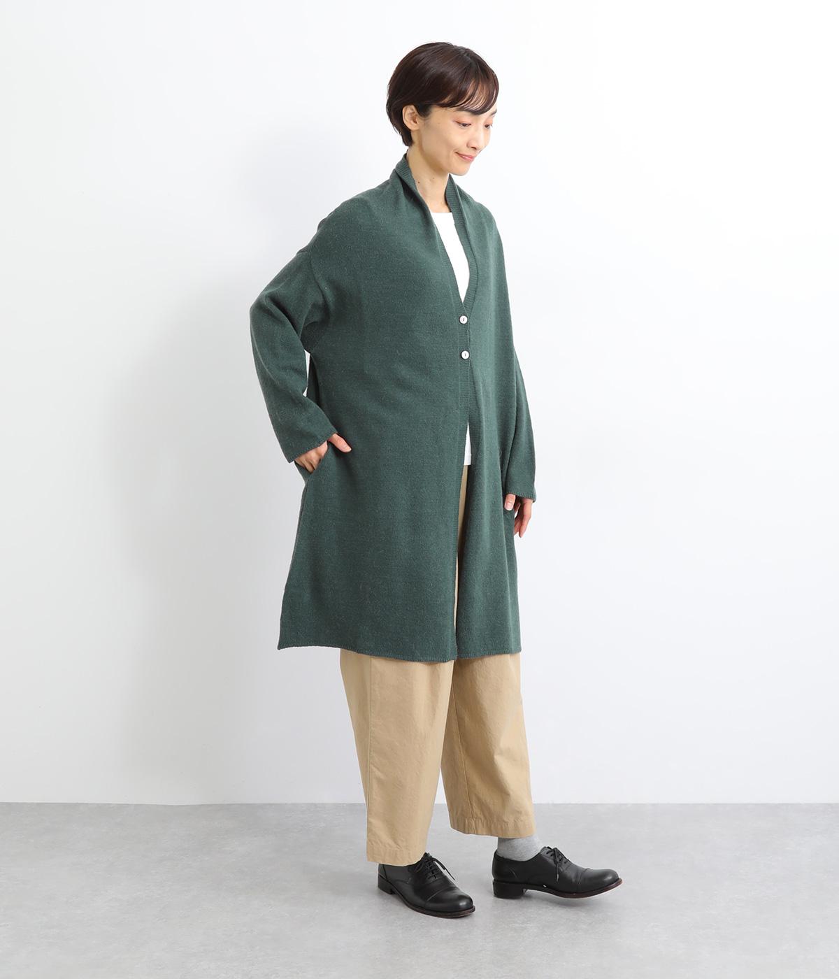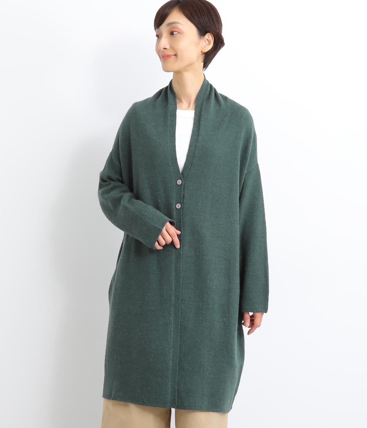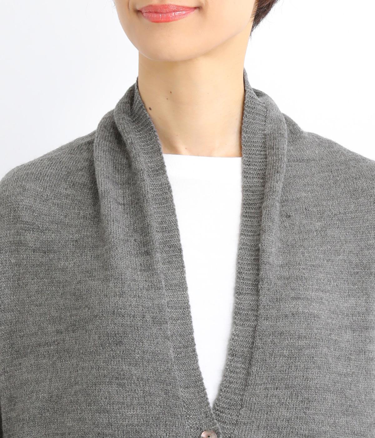 体のラインをカモフラージュしつつ、さまざまな装いに合わせやすいひざ上丈のロングカーディガン。首後ろに高さを出し、首元まであたたかく着用できます。フロントボタンは2つのみつけて、さっと羽織りやすく抜け感のあるデザインに仕上げました。