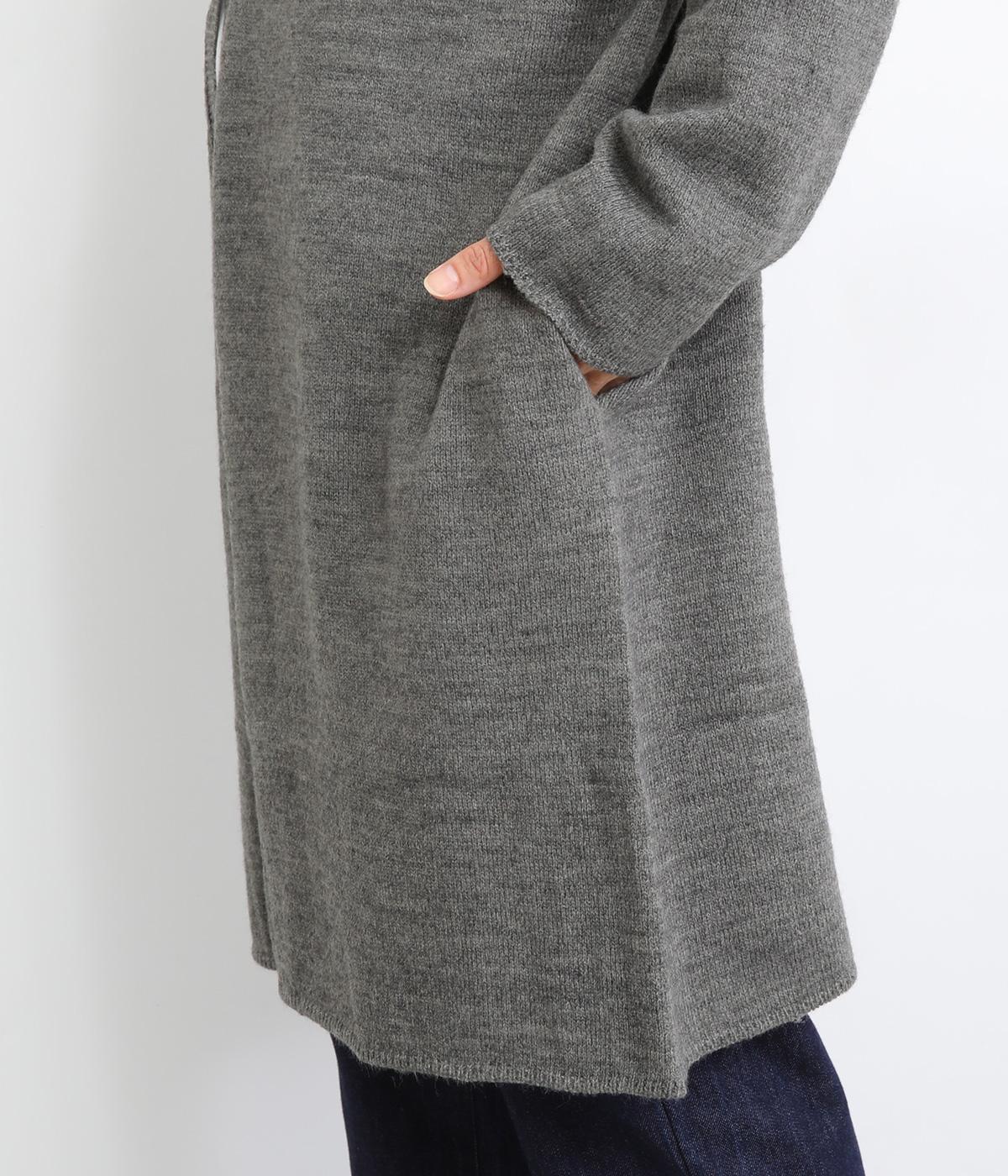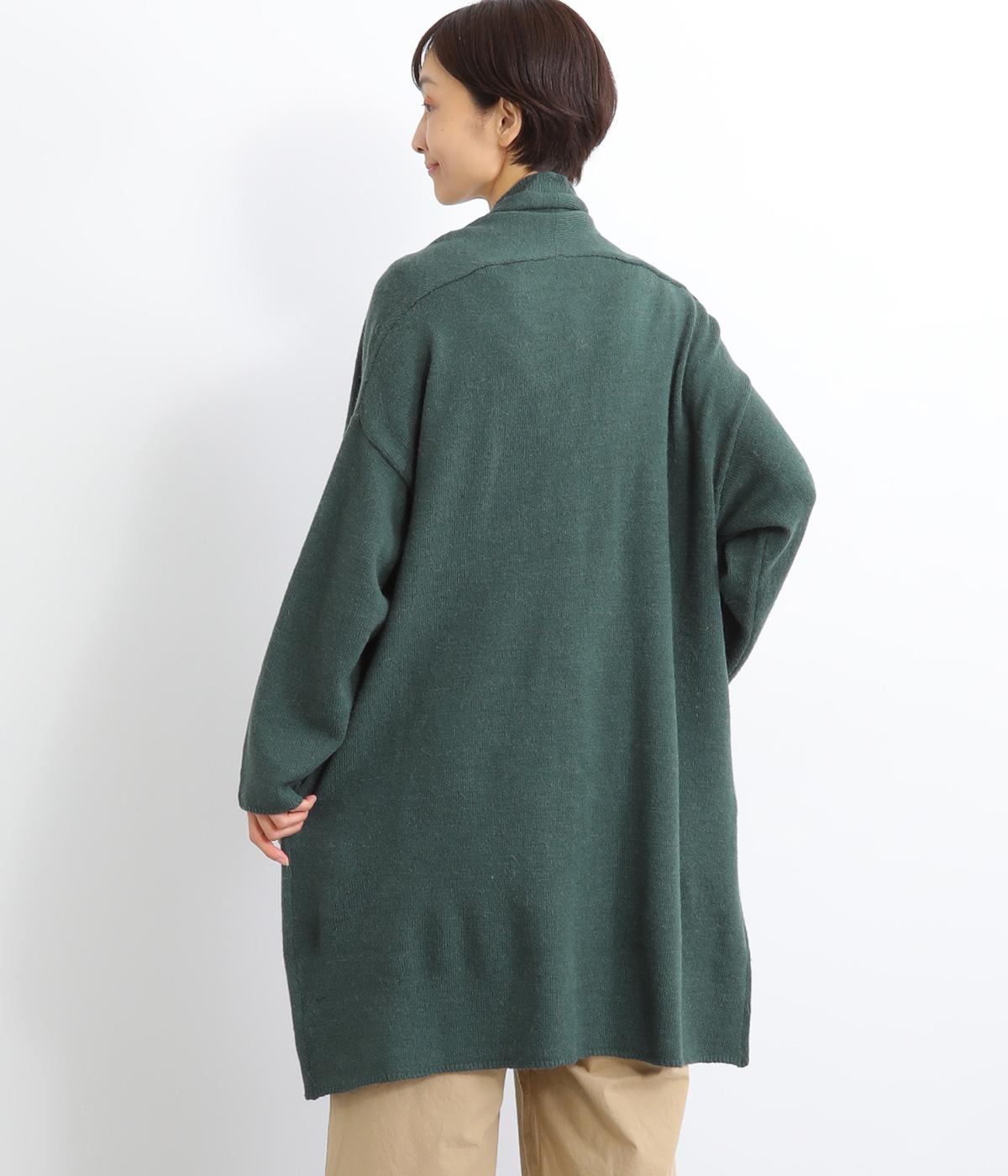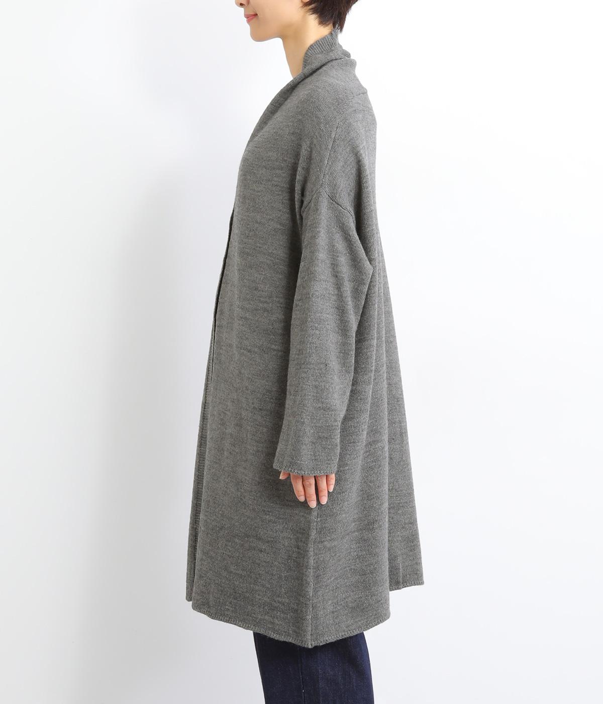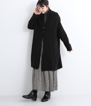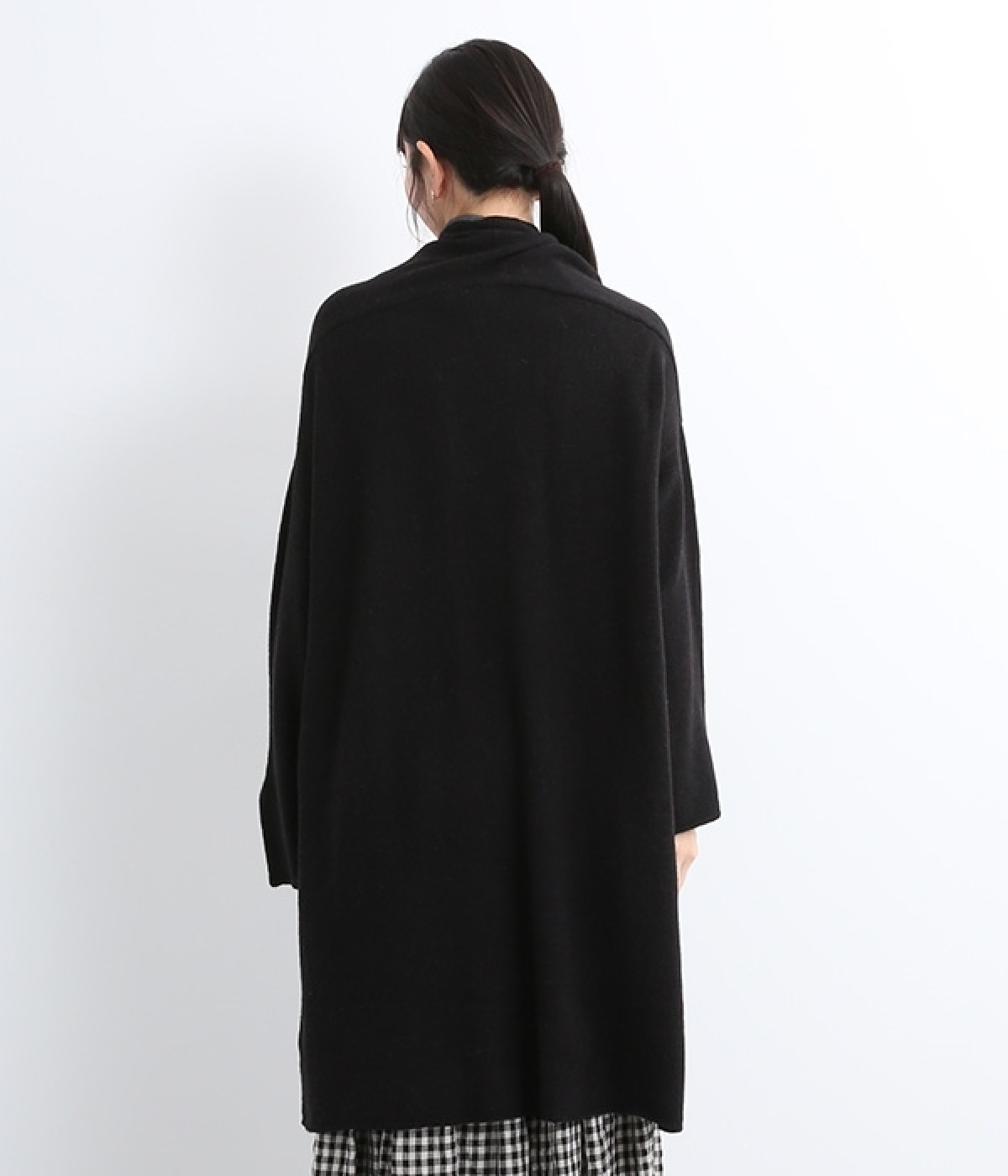 体のラインをカモフラージュしつつ、さまざまな装いに合わせやすいひざ上丈のロングカーディガン。首後ろに高さを出し、首元まであたたかく着用できます。フロントボタンは2つのみつけて、さっと羽織りやすく抜け感のあるデザインに仕上げました。