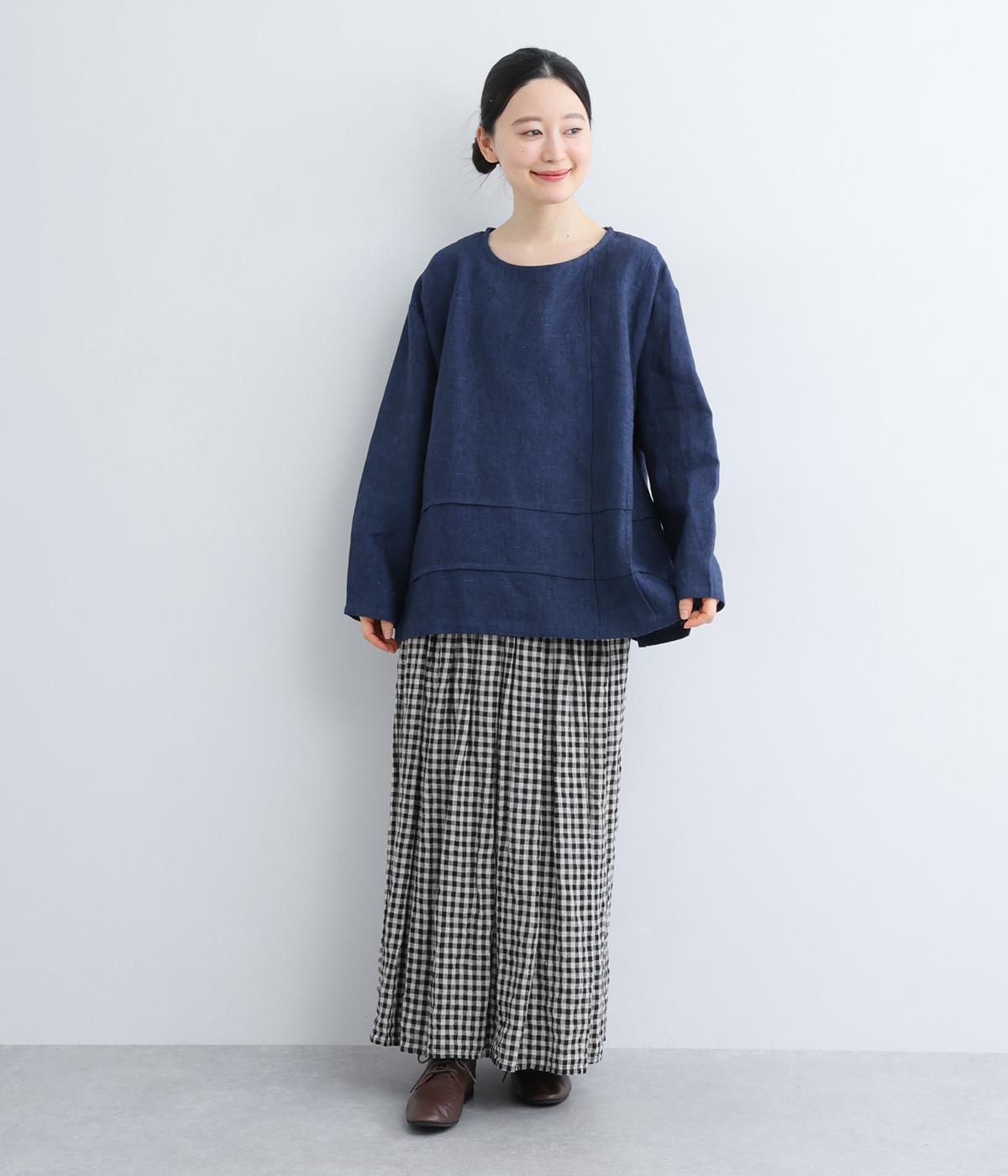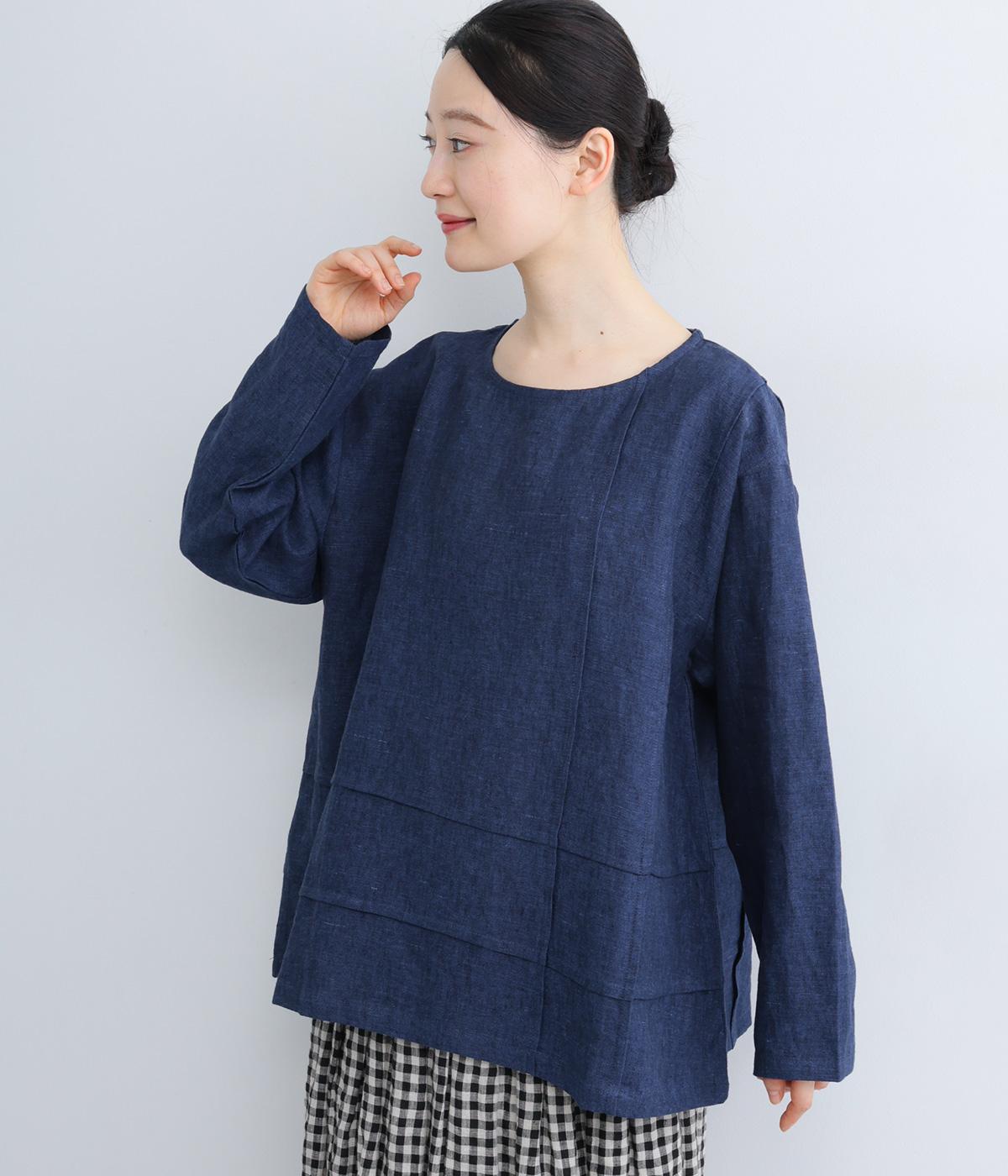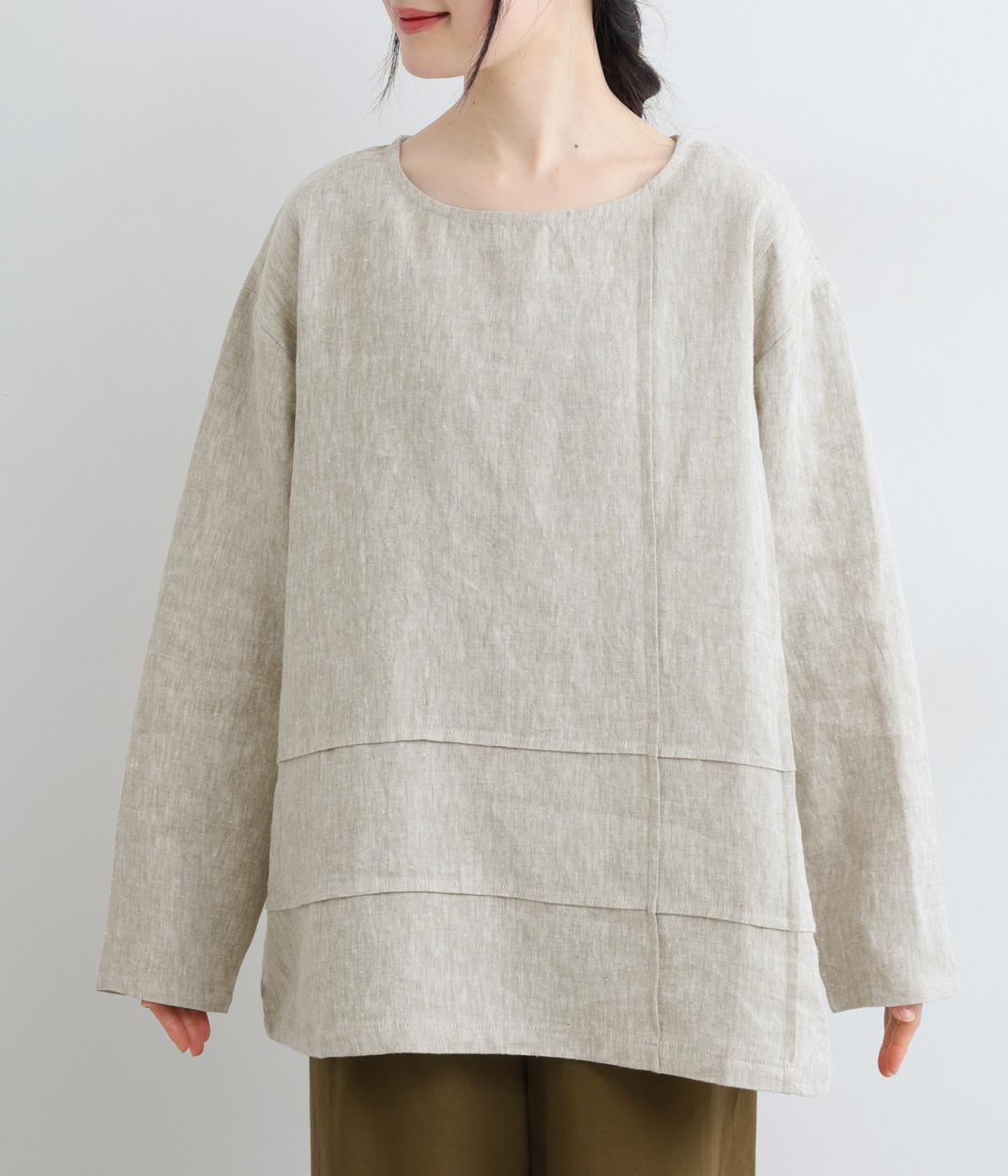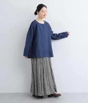 前後の身頃にタックを入れたさりげないデザインが光るプルオーバー。ゆとりのあるシルエットを、縦横に入ったタックがすっきりと見せてくれます。ナチュラルな生地の風合いが映えるシンプルさが◎。活用度が高く、長く愛用したくなる一枚です。