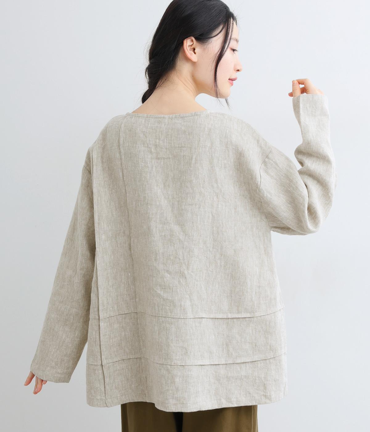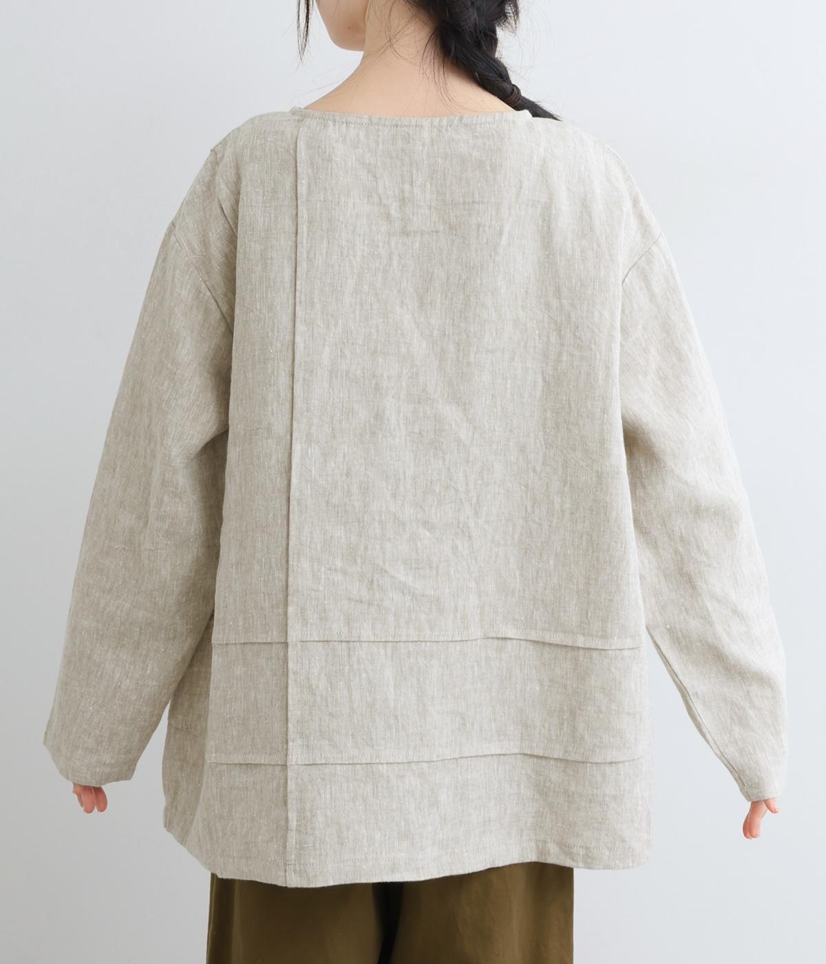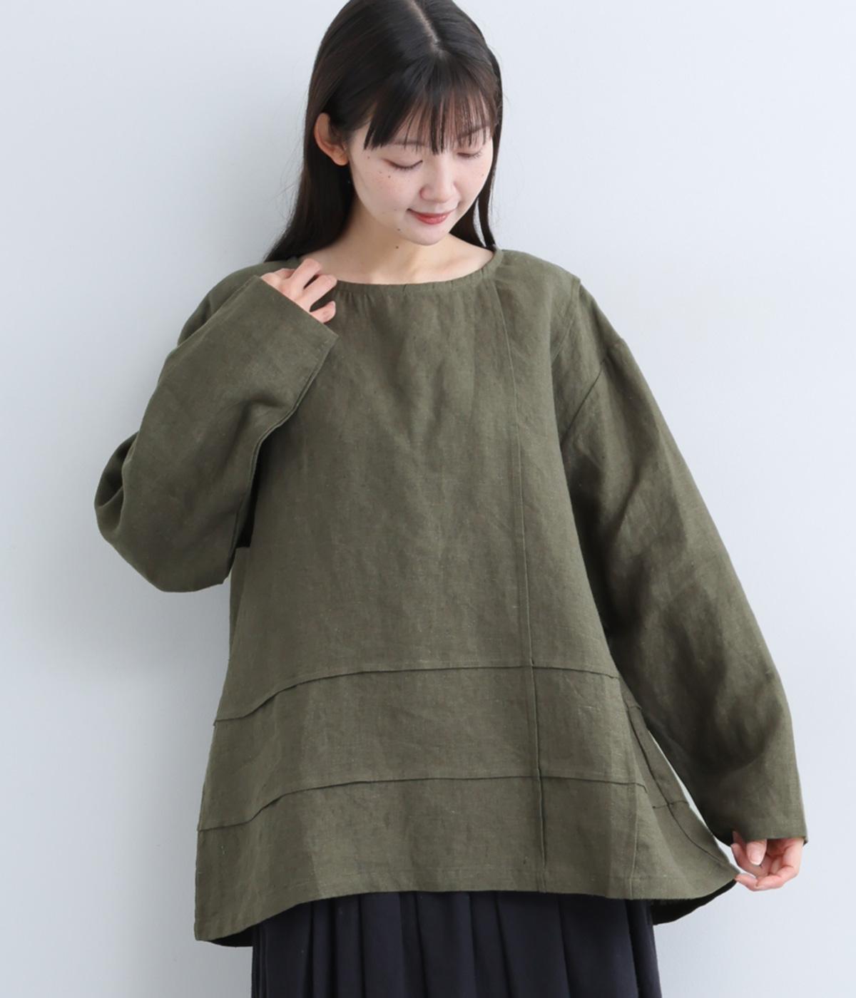 前後の身頃にタックを入れたさりげないデザインが光るプルオーバー。ゆとりのあるシルエットを、縦横に入ったタックがすっきりと見せてくれます。ナチュラルな生地の風合いが映えるシンプルさが◎。活用度が高く、長く愛用したくなる一枚です。