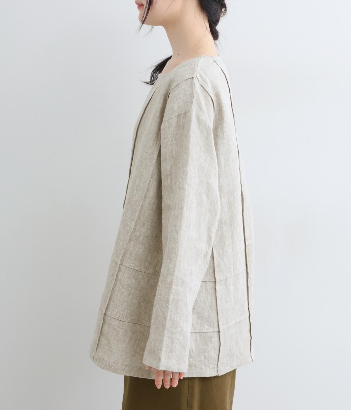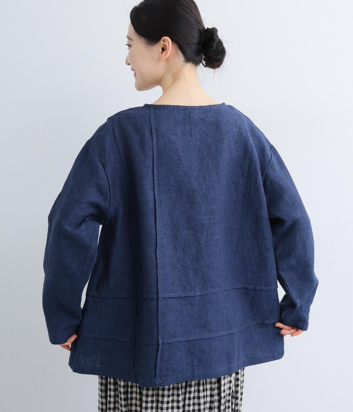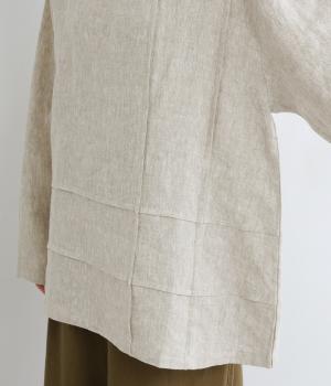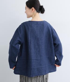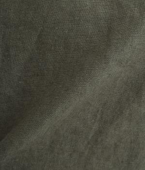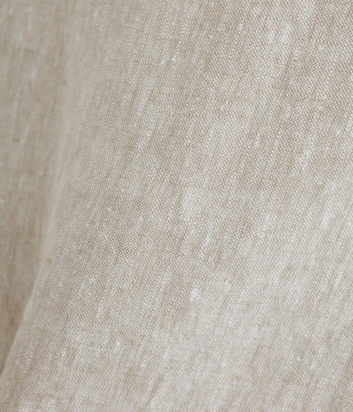 太めの9番手リネン糸を使用して密度高く織りあげた、しっかりとした厚みとハリコシのあるタフな生地感です。表面のネップも映え、ナチュラルな風合いを存分にたのしめます。