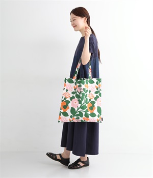 柄だけでなく大きめのサイズ感でスタイリングのアクセントになるトートバッグです。A4サイズも余裕で収納でき、通勤・通学や習い事、お買い物などあらゆるシーンで活躍します。ハンドルは肩掛けもしやすい長さに設計しました。