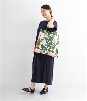 鮮やかで生き生きとしたPieni Greenボタニカル柄のテキスタイルが目を惹きます。薄手ながらほどよくハリ感のあるコットン生地でカジュアルに使えます。